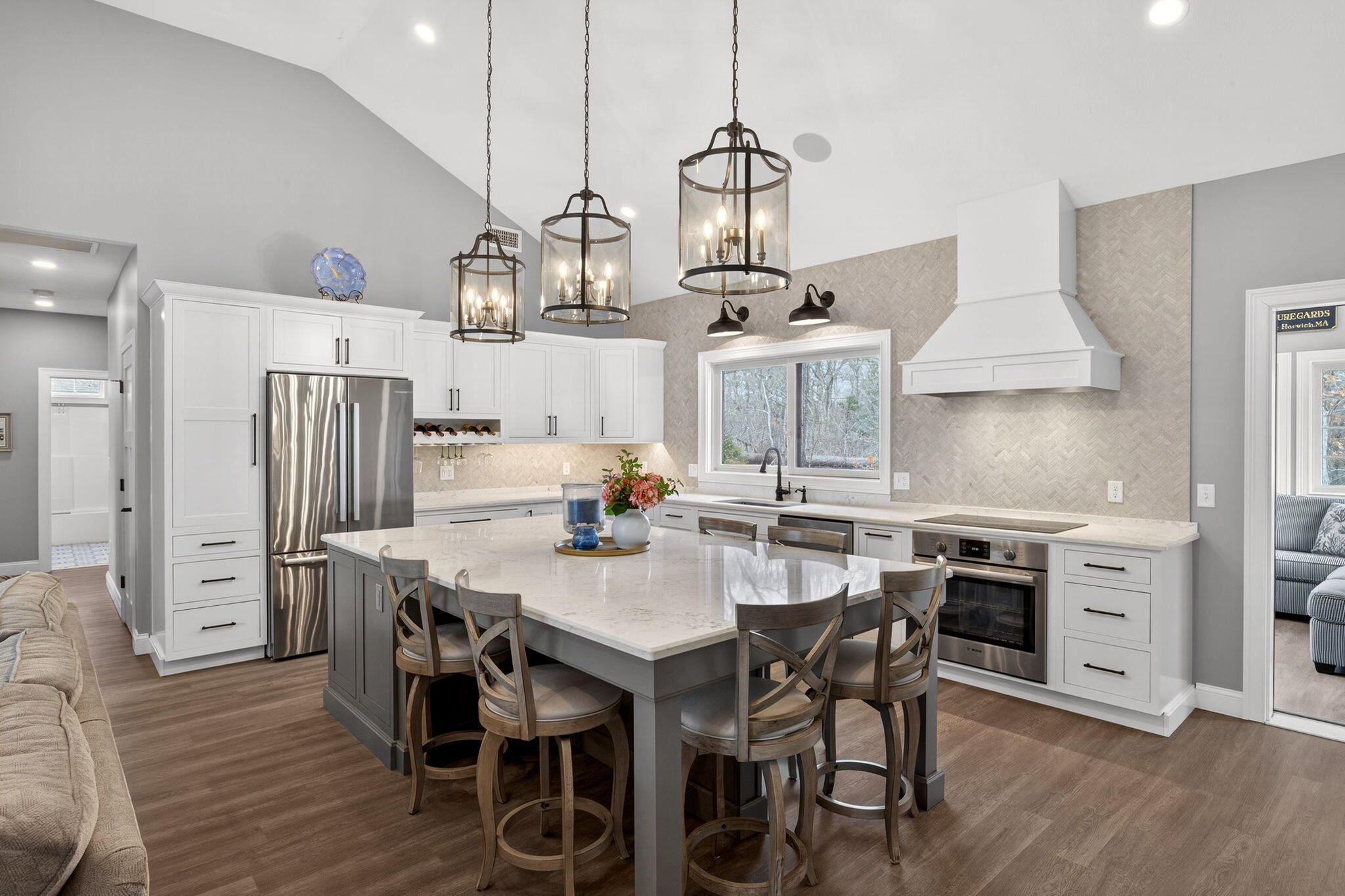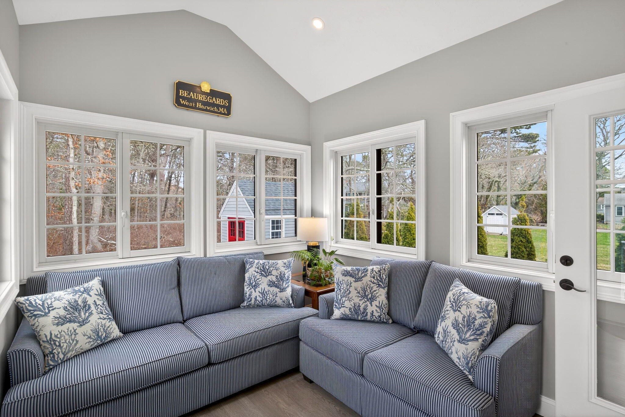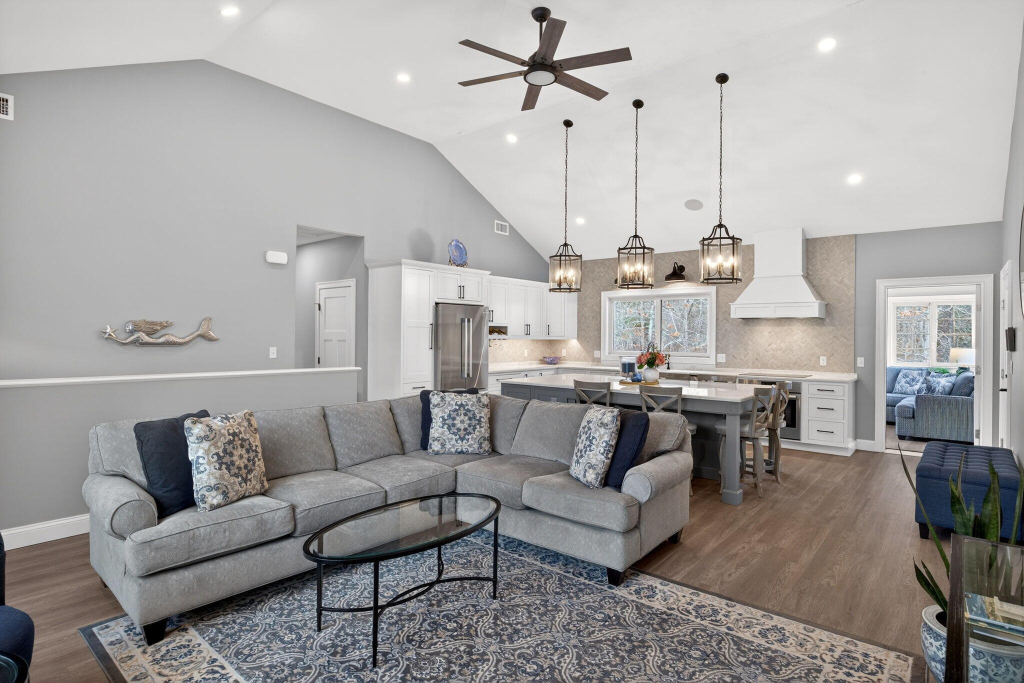 Welcome to this newly built West Harwich gem! Set at the end of a quiet dead-end street, this turnkey property offers one-floor living with central air, an open-concept layout, and a beautifully finished lower level. The main living area features vaulted ceilings and a seamless flow between the living room and kitchen. The kitchen is thoughtfully designed with custom cabinetry, quartz countertops, and Bosch appliances. Just off the kitchen, a sunroom provides direct access to a large patio with a gas firepit, making entertaining easy. The main level includes three bedrooms and two full bathrooms, including a primary bedroom with en suite bath. The finished lower level offers additional living space with a full bathroom. Outside, the professionally landscaped yard is a true highlight, featuring irrigation, retaining walls, privacy plantings, and mature landscaping that create a private and inviting outdoor setting. Additional features include a home audio system, one-car garage, storage shed, and generator connection. There's nothing to do but move right in and enjoy! Buyers and their agents to verify all information herein.