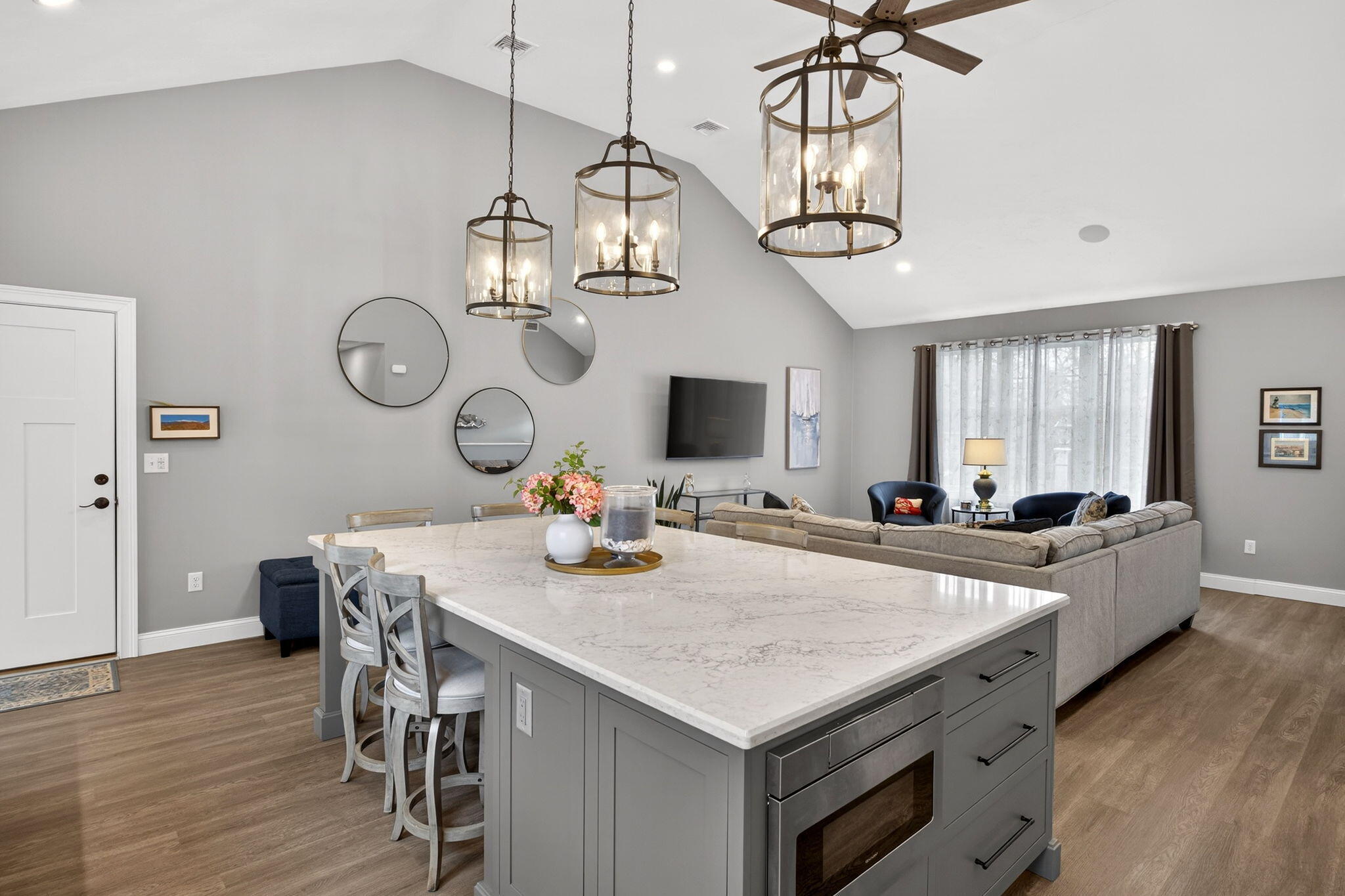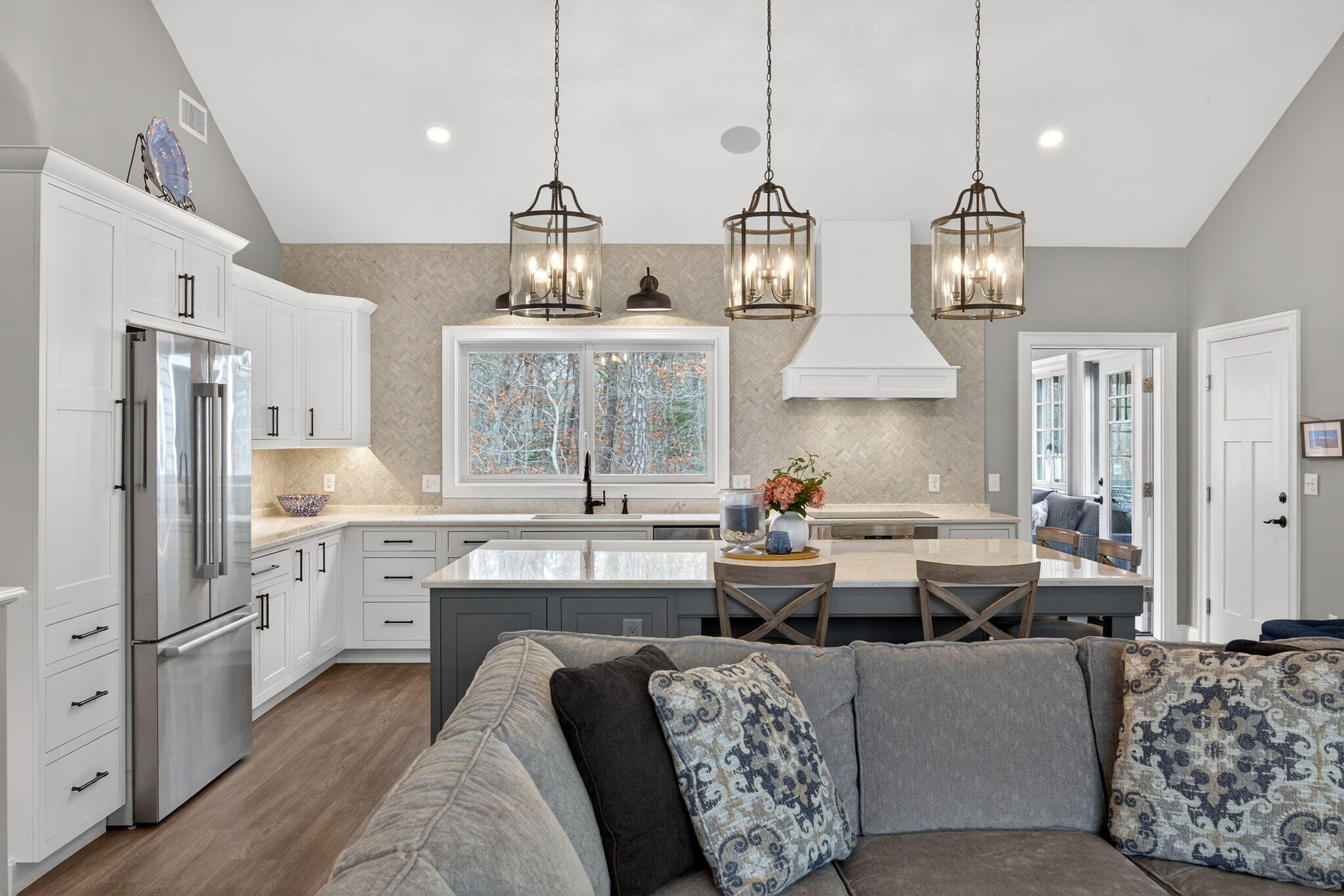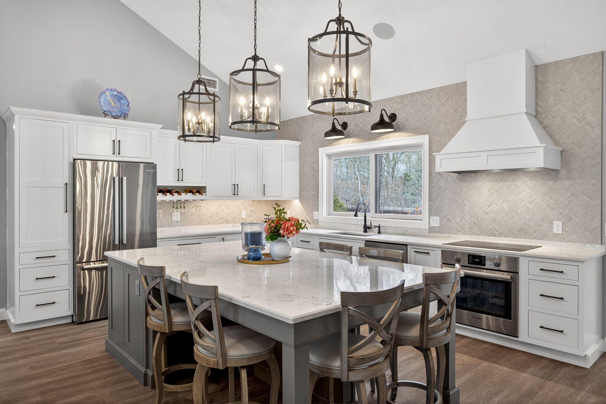Welcome to this newly built West Harwich gem! Set at the end of a quiet dead-end street, this turnkey property offers one-floor living with central air, an open-concept layout, and a beautifully finished lower level. The main living area features vaulted ceilings and a seamless flow between the living room and kitchen. The kitchen is thoughtfully designed with custom cabinetry, quartz countertops, and Bosch appliances. Just off the kitchen, a sunroom provides direct access to a large patio with a gas firepit, making entertaining easy. The main level includes three bedrooms and two full bathrooms, including a primary bedroom with en suite bath. The finished lower level offers additional living space with a full bathroom. Outside, the professionally landscaped yard is a true highlight, featuring irrigation, retaining walls, privacy plantings, and mature landscaping that create a private and inviting outdoor setting. Additional features include a home audio system, one-car garage, storage shed, and generator connection. There's nothing to do but move right in and enjoy! Buyers and their agents to verify all information herein.