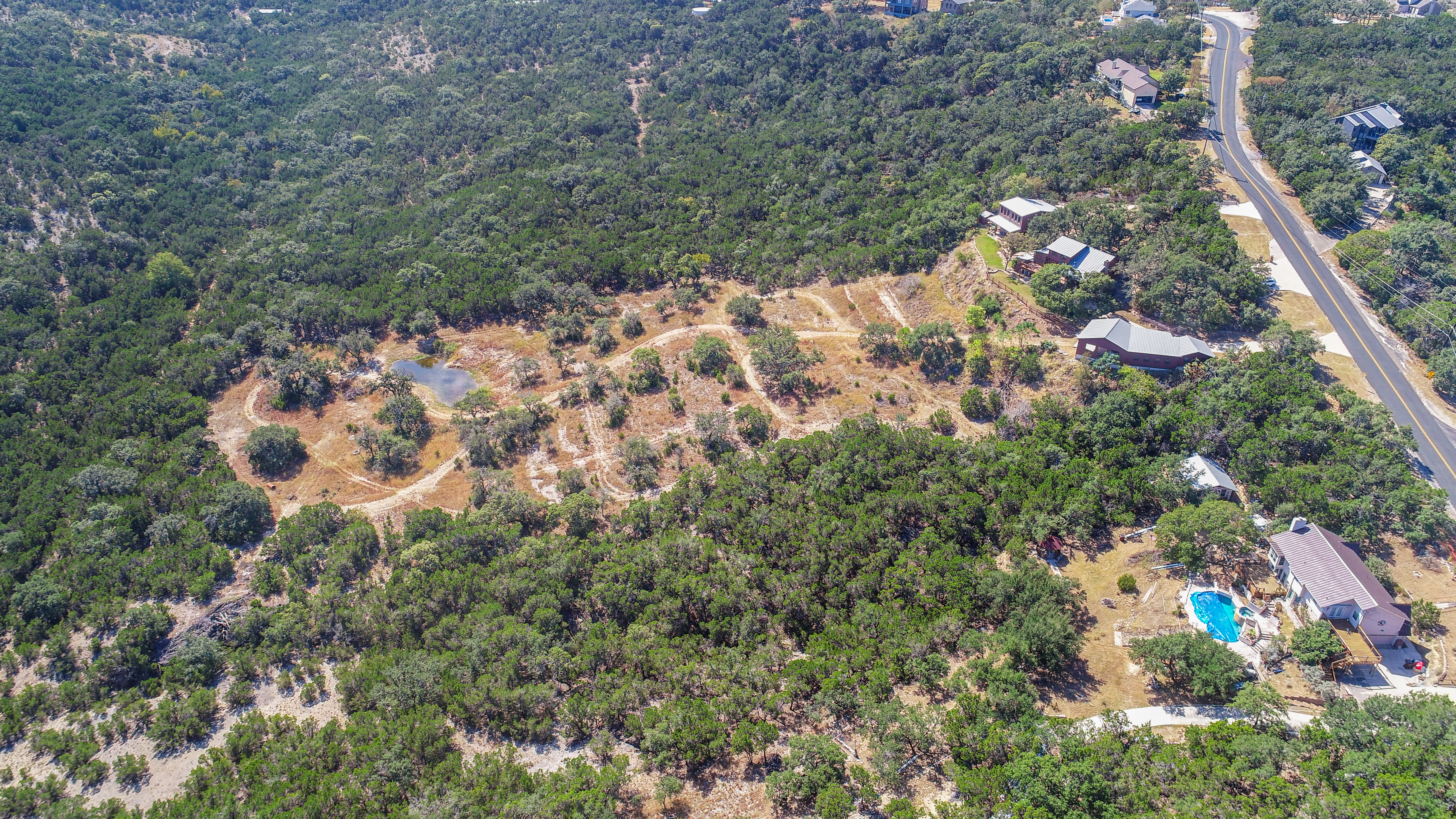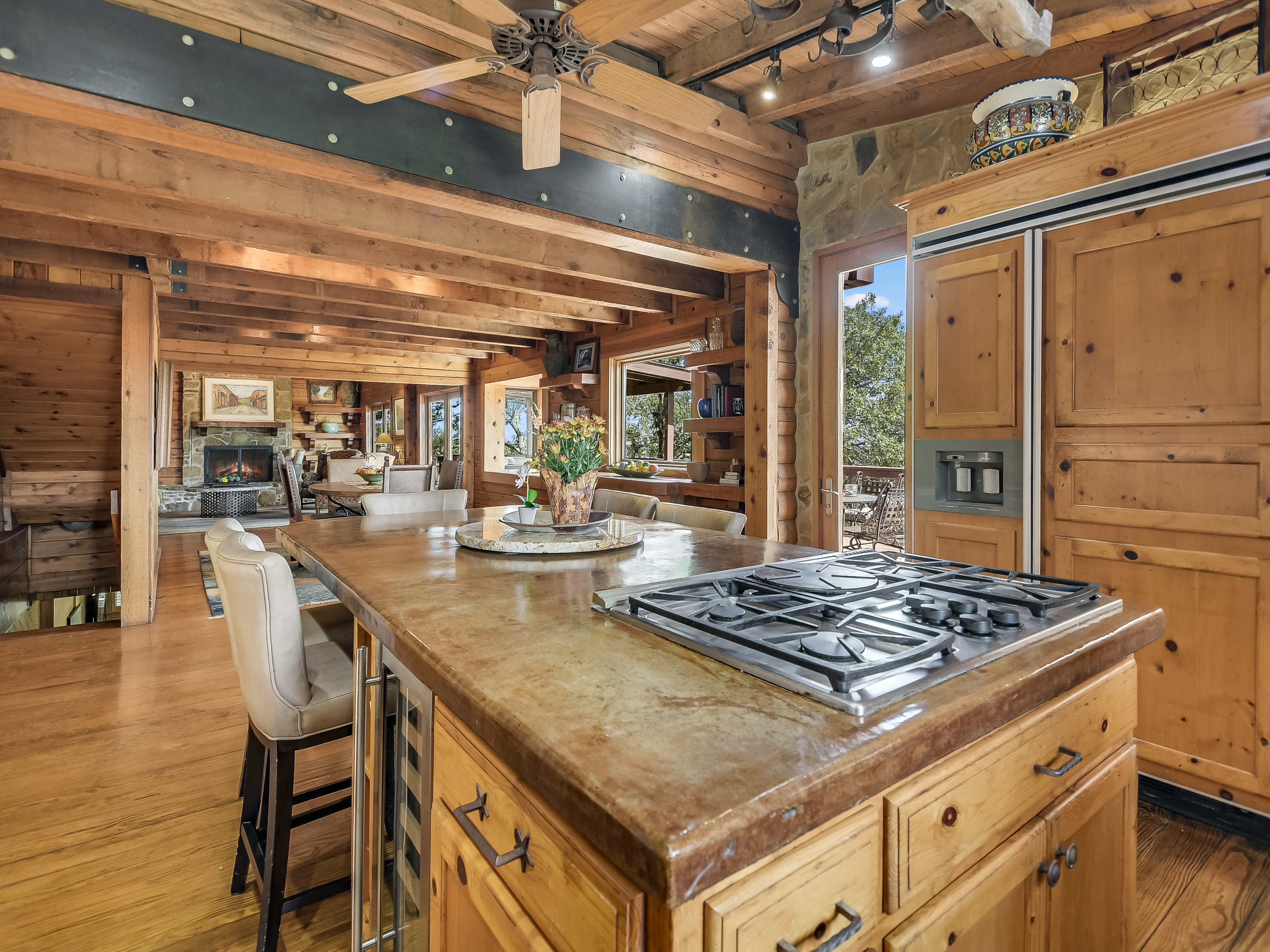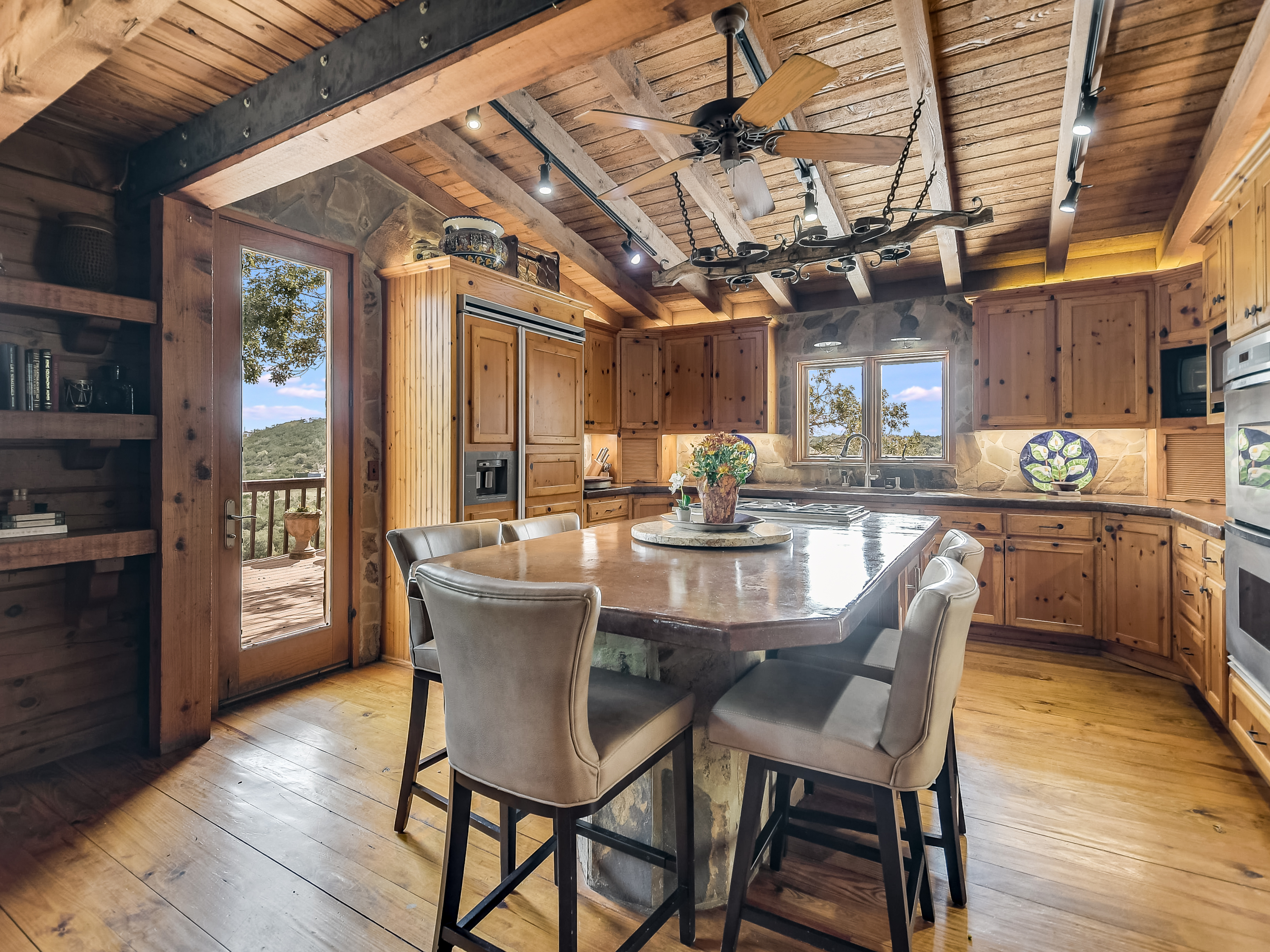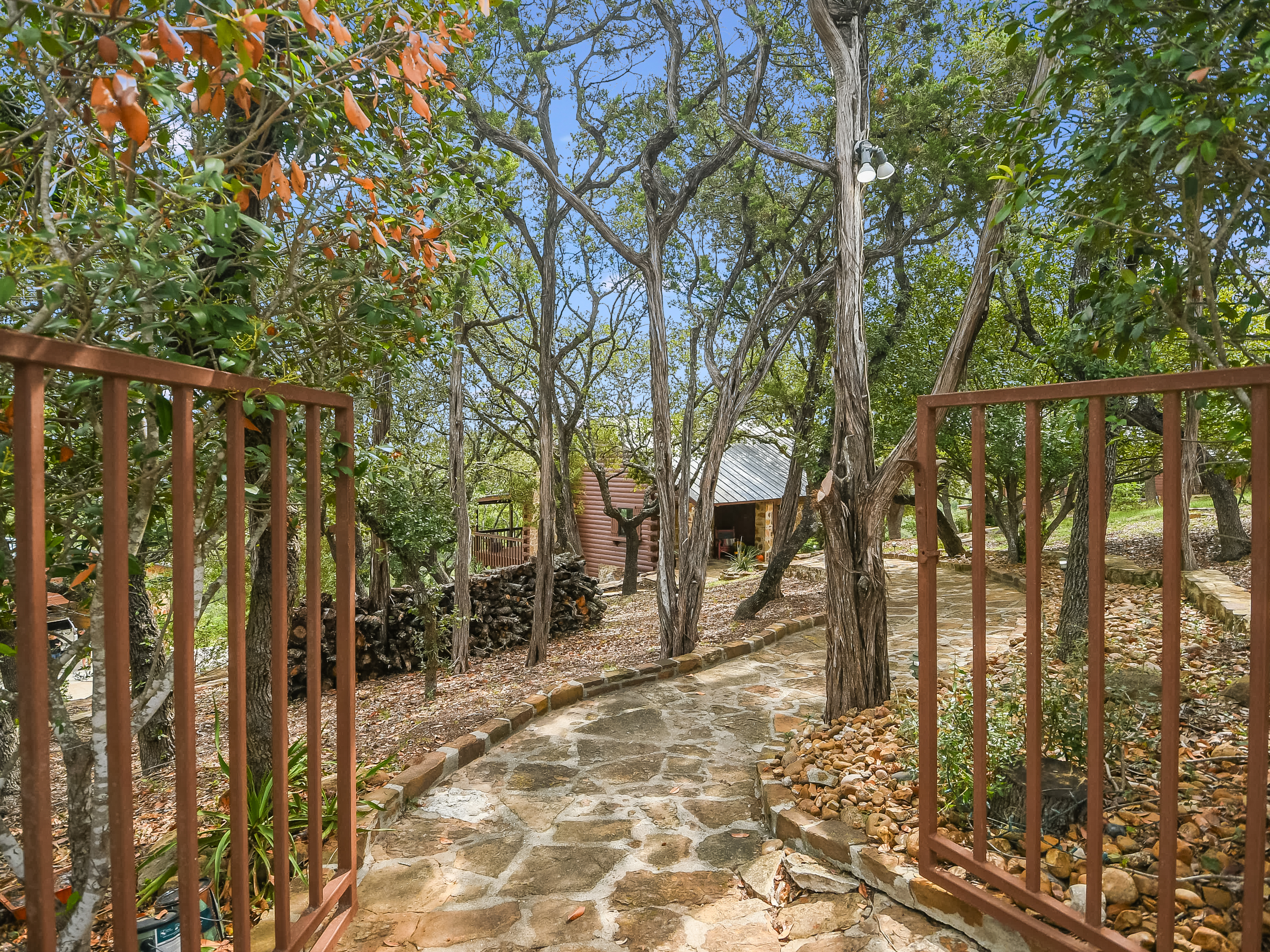 Where Civilization Meets Nature...this extraordinary 5-acre estate sits atop the highest point in Bexar County. Welcome to Ramblewood Resort, a private hilltop retreat featuring two distinctive homes surrounded by breathtaking Hill Country views. The grounds evoke a natural resort ambiance, with terraced landscapes, winding rock walkways, and a stunning waterfall that cascades into a hot tub beside a sparkling pool. A lush, level lawn invites alfresco dining, recreation, and unforgettable gatherings. The authentic log home, crafted in the 1980s from Northeastern white pine, offers approximately 3,500 square feet across three levels, with 3 bedrooms, 3 baths, and two fireplaces. Expansive porches and patios span the length of the main and lower levels, seamlessly blending indoor and outdoor living. A separate countryside cabin provides approximately 1,500 square feet of flexible space across two levels. Featuring a game room, kitchen, bath, office, and lofted sleeping areas, it offers privacy with its own dedicated drive. Additional highlights include a four-bay detached garage with sweeping views, metal roofs on all structures, and expansive lower acreage complete with a pond and open space for sports, picnics, and camping. Located in Country Place Subdivision, residents enjoy access to community amenities including a pool, tennis courts, and bridle paths surrounding the subdivision. Drive down Hwy 281 - San Antonio International Airport 18 minutes, The Pearl 24 minutes, and downtown to the Alamo just 26 minutes. Off Hwy 46 - Boerne is 46 minutes, and New Braunfels is 38 minutes.