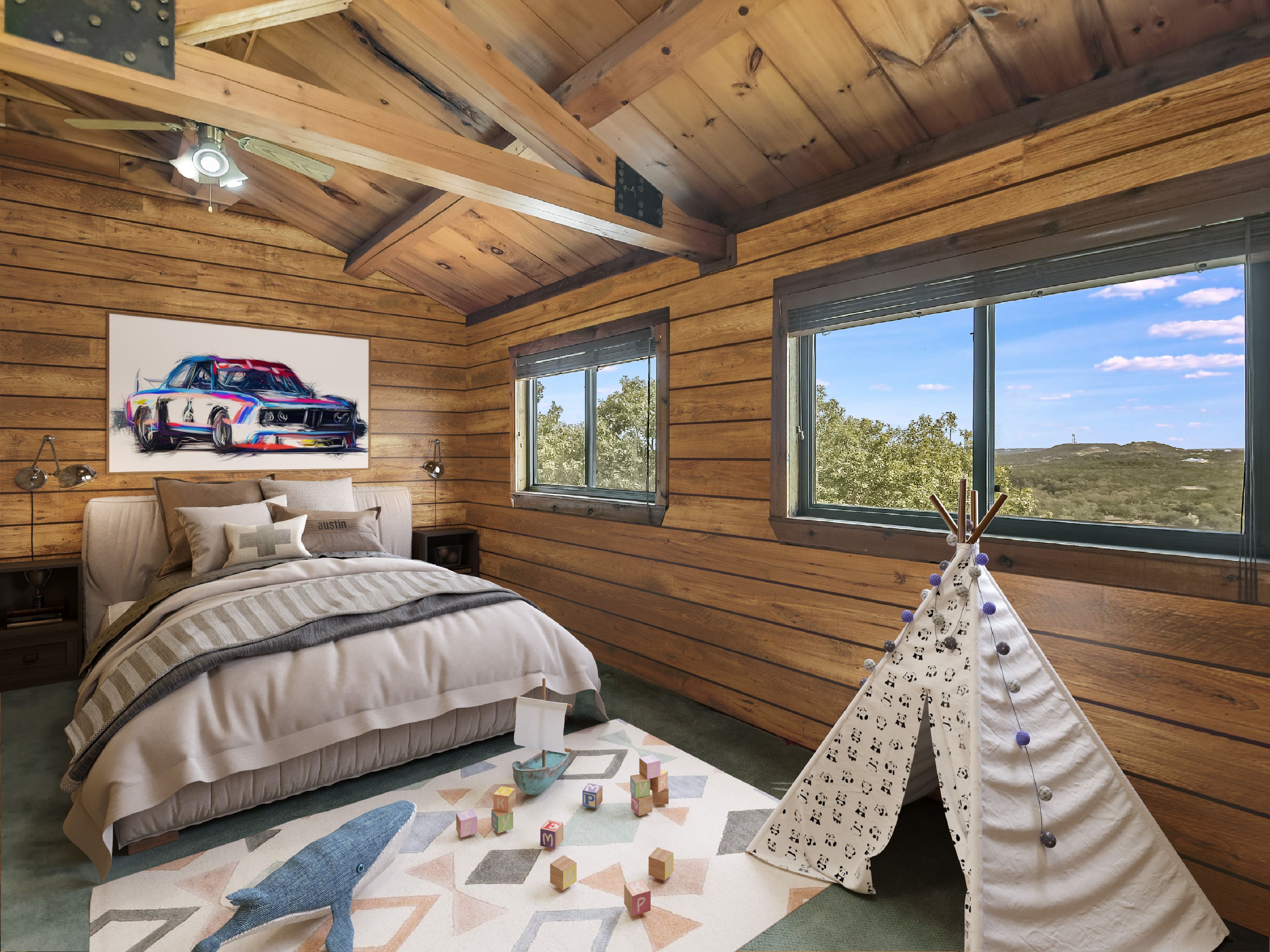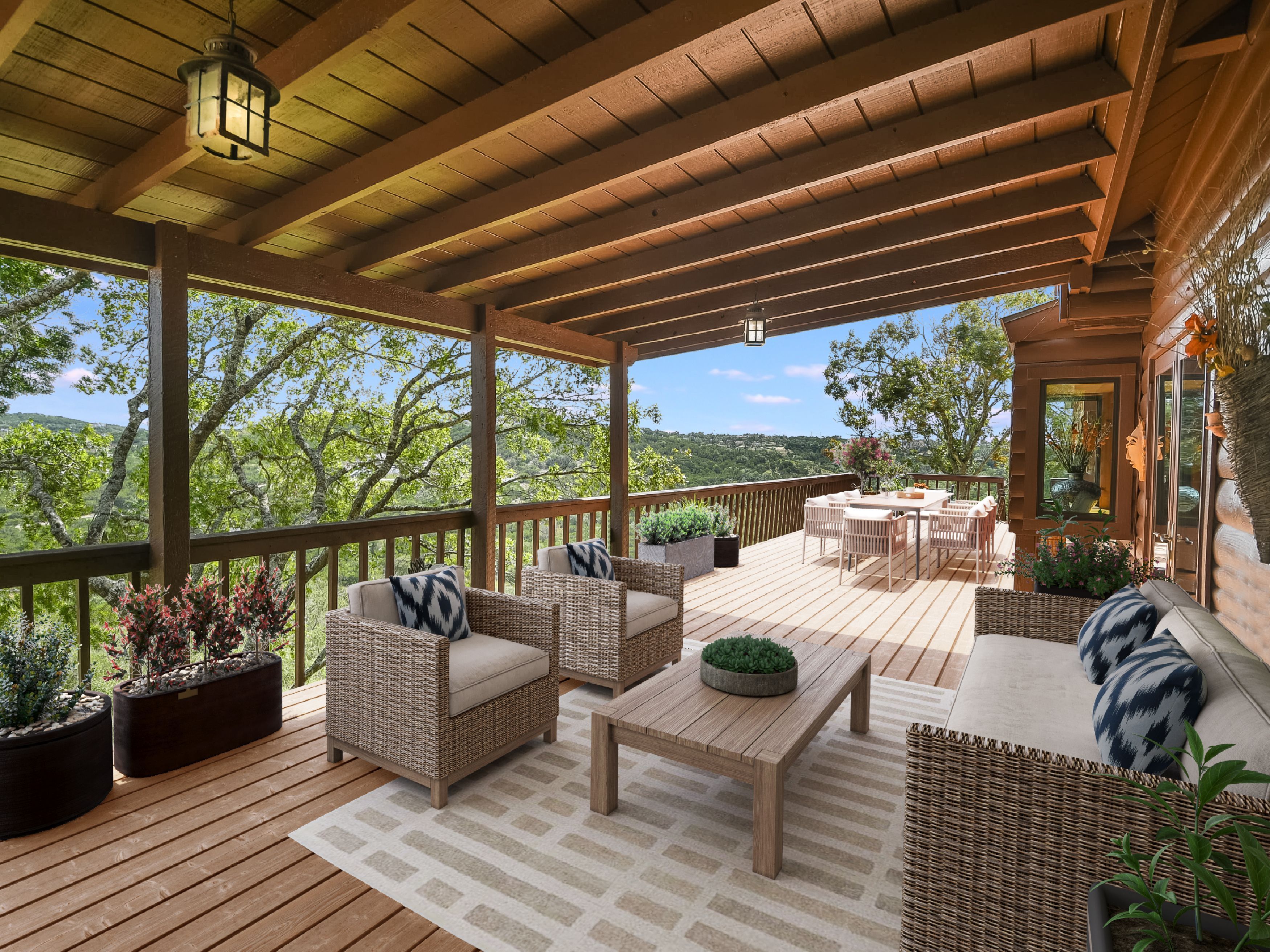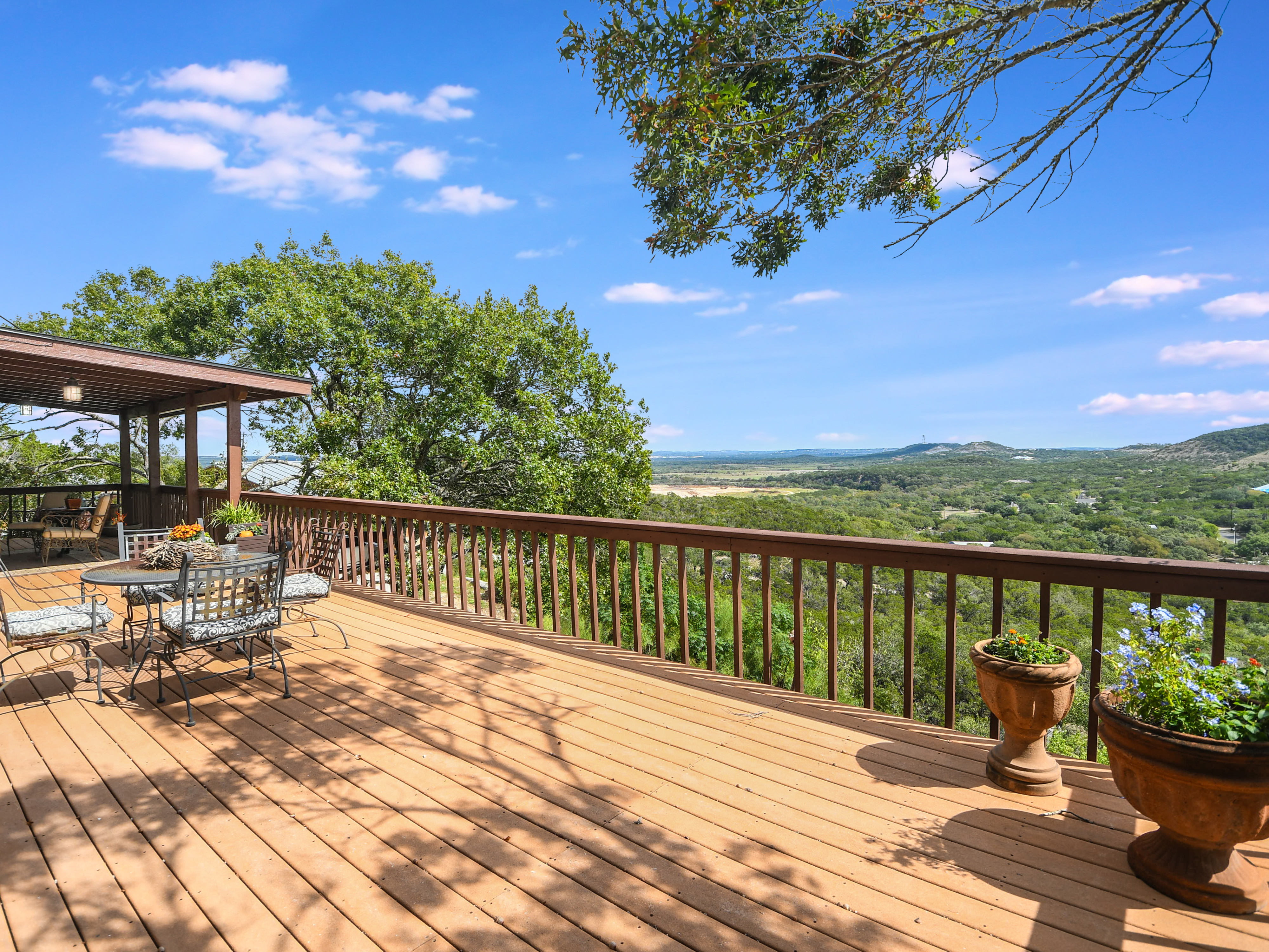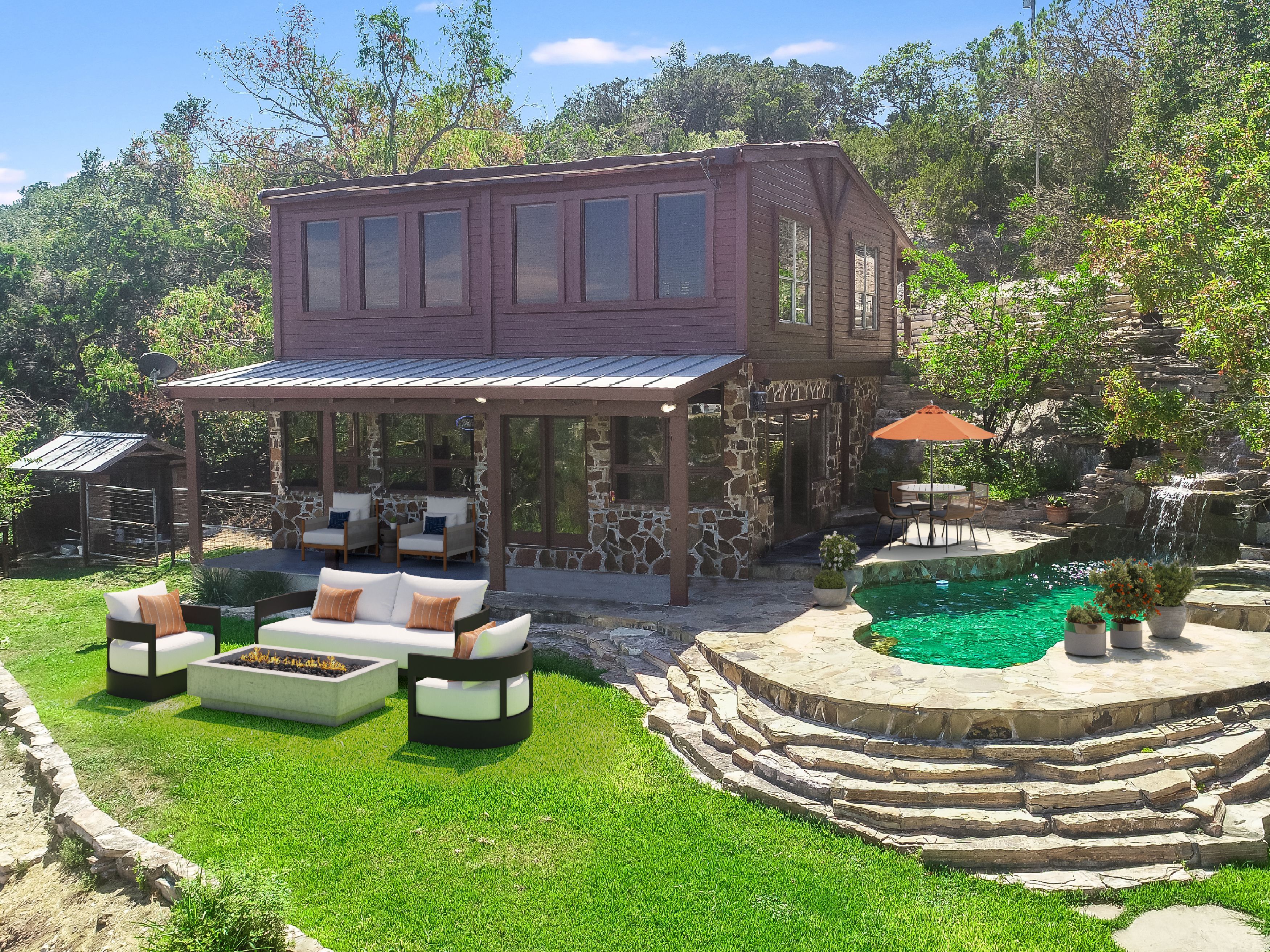 Where Civilization Meets Nature...this extraordinary 5-acre estate sits atop the highest point in Bexar County. Welcome to Ramblewood Resort, a private hilltop retreat featuring two distinctive homes surrounded by breathtaking Hill Country views. The grounds evoke a natural resort ambiance, with terraced landscapes, winding rock walkways, and a stunning waterfall that cascades into a hot tub beside a sparkling pool. A lush, level lawn invites alfresco dining, recreation, and unforgettable gatherings. The authentic log home, crafted in the 1980s from Northeastern white pine, offers approximately 3,500 square feet across three levels, with 3 bedrooms, 3 baths, and two fireplaces. Expansive porches and patios span the length of the main and lower levels, seamlessly blending indoor and outdoor living. A separate countryside cabin provides approximately 1,500 square feet of flexible space across two levels. Featuring a game room, kitchen, bath, office, and lofted sleeping areas, it offers privacy with its own dedicated drive. Additional highlights include a four-bay detached garage with sweeping views, metal roofs on all structures, and expansive lower acreage complete with a pond and open space for sports, picnics, and camping. Located in Country Place Subdivision, residents enjoy access to community amenities including a pool, tennis courts, and bridle paths surrounding the subdivision. Drive down Hwy 281 - San Antonio International Airport 18 minutes, The Pearl 24 minutes, and downtown to the Alamo just 26 minutes. Off Hwy 46 - Boerne is 46 minutes, and New Braunfels is 38 minutes.