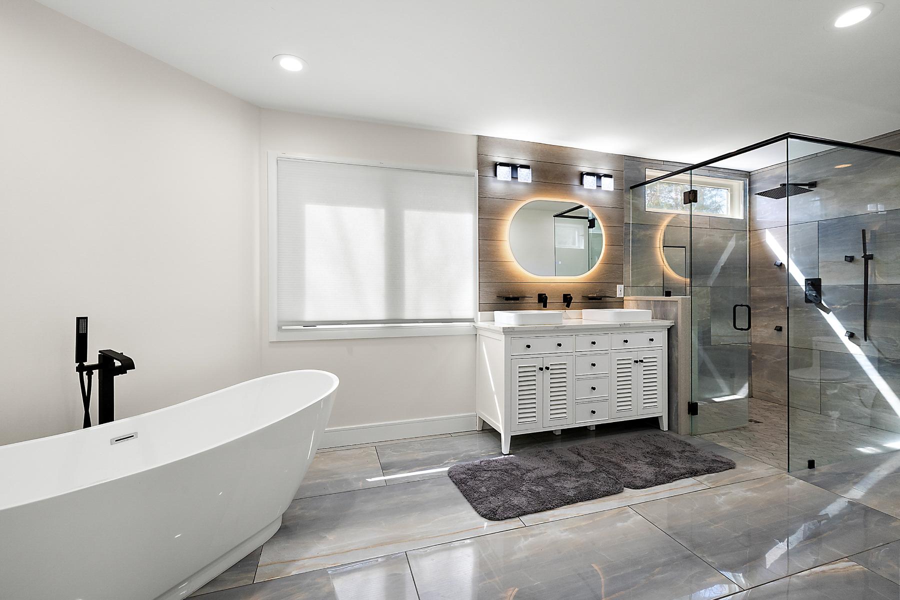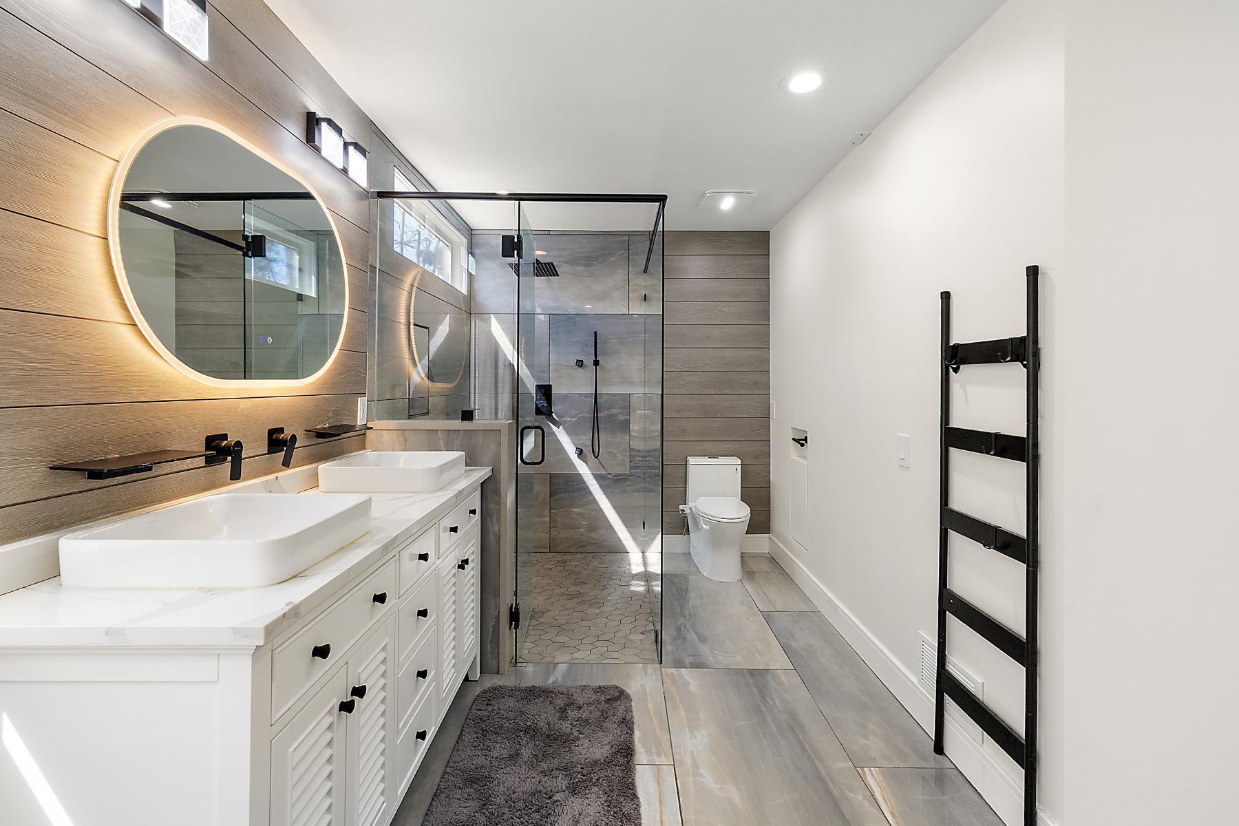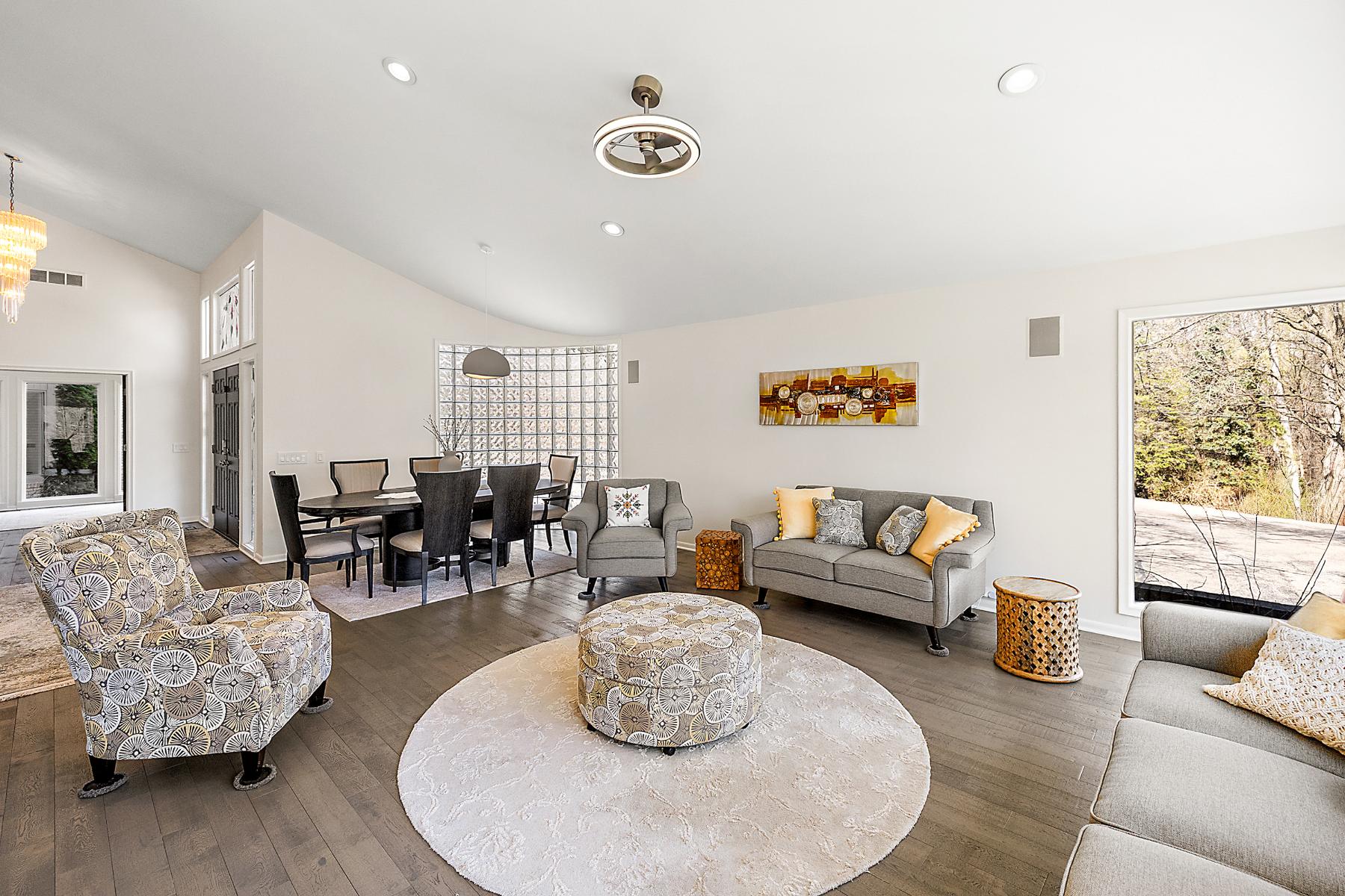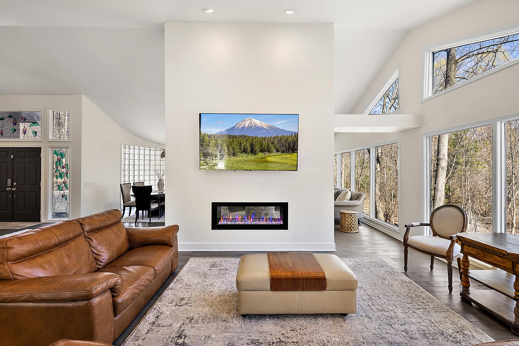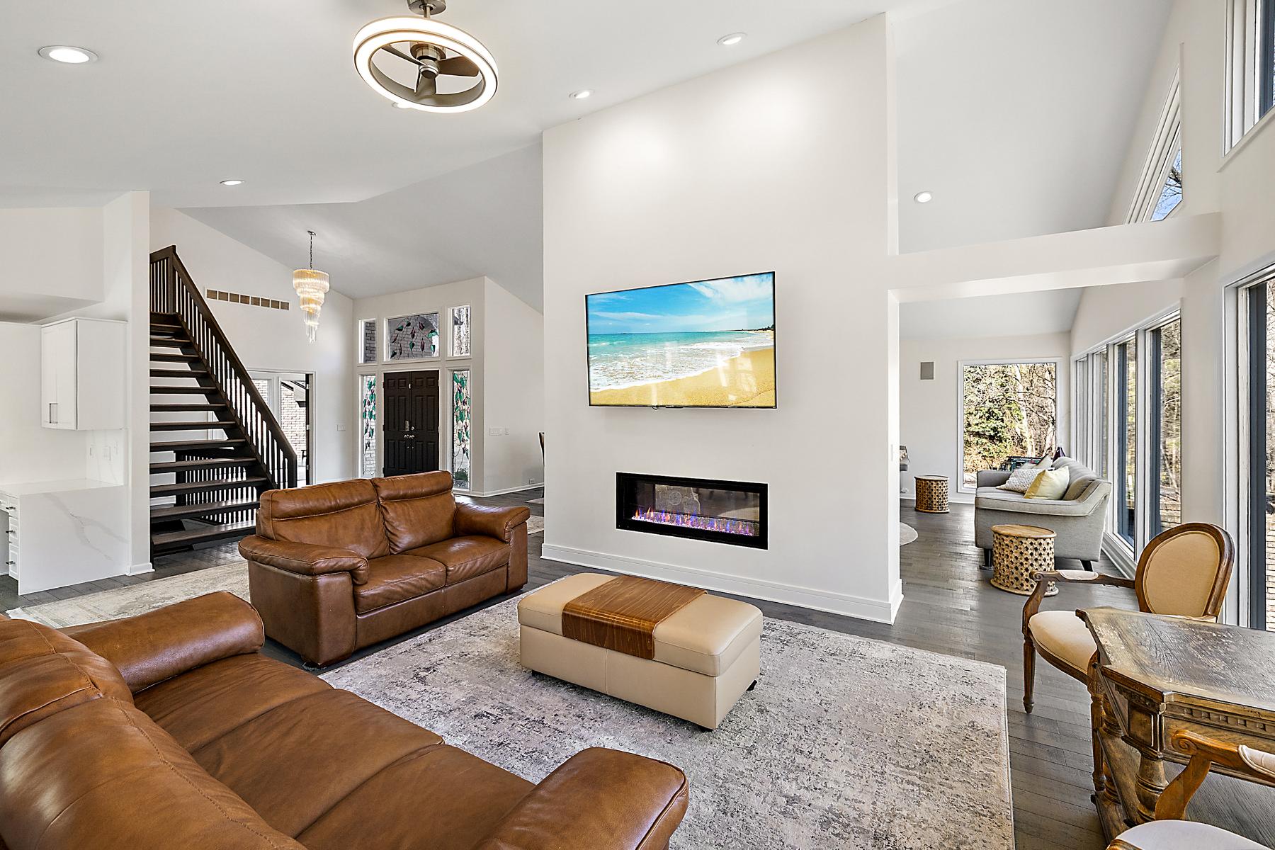 Spanning over 4,000 square feet on 2.62 acres with 5 bedrooms and 4.2 bathrooms, this completely renovated residence is set within one of Bloomfield Hills' most desirable communities, offering a refined blend of modern updates and thoughtful design. Wide plank hardwood flooring runs throughout the home, creating a cohesive and elevated interior. Designed for both everyday living and entertaining, the main level features a dramatic living room with soaring ceilings and a sleek linear fireplace, a dedicated office, and a formal dining room ideal for hosting gatherings. The fully updated kitchen showcases custom cabinetry, quartz countertops, premium stainless steel appliances, and a large island with integrated storage, complemented by a bright dining nook for casual meals. A first floor primary-suite layout provides exceptional flexibility. Upstairs, three oversized bedrooms are paired with fully updated bathrooms. The finished lower level extends the living space with a built-in bar, and a full kitchen and bath creating an ideal environment for entertaining or recreation. Exterior improvements include a new roof, refreshed landscaping, and recently updated mechanicals including a 2-year-old A/C and furnaces. Located in Bloomfield Hills, this home offers close proximity to parks, golf courses, and the vibrant shopping and dining of nearby Birmingham, providing a balance of privacy, convenience, and an exceptional suburban lifestyle. The sale includes the 0.56 acre vacant lot.