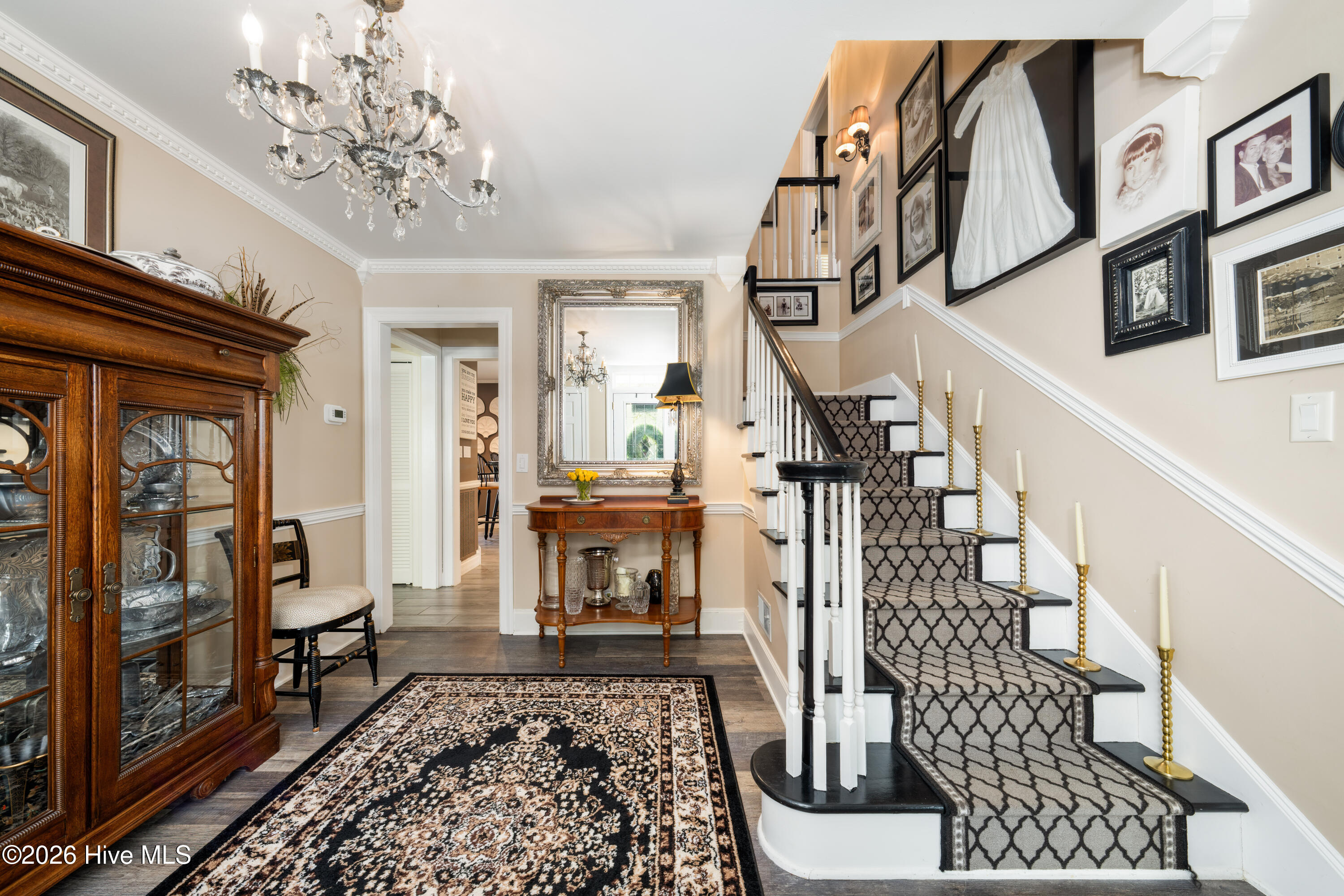 Set in one of Wilmington's most desirable neighborhoods, this brick Colonial Revival residence evokes the timeless elegance and understated simplicity of early American colonial homes. Situated on over half an acre in the prestigious enclave of Glen Meade, the property offers privacy, scale, and refined living. The 5-bedroom, 4-bath home has been thoughtfully renovated, blending classic architectural details with modern sophistication. Defined woodwork, crown and ceiling moldings, chair molding, and plantation shutters throughout, abundant windows, exceptional storage, and meticulous attention to detail create light-filled spaces that feel graceful and inviting. Traditional colonial character is elevated throughout by a fresh elegance, complemented by all new mechanicals for peace of mind. Offering approximately 4,072 square feet, the home is designed for both everyday living and entertaining. Two primary bedroom suites -- one upstairs and one downstairs -- provide flexibility and comfort. The upstairs suite features a spa-inspired bathroom for peaceful calm, while the downstairs suite enjoys a coffee bar/kitchenette. A dedicated home office adds functionality and versatility. Multiple indoor and outdoor gathering spaces include the sweeping courtyard and an upper-level veranda, perfect for morning coffee or evening conversation. A chef's kitchen anchors the home with both beauty and function, while a rare four-car garage provides remarkable convenience. A front circular drive welcomes guests with classic curb appeal, complemented by a private rear owner's drive for ease and discretion. Mature landscaping, majestic live oaks, a cooled and heated detached workshop, and abundant storage complete this exceptional property. A residence of quiet confidence and timeless appeal, this home is rooted in tradition yet perfectly attuned to contemporary living. Rarely does a property of such classic elegance become available in one of Wilmington's most distinguished and sought-after neighborhoods.