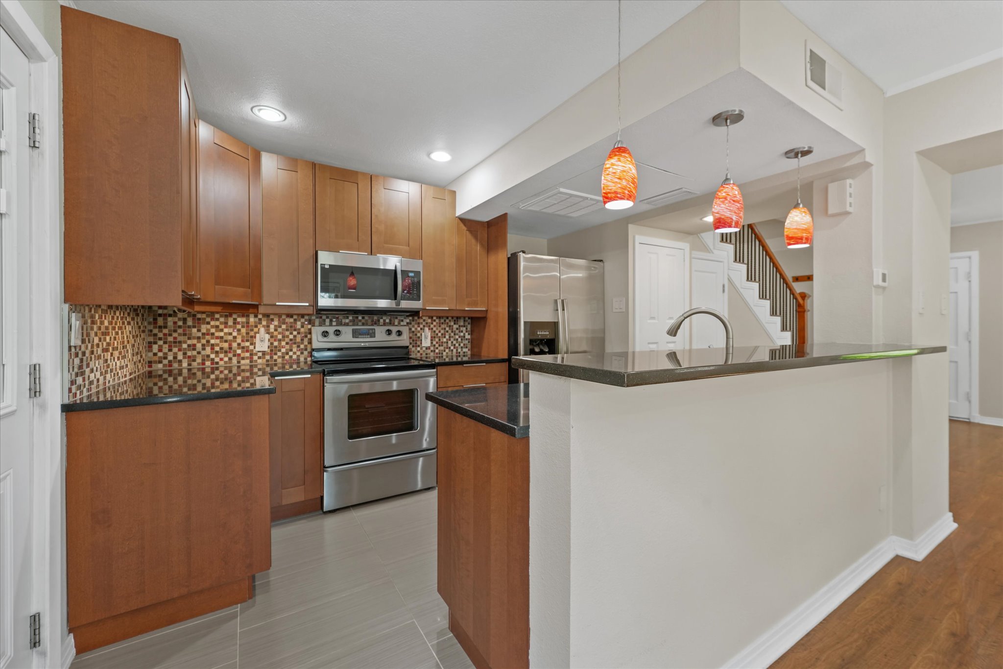 Welcome to your cozy oasis in the heart of Bordeaux Village. This corner unit offers a prime location with peaceful greenbelt views both in front and along the side, creating a serene and private setting. Inside, you’ll find beautifully updated interiors and hardwood floors throughout.The open-concept layout seamlessly connects the living, dining, and kitchen areas, making it ideal for entertaining or simply relaxing at home. The kitchen features modern appliances, sleek countertops, and ample cabinet storage.Both bedrooms are generously sized and offer great closet space. The updated bathroom includes a contemporary vanity and an upgraded shower.Step outside to your private patio — perfect for grilling, morning coffee, or adding turf for your furry friend to enjoy.