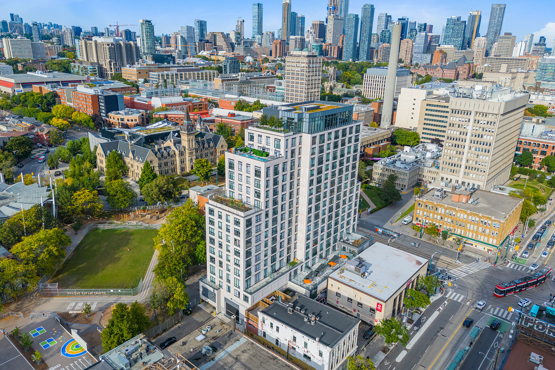 Welcome to Waverley, a boutique purpose-built rental residence by Fitzrovia, located at the iconic corner of College Street and Spadina Avenue. Thoughtfully designed to reflect the creative energy and heritage of the neighbourhood, Waverley blends contemporary architecture with artistic interiors and hospitality-inspired living. The building pays tribute to the site's storied past, including the historic Silver Dollar Room, seamlessly integrated into a modern residential experience. Suites feature smart, efficient layouts with elevated designer finishes, including stainless steel KitchenAid appliances, quartz countertops, integrated dishwashers, in-suite laundry, custom millwork, smart keyless entry, and Wi-Fi-enabled Nest thermostats. Select suites offer kitchen islands and wine fridges. Pet-friendly building. Residents enjoy a comprehensive amenity collection including a signature rooftop infinity pool, The Temple commercial-grade fitness centre, yoga and spin studios, co-working and lounge spaces, screening room, pet spa, landscaped terraces with barbecues, and a double-height lobby featuring 10 DEAN Café and Bar and Greenhouse Juice. Additional conveniences include twenty four hour concierge, secure parking, bike storage, EV charging, luxury car share, and professional on-site management. Steps to Kensington Market, Little Italy, Chinatown, U of T, and TTC streetcars, offering immediate access to some of Toronto's most vibrant cultural destinations. A rare opportunity to lease in one of downtown Toronto's most distinctive rental communities.