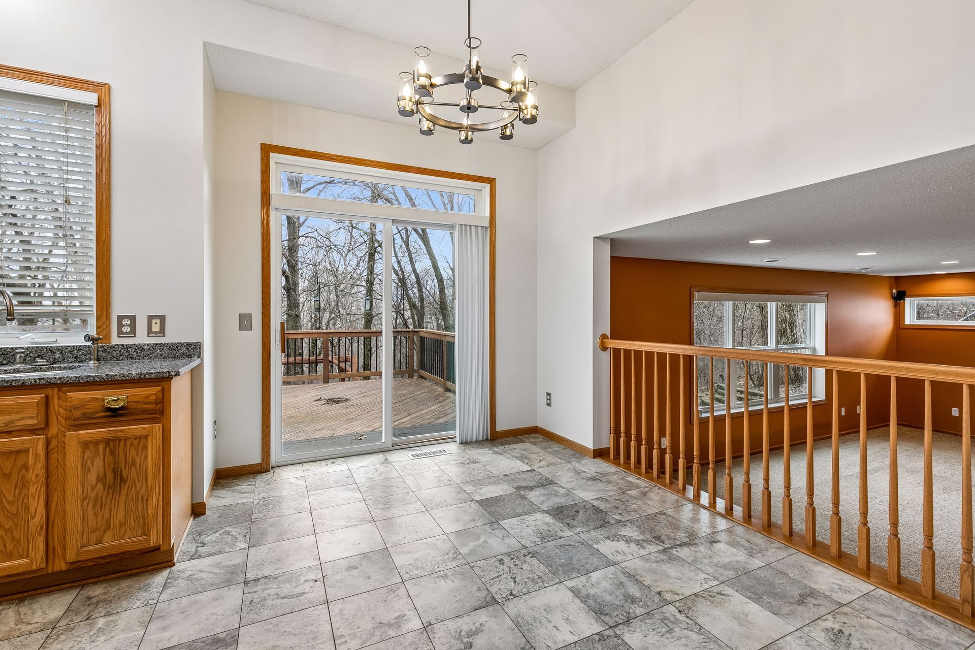 Tucked away at the end of a quiet cul-de-sac, this one-of-a-kind property offers a rare blend of privacy, natural beauty, and everyday convenience. Set on a heavily wooded, fully fenced one-acre lot, the home feels like a private retreat—where mature trees, peaceful views, and thoughtfully designed outdoor spaces create a setting that’s increasingly hard to find. Whether you’re enjoying morning coffee on the private deck, gathering around the fire pit, or simply taking in the serene backdrop from inside, the connection to nature here is truly special. Inside, the home balances comfort and functionality with inviting spaces throughout. The main level features a spacious living room with hardwood floors, flowing seamlessly into an updated kitchen with granite countertops and tile flooring. Informal dining areas in both the kitchen and living room make everyday living and entertaining easy. Just beyond, the family room offers a cozy gas fireplace and entertainment center with surround sound, perfect for relaxing evenings at home, and numerous windows frame the wooded views, enhancing the sense of privacy. Upstairs, you’ll find three bedrooms and two full baths, including the master suite and en suite with tranquil treetop views and a generous walk-in closet; and in the lower level, a potential fourth bedroom, office, or recreation space provides flexibility. Throughout the home, thoughtful updates, such as updated main-level lighting and California Closets systems in multiple rooms add style and organization while still leaving room for your personal touch. Outside, the property truly shines. In addition to the expansive deck, you’ll find a large paver patio and fire pit area, ideal for entertaining or unwinding in your own private oasis, not to mention an ideal fenced-in side yard for a safe play space and pets. Located within walking distance to local schools and just minutes from I-35E and endless shopping and dining options, this home offers the perfect combination of seclusion and accessibility. Opportunities like this—where a setting this special meets a home with so much potential—are few and far between.