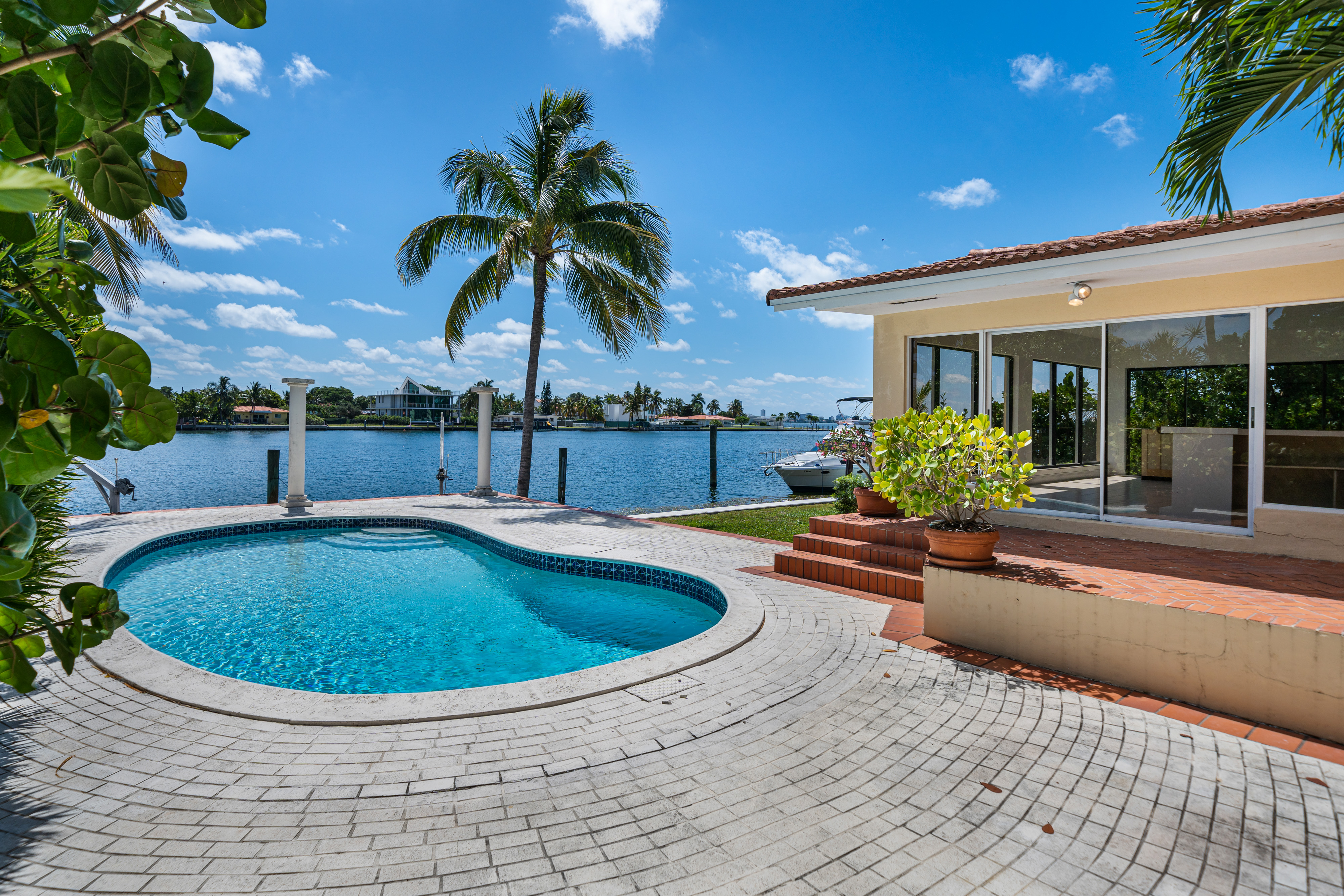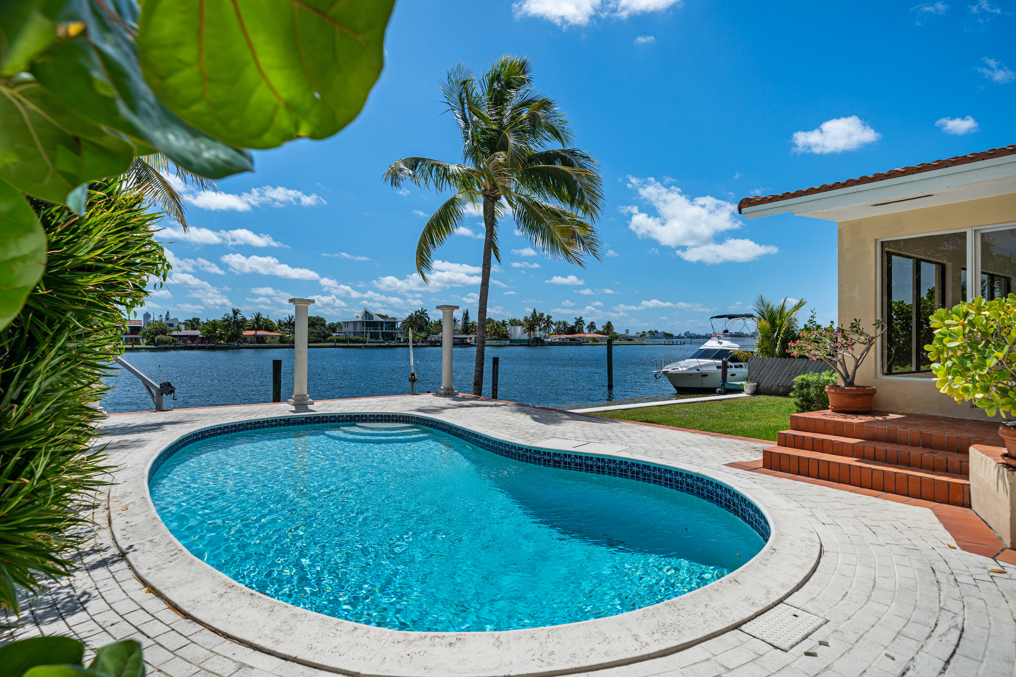 Spacious 3 Bed/3.5 Bath Elevated Waterfront Home Located in the Highly Coveted and Gated North Bay Island. Situated on an Oversized Lot, This Property Features a 2 Car Garage with Driveway Space for 2 more cars, Massive Backyard with Pool Overlooking Biscayne Bay and Miami Beach. 80 Ft of Waterfrontage. Interior Features Marble and Laminate Flooring Throughout. First Floor Features 2 Bedrooms/2 Bathrooms and Florida Room Perfect for Entertaining Family and Friends with an Indoor/Outdoor Aspect. Owner Suite Located Upstairs with Large Bathroom and Roomy Closets. Location Offers East Access to All Major Roadways, Shopping, School, Public Parks, Public Transportation, Dining, and So Much More!