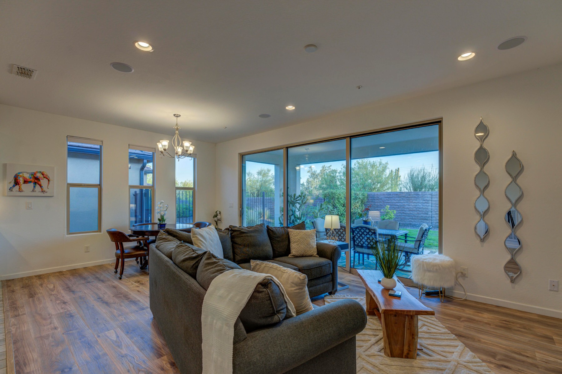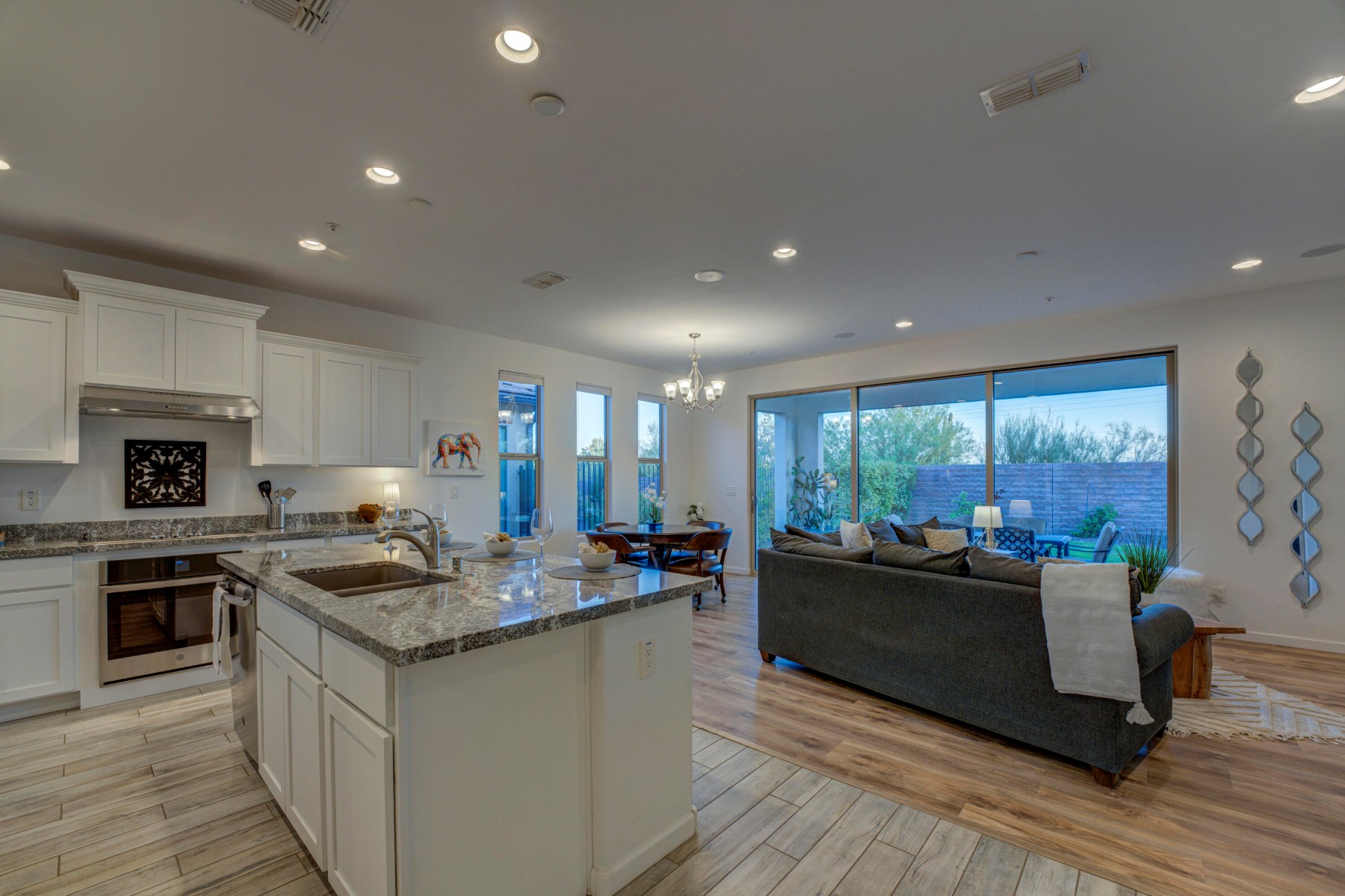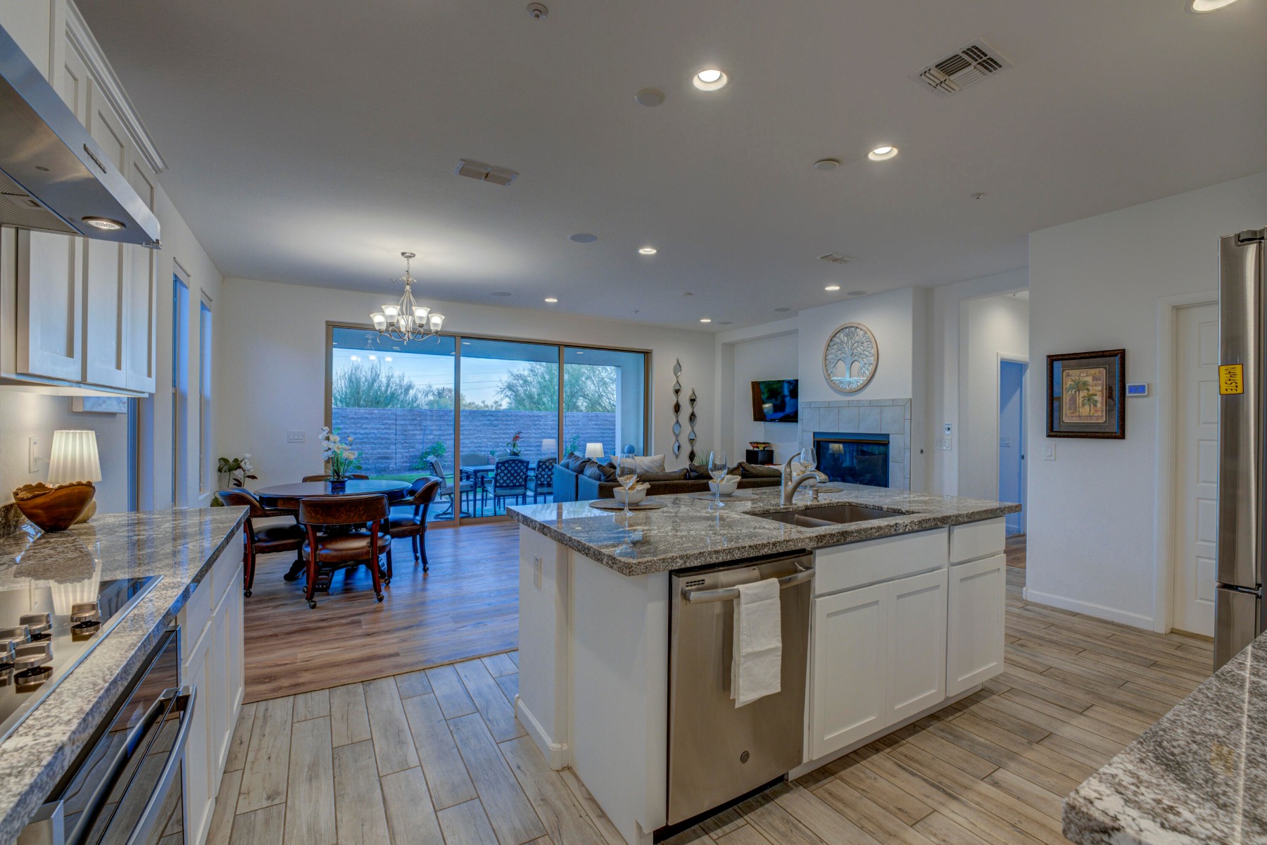 Experience luxury living in the prestigious Trilogy at Verde River!This lovely Juniper model features 2 bed/2 bath and designer finishes throughout.The heart of the home is the gourmet kitchen boasting gorgeous granite slabs, an upscale appliance package, upgraded cabinetry an expansive island that flows into a light -filled great room and breakfast nook. The primary suite serves as a true retreat, offering a private sitting room, upgraded shower, dual sinks, and a generous walk in closet. Enjoy seamless indoor-outdoor living with a stunning pocket door leading to the covered patio and oversized lot. The south facing backyard offers open views with no rooftops in sight, providing ultimate privacy. Residents enjoy world-class amenities including a Tom Lehman -inspired 18 hole golf course, tennis, pickleball, bocce ball, a heated lap pool and resort-style swimming pool. An amazing place to call home!