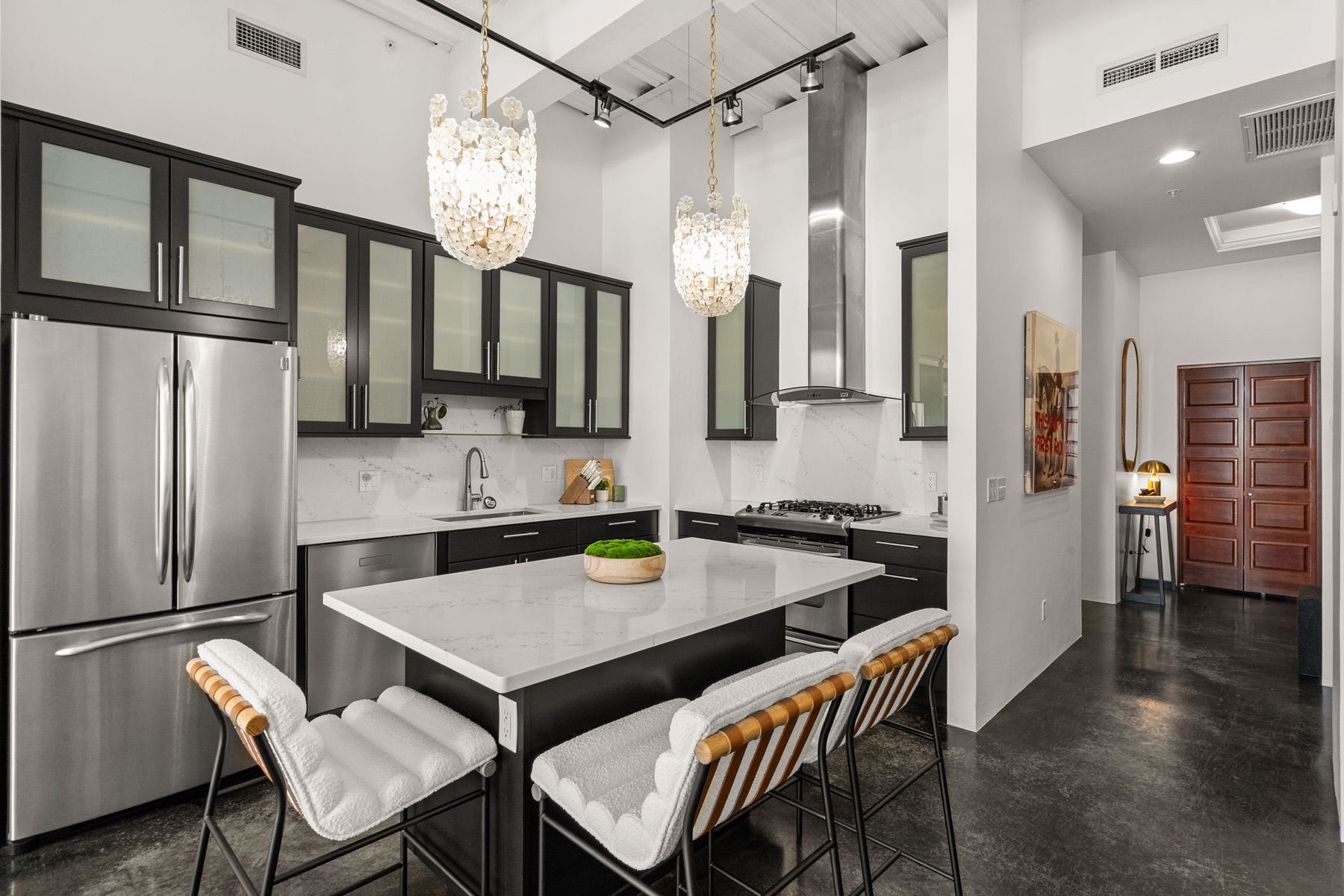 Experience effortless downtown living in this beautifully appointed corner residence at Village Downtown Lofts. This thoughtfully designed 2-bedroom, 2-bath condo offers single-level convenience with abundant natural light and a seamless, open-concept layout ideal for both everyday living and entertaining. The space feels private and inviting, with large windows that frame stunning views of the Bridger Mountains. Step outside to the expansive balcony, perfect for morning coffee or unwinding after a day in the mountains. Inside, you'll find a blend of comfort and functionality, featuring a gas fireplace, updated kitchen with modern appliances, brand new quartz countertops and painted cabinetry, a dedicated dining space, and two generous bedrooms. The commanding primary suite boasts ample storage, and a light-filled en-suite bathroom. Ideally located in a quiet pocket of downtown, this residence offers immediate access to trails, parks, and the best of Bozeman's dining, shopping, and vibrant community.