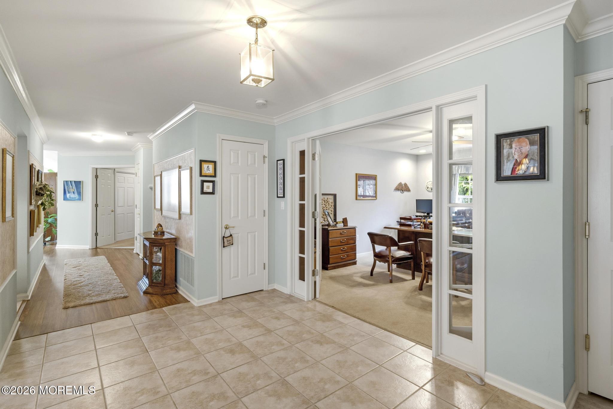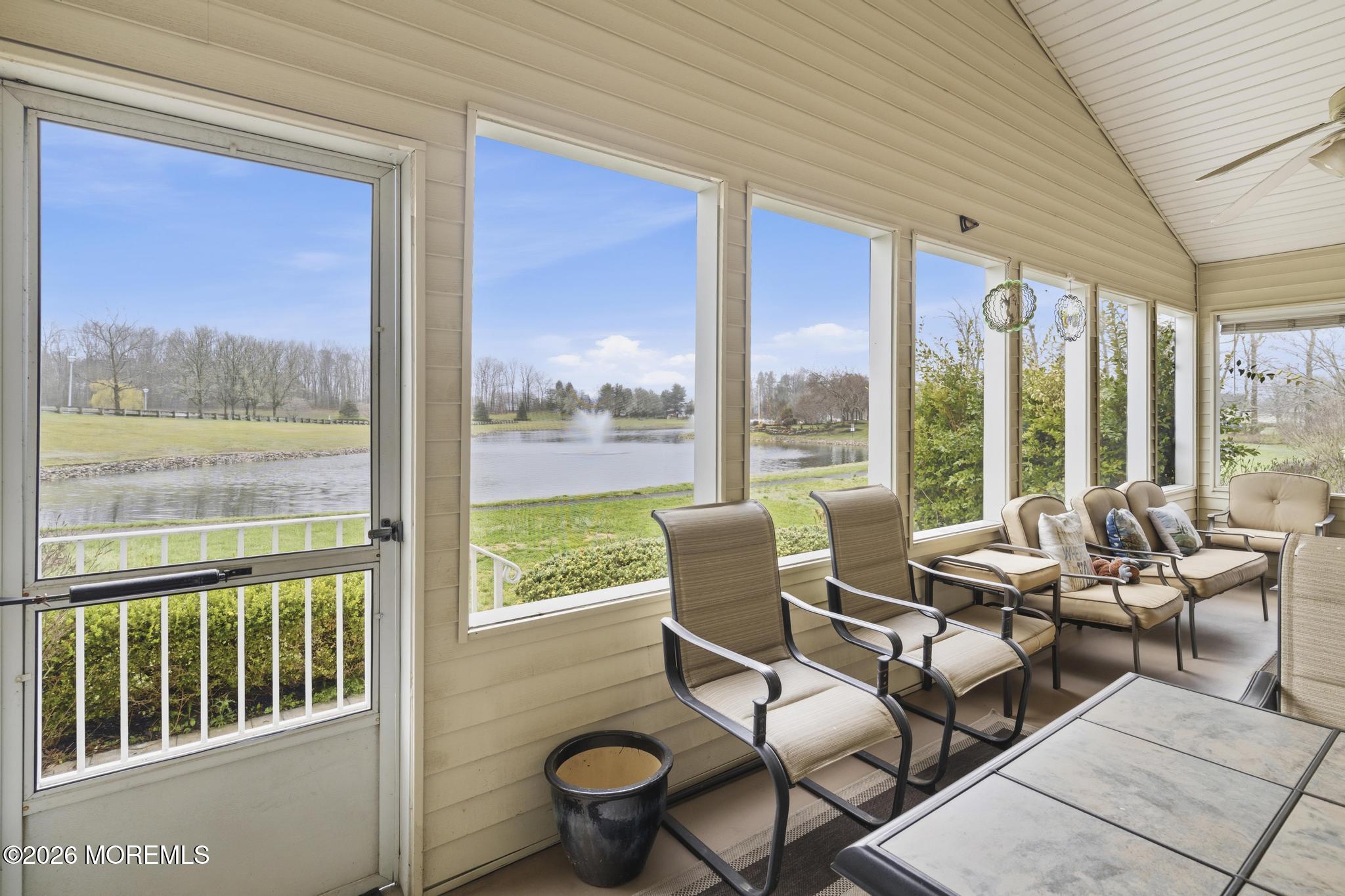 Rare, upgraded Fairways III model featuring a finished basement w/ a 4th bedroom, half bathroom, recreational room, & abundant storage. Ideally located on a scenic pond w/ fountains, this home offers both beauty & tranquility. Filled w/ natural light, the interior showcases clerestory windows, a bay window, & skylights. Additional highlights include crown moldings, a gas fireplace in the family room, & a spacious screened porch accessible from both the primary bedroom & the extended family room. The large primary bath features a whirlpool tub, kitchen is equipped with 42'' cabinets, a center island, & upgraded appliances. Owned solar panels provide energy efficiency & potential financial incentives, and a backup generator ensures peace of mind. No detail has been overlooked in this home.