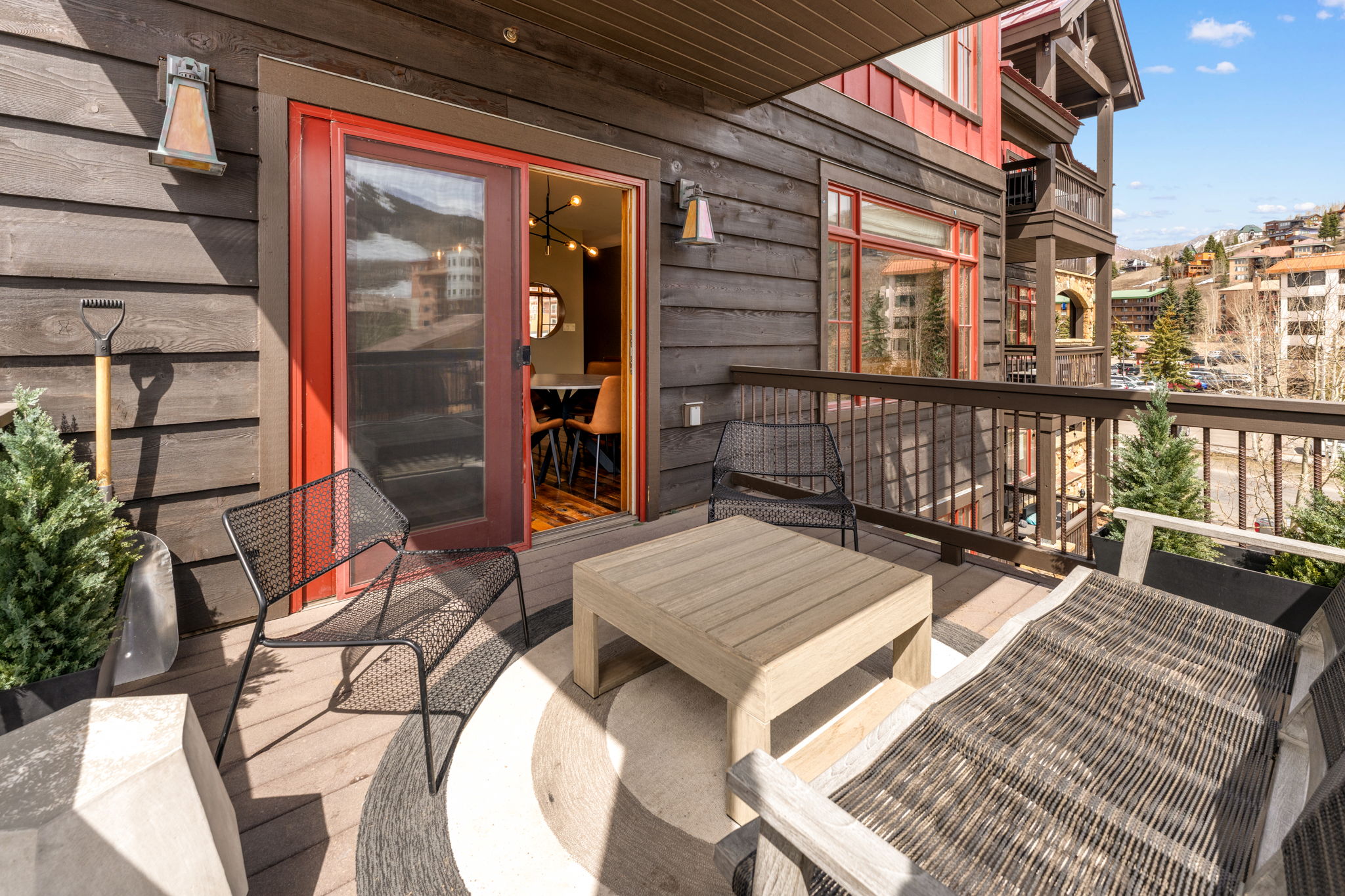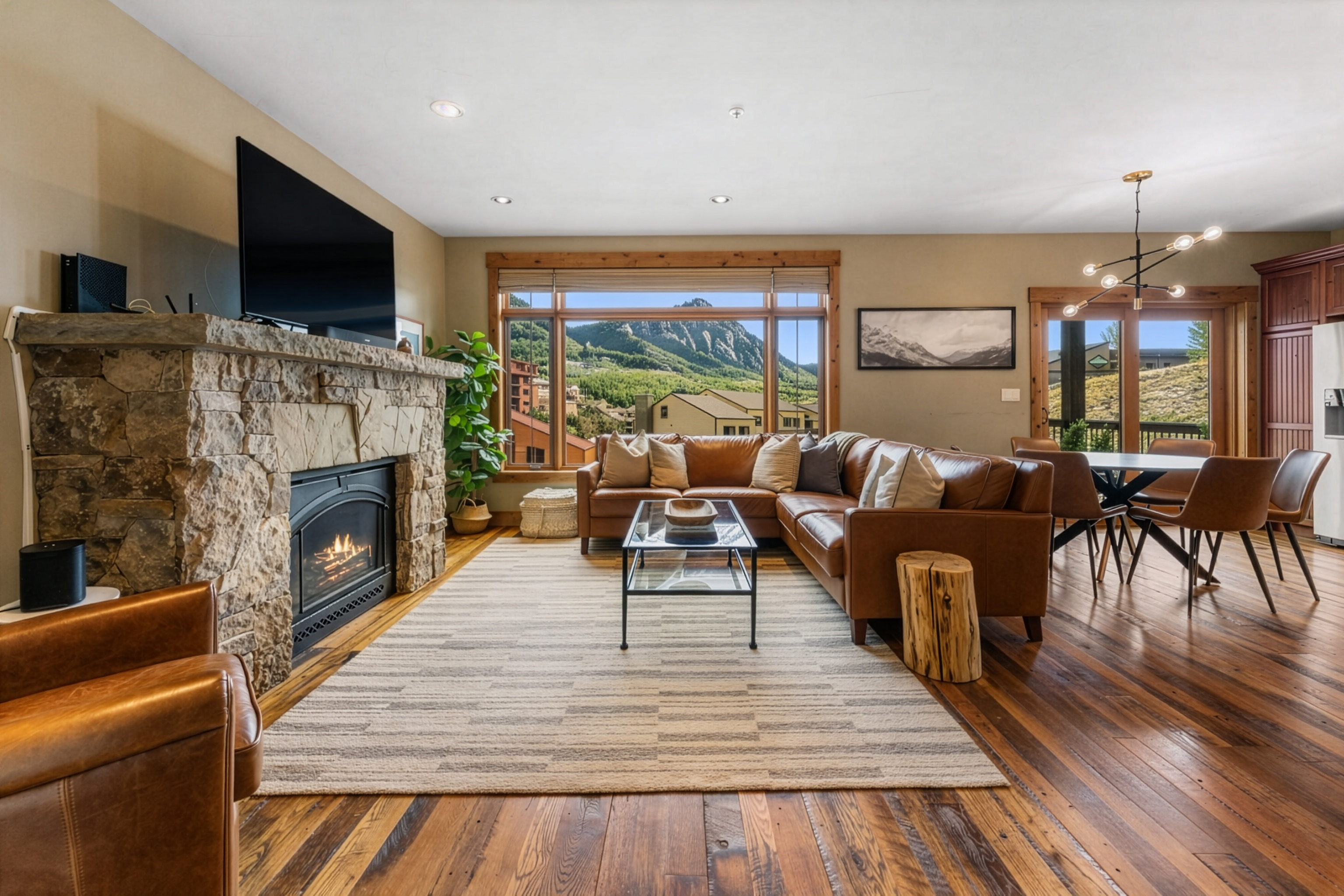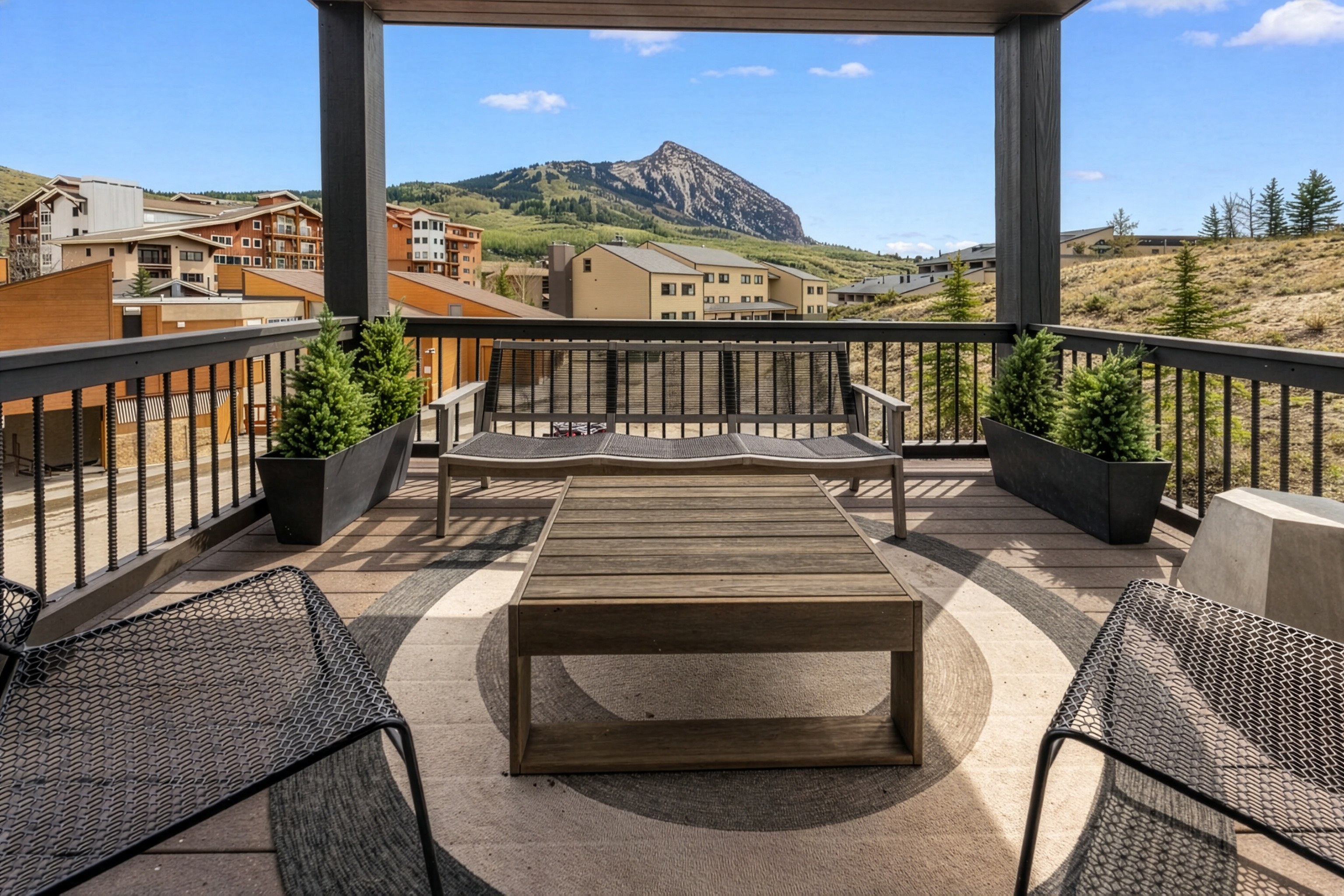 Located at the doorstep of Crested Butte Mountain Resort, Unit 2A at the Black Diamond Lodge is a pristine two-bedroom, two-and-a-half-bath mountain home, offering 1,236 square feet of carefully finished living space. From the moment you step inside, the quality of the finishes is evident — reclaimed oak floors, natural stone tile, and nine-foot ceilings create a sense of warmth and ease.The main living area centers around a natural gas fireplace, with mountain views framing the space beyond. Radiant in-floor heat keeps the residence consistently comfortable, while the kitchen — appointed with granite slab countertops and Bosch stainless appliances — is well-suited for everything from a quick après-ski meal to a relaxed weekend dinner on the spacious balcony overlooking Mt. Crested Butte. Both bedrooms are spacious, bright, and offer ensuite baths. The Black Diamond building is designed with the mountain lifestyle in mind. A secure underground parking garage, private ski lockers, dedicated storage, and elevator access make daily life seamless. The amenities serve owners year-round and include an outdoor hot tub, as well as new fitness and office spaces completed in 2025. In addition, the exterior was stained in 2025, the interior hallways were refreshed with new carpet and paint, and a new engineered roof was installed.Offered fully furnished, Unit 2A serves an ideal primary residence or an income-producing property. The combination of ski-in proximity, strong building amenities, and high-quality finishes positions it well in the Crested Butte short-term rental market, while its livability and condition make it equally appealing as a full-time home. Just across the street is Mountaineer Square and the free town shuttle to Crested Butte's vibrant downtown, with its independent restaurants, local shops, and year-round events. The paved recreation path runs just steps from the building and provides easy access to miles of cycling and hiking in summer and groomed Nordic skiing in winter. In every season, the valley delivers — wildflower meadows, world-class fly fishing, mountain biking trails, and some of the most dramatic scenery in Colorado, all within reach from your front door.