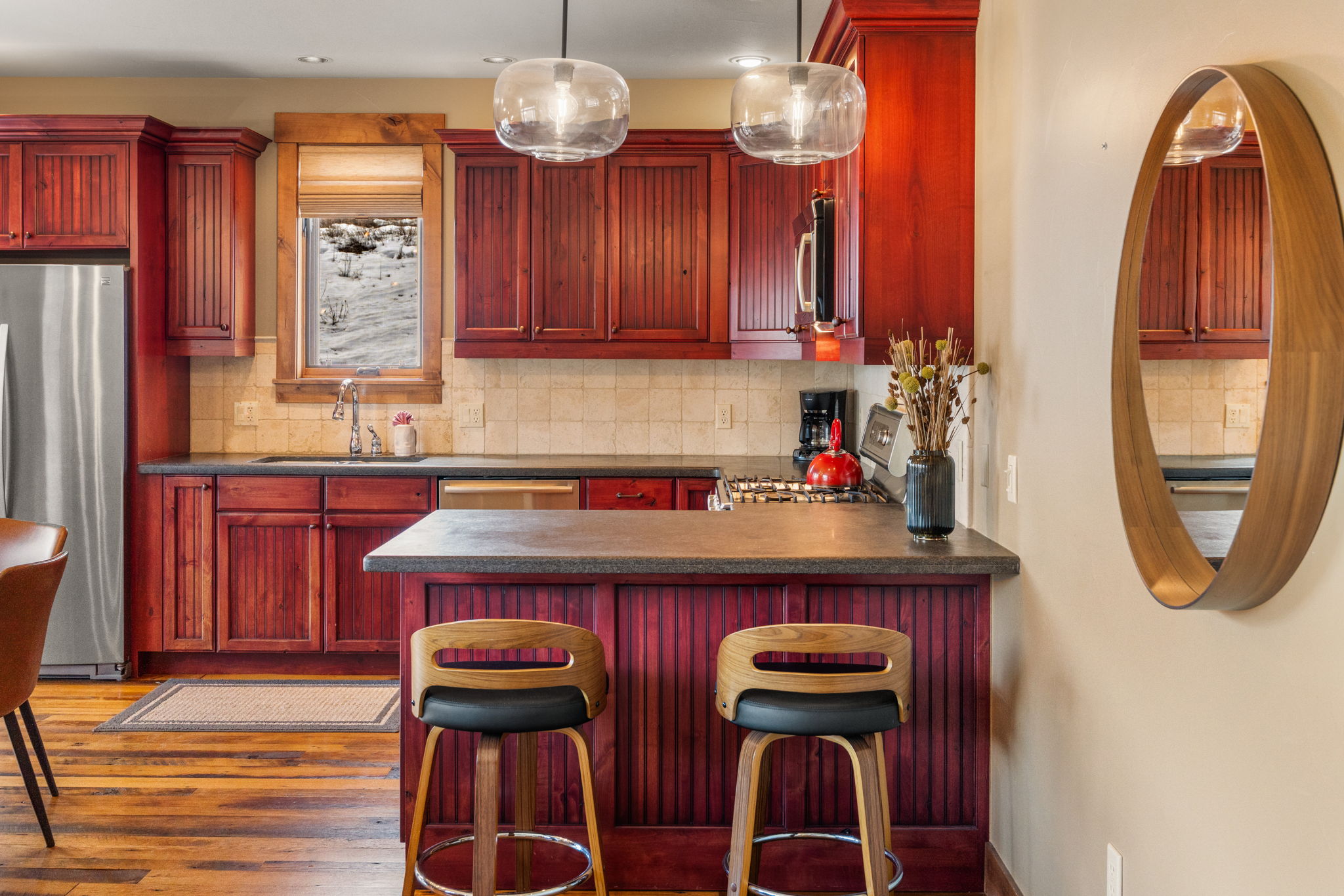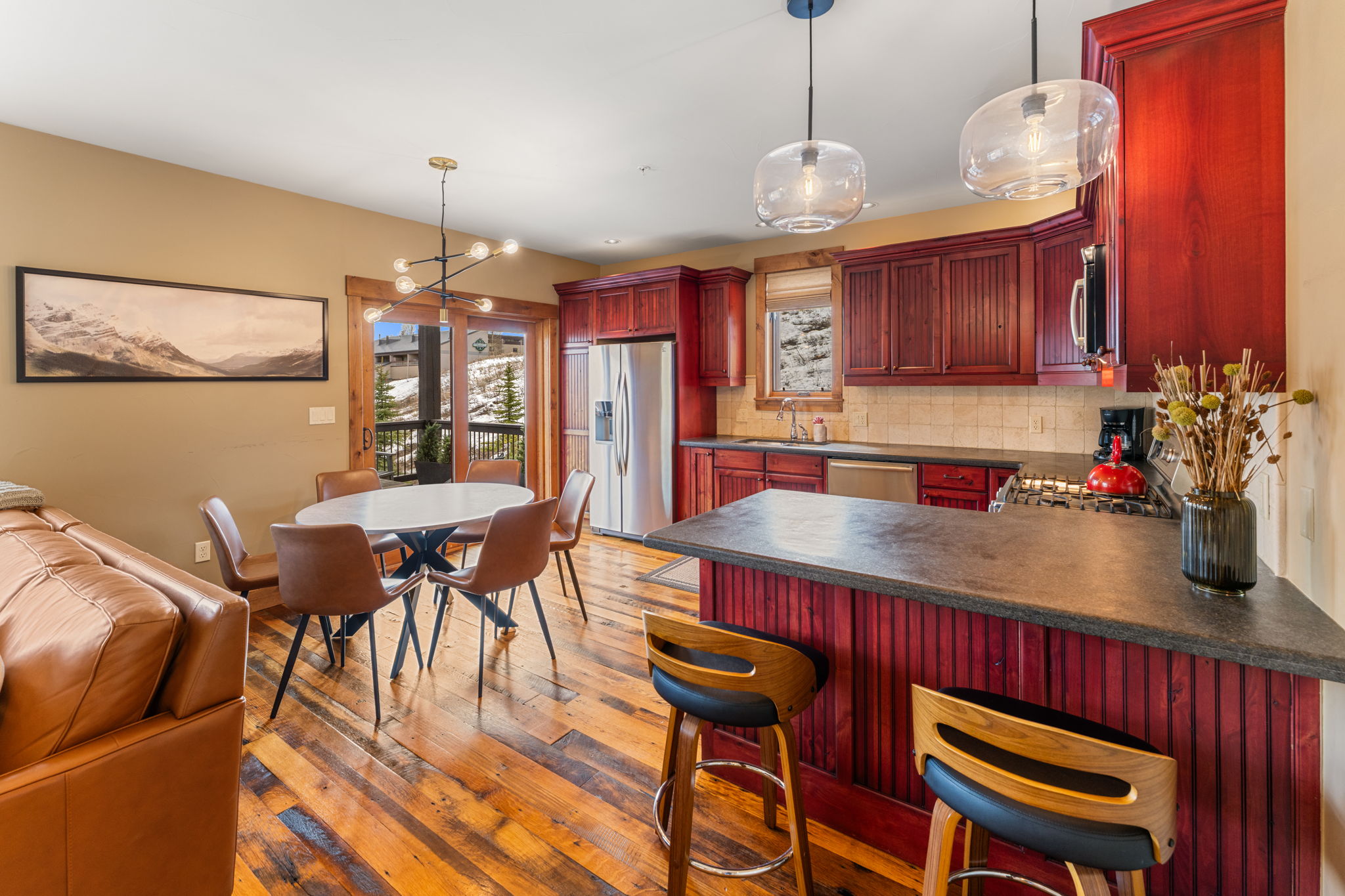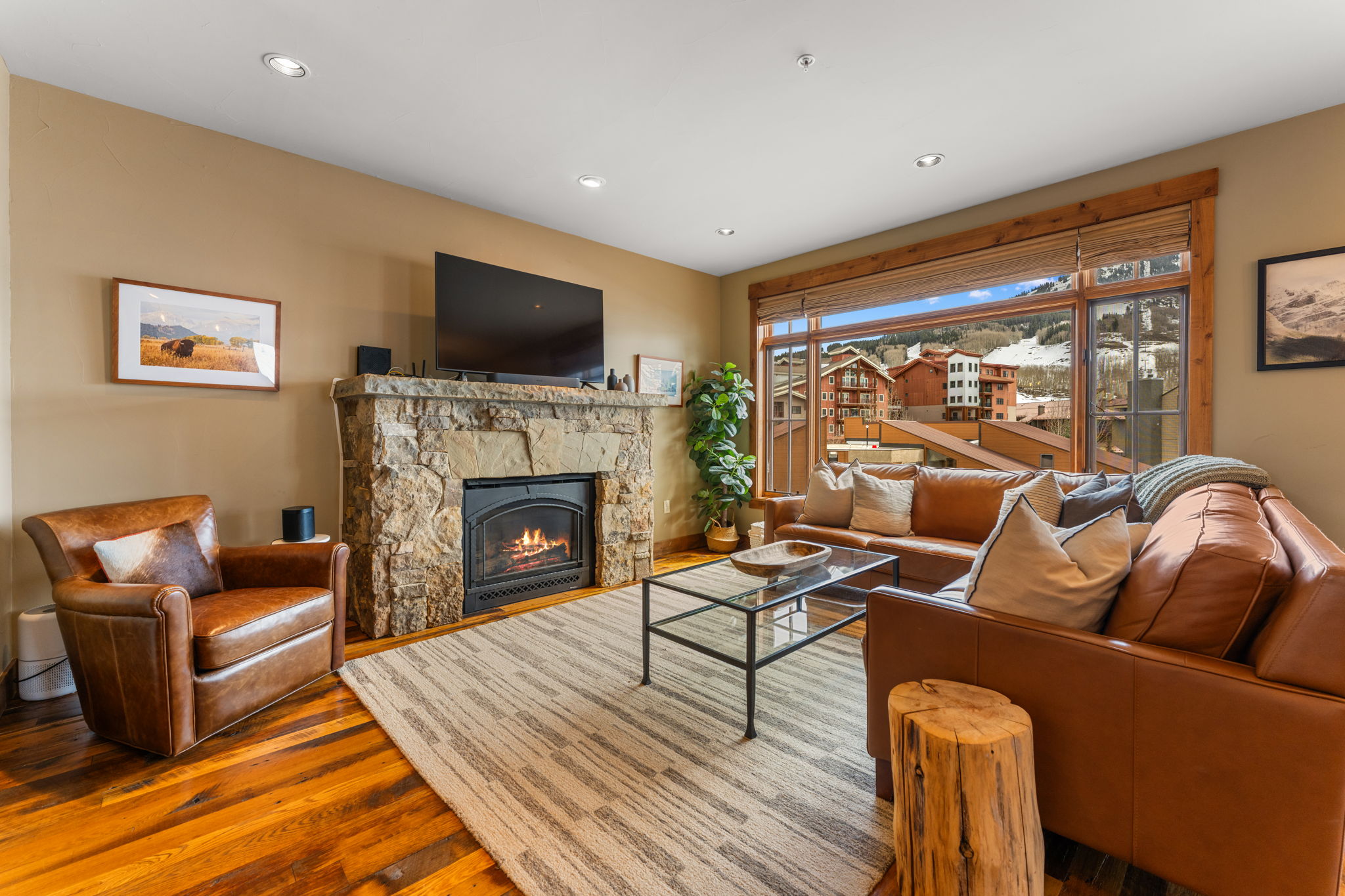 Located at the doorstep of Crested Butte Mountain Resort, Unit 2A at the Black Diamond Lodge is a pristine two-bedroom, two-and-a-half-bath mountain home, offering 1,236 square feet of carefully finished living space. From the moment you step inside, the quality of the finishes is evident — reclaimed oak floors, natural stone tile, and nine-foot ceilings create a sense of warmth and ease.The main living area centers around a natural gas fireplace, with mountain views framing the space beyond. Radiant in-floor heat keeps the residence consistently comfortable, while the kitchen — appointed with granite slab countertops and Bosch stainless appliances — is well-suited for everything from a quick après-ski meal to a relaxed weekend dinner on the spacious balcony overlooking Mt. Crested Butte. Both bedrooms are spacious, bright, and offer ensuite baths. The Black Diamond building is designed with the mountain lifestyle in mind. A secure underground parking garage, private ski lockers, dedicated storage, and elevator access make daily life seamless. The amenities serve owners year-round and include an outdoor hot tub, as well as new fitness and office spaces completed in 2025. In addition, the exterior was stained in 2025, the interior hallways were refreshed with new carpet and paint, and a new engineered roof was installed.Offered fully furnished, Unit 2A serves an ideal primary residence or an income-producing property. The combination of ski-in proximity, strong building amenities, and high-quality finishes positions it well in the Crested Butte short-term rental market, while its livability and condition make it equally appealing as a full-time home. Just across the street is Mountaineer Square and the free town shuttle to Crested Butte's vibrant downtown, with its independent restaurants, local shops, and year-round events. The paved recreation path runs just steps from the building and provides easy access to miles of cycling and hiking in summer and groomed Nordic skiing in winter. In every season, the valley delivers — wildflower meadows, world-class fly fishing, mountain biking trails, and some of the most dramatic scenery in Colorado, all within reach from your front door.
