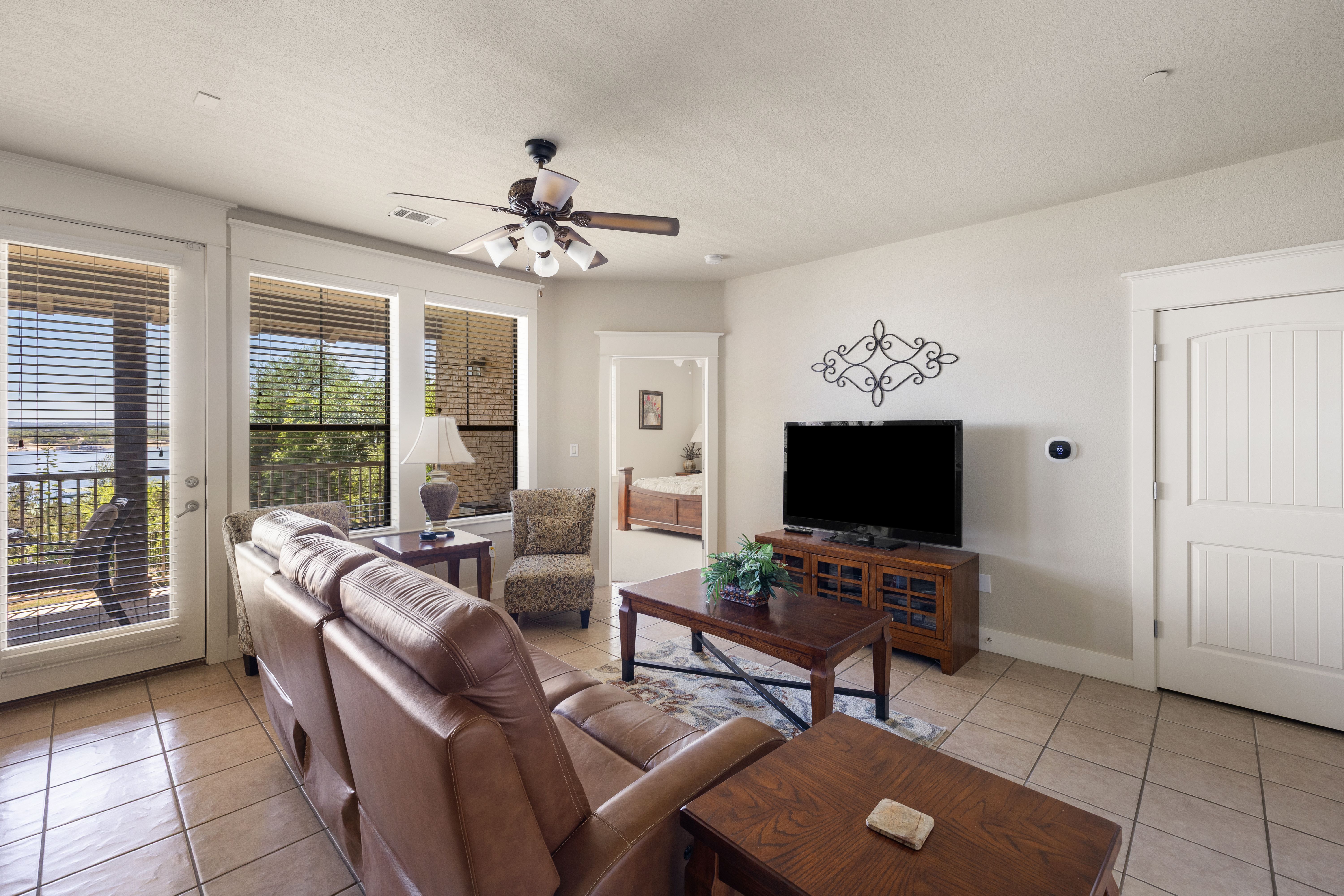 Experience the warmth of refined Hill Country living in this beautiful top-floor retreat. Perfectly positioned for peaceful living with no unit above, this residence offers a thoughtfully designed layout that feels open, bright, and perfectly synced with its natural surroundings.The heart of the home is an inviting open-concept living and dining area, framed by large windows that pull in serene lake views. The spacious primary suite serves as a true sanctuary, boasting a walk-in closet and expansive windows overlooking the tranquil waters of Kayak Cove.Outdoor Living & Amenities:Expansive Covered Deck: Relax on your oversized private balcony, designed for shaded outdoor living with a front-row seat to the Lake Travis main channel.Premier Lakeside Access: Unlike remote hillside units, you are a short stroll from The Hollows Beach Club, featuring a lakeside restaurant and bar, multiple pools, hot tubs, a fitness center, pickleball, and direct kayak access.Boater’s Paradise: Just steps from Northshore Marina, where residents enjoy priority access to boat slips.Convenience & Community:This gated enclave offers the ultimate in lock-and-leave ease with elevator access and a private ground-level garage. The HOA provides a maintenance-free lifestyle, covering water, trash, and exterior upkeep. With a 30-day minimum rental restriction, the community maintains a serene, resident-focused atmosphere.Discover your elevated Hill Country lifestyle on the lake. Schedule your private tour today!