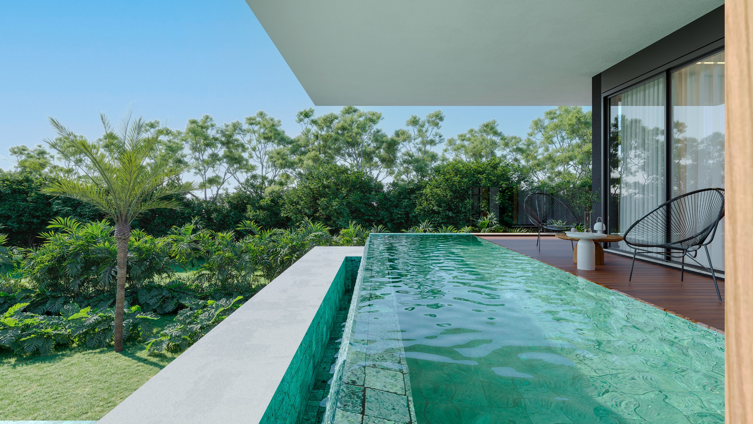 The primary suite is conceived as a private sanctuary, opening directly to its private pool and blurring the boundaries between interior and exterior—creating an atmosphere that is both intimate and extraordinary.