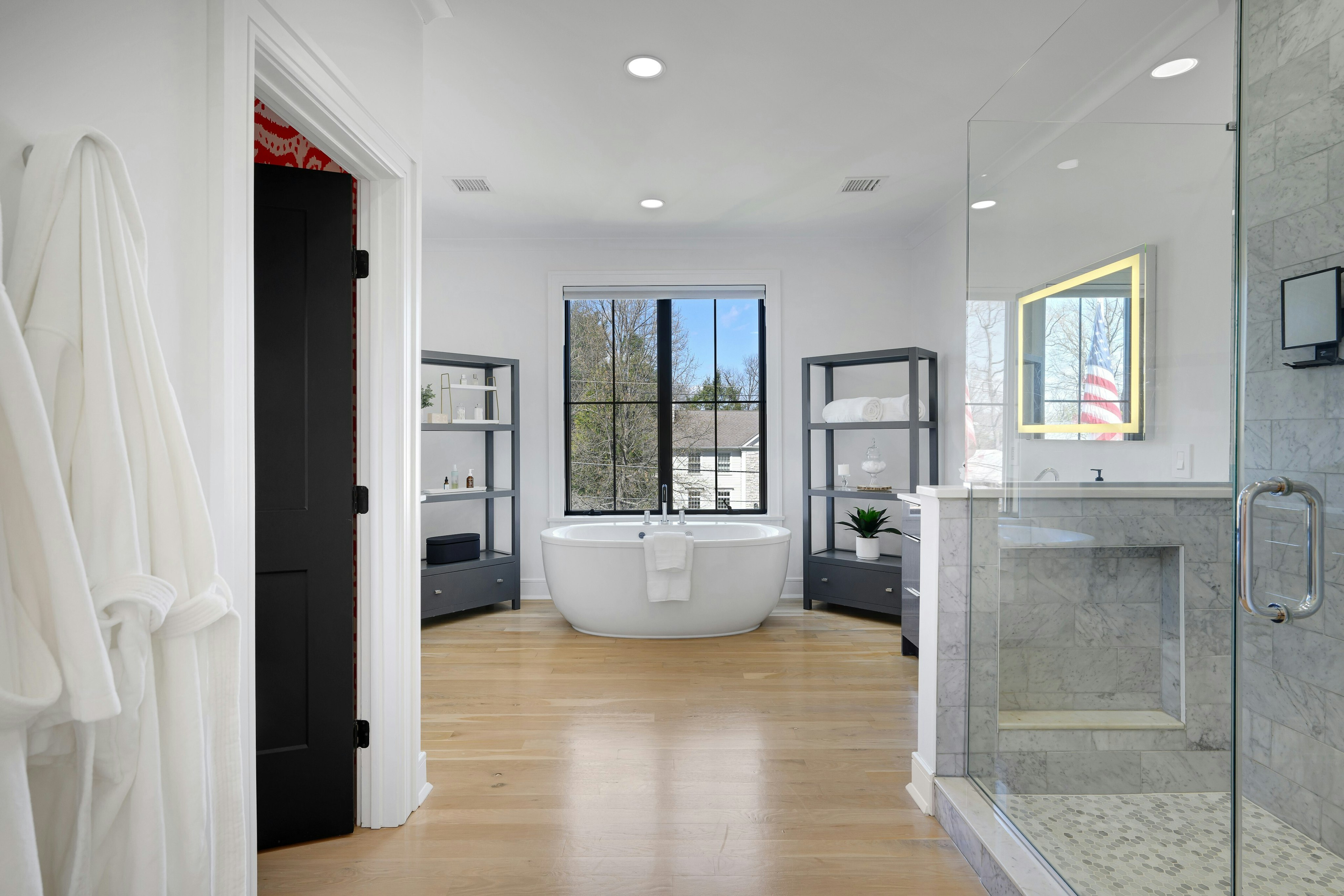 Exceptional 2020-built Northside home offering five bedrooms, five full and one half baths with 10 ft high ceilings. Renovated eat-in kitchen completed in 2025 with white cabinetry, large Thermador refrigerator, center island, two beverage/wine refrigerators and high-end finishes, with access to deck, open to bright living and dining areas. Formal dining room with custom buffet crafted from a single slab of wood. Expansive sun-filled living room with board and beam shelving and abundant natural light. First floor bedroom with full bath, currently used as a private office, offers flexibility for guests or workspace, plus powder room on this level. On the second floor, the primary suite features a custom California Closet and spa-like bath w/Gas FP w/glass media. Three additional bedrooms include one ensuite and a Jack and Jill bath. Second floor laundry with cabinetry and sink. Finished lower with full bth offers flexible recreation, guest or media spac. Professionally landscaped property with usable backyard featuring IPE decking, bluestone patio, lawn and drainage system. Electric retractable awning and Bullfrog hot tub create ideal outdoor living. Whole house generator, sprinkler system, exterior lighting and invisible dog fence. Custom garage with split heat, epoxy floors, Garage Tech storage system and separate storage room with shelving and additional refrigerator. Designer finishes and thoughtful upgrades. Prime Northside location convenient to downtown, schools and transportation.