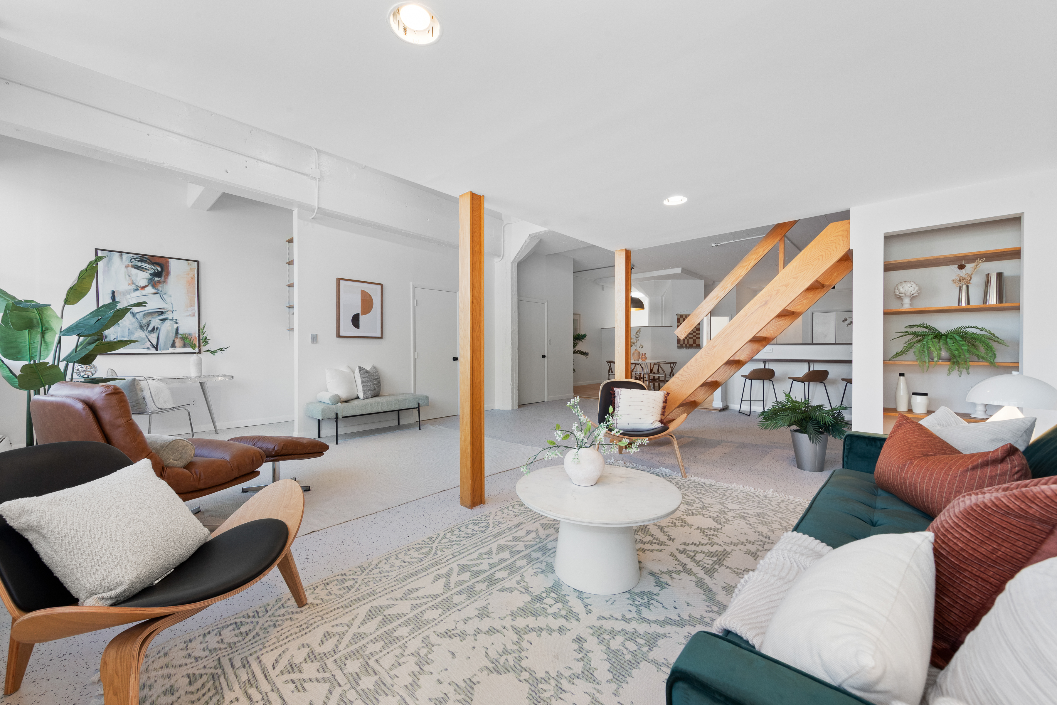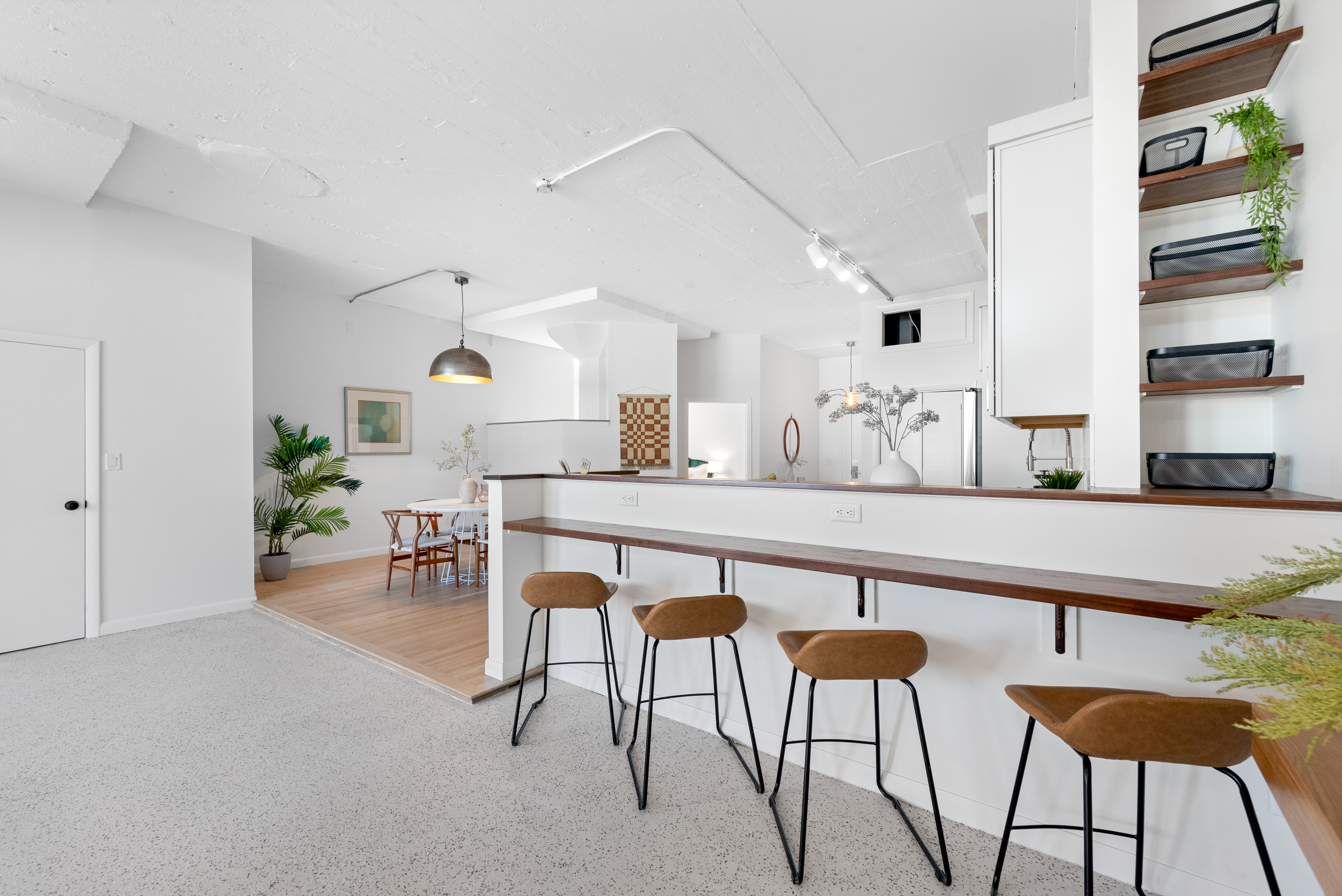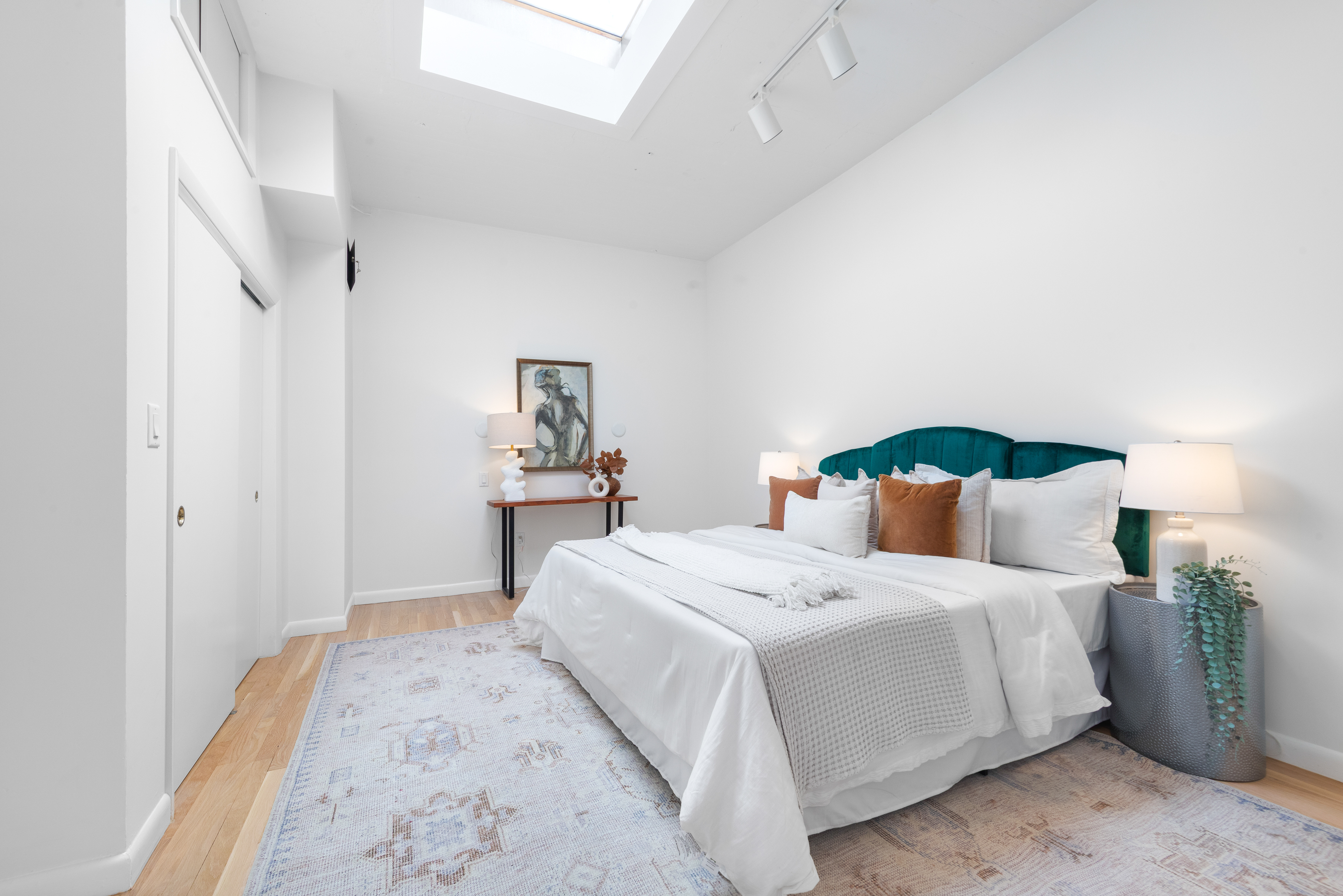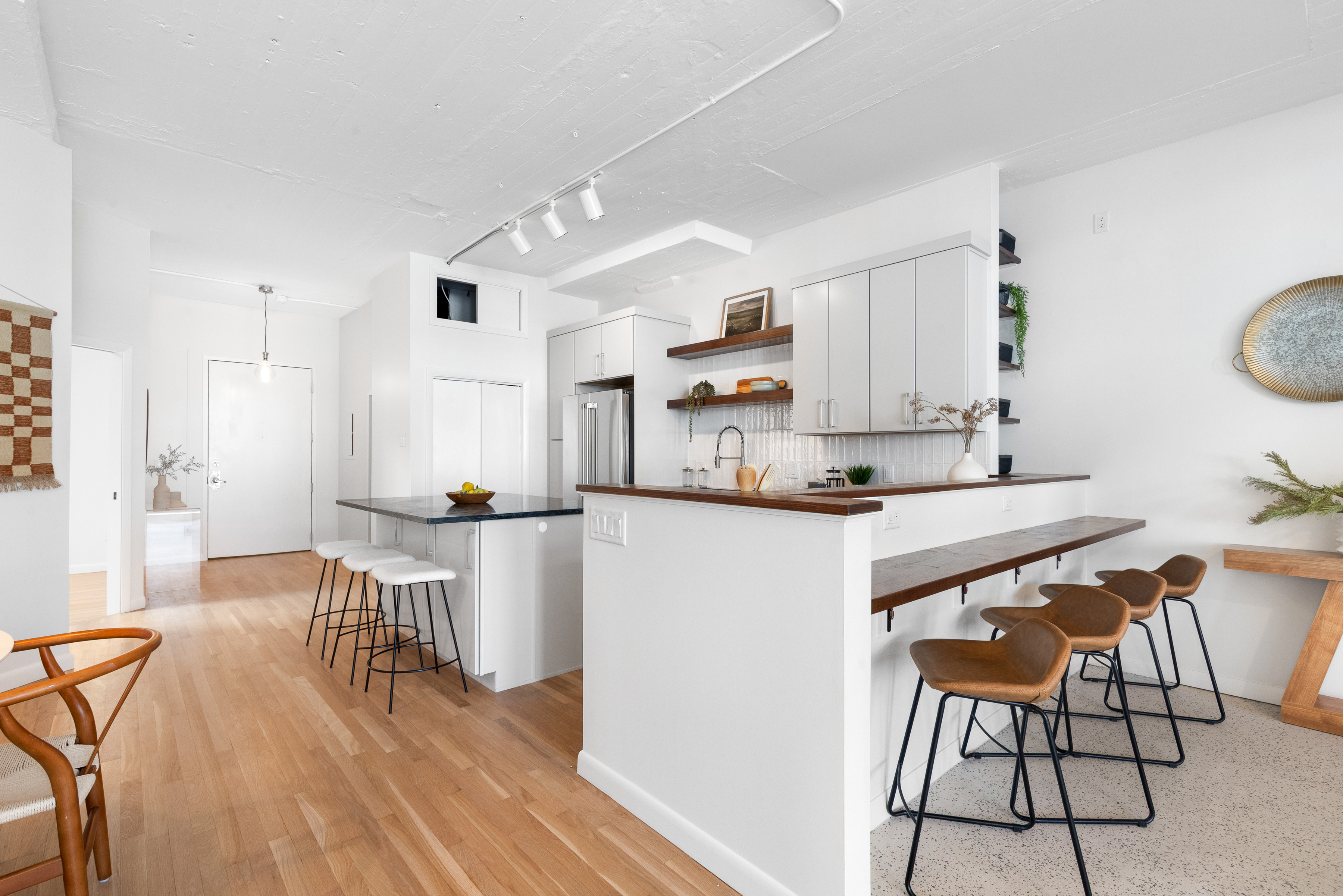 Gorgeous, newly renovated penthouse loft at Brickbottom! One of the most desirable units with soaring ceilings and skylight. Updated to meet the function and style buyers crave. Sleek kitchen features high end soapstone countertops and new GE Café appliances. Custom walnut “work from home” station and shelving are indicative of the attention to detail and the quality of craftmanship. New paint, new hardwood floors, new lighting, new washer and dryer. Spacious elevated loft offers flex space that could be used as a second bedroom. Sunlit office nook has views of the new commuter bike path and beyond through huge windows. Abundant kitchen cabinets, numerous closets and custom built-ins throughout provide exceptional storage. Rare deeded oversized non-tandem garage parking spot. Desirable area minutes from Boston, steps from new T stop. BB is a vibrant community that celebrates art in its gallery and hosts lively social events throughout the year. Welcoming shared courtyard and much more!