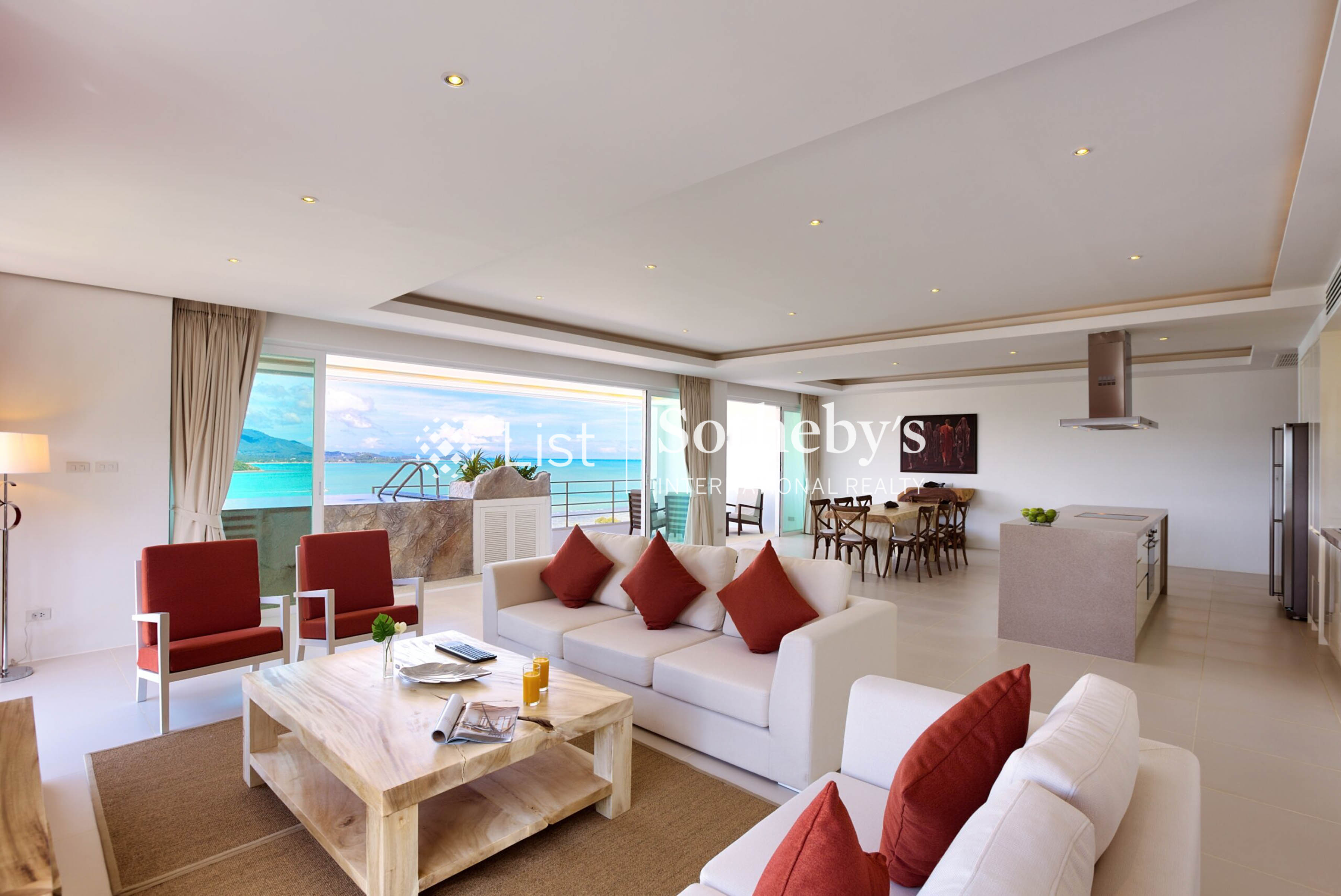 Positioned in the elevated hills of Bangrak, this residence captures a commanding panorama across Koh Samuis most iconic coastline, stretching from Chaweng Bay to Angthong Marine Park, with uninterrupted sunset views over the Gulf. Property Overview 225 sqm internal living area 105 sqm private roof terrace Expansive living space with uninterrupted sea views Fully equipped kitchen 3 bedrooms, all with ensuite bathrooms 1 guest bathroom Generous outdoor balcony with lounge furnishings Private plunge pool with sea view Access to shared infinity pool Private car park Dedicated storage room Location & Lifestyle Set within the sought-after Unique Residences estate, the property offers a rare balance of elevation, privacy, and immediate access to the islands key lifestyle hubs. Panoramic views extend across: Chaweng Bay Chaweng Hills Bangrak Bay Fishermans Village Mae Nam Angthong Marine Park Big Buddha Koh Som Koh Phangan Walking distance to Big Buddha, local markets, casual dining, beachside restaurants, and the pier connecting to Koh Phangan and Koh Tao. Within a 10-minute drive: Choeng Mon Beach Chaweng Beach Central Festival Samui Fishermans Village A clean, turnkey residence with strong rental appeal, defined by its vantage point, outdoor living spaces, and sweeping coastal outlook.
