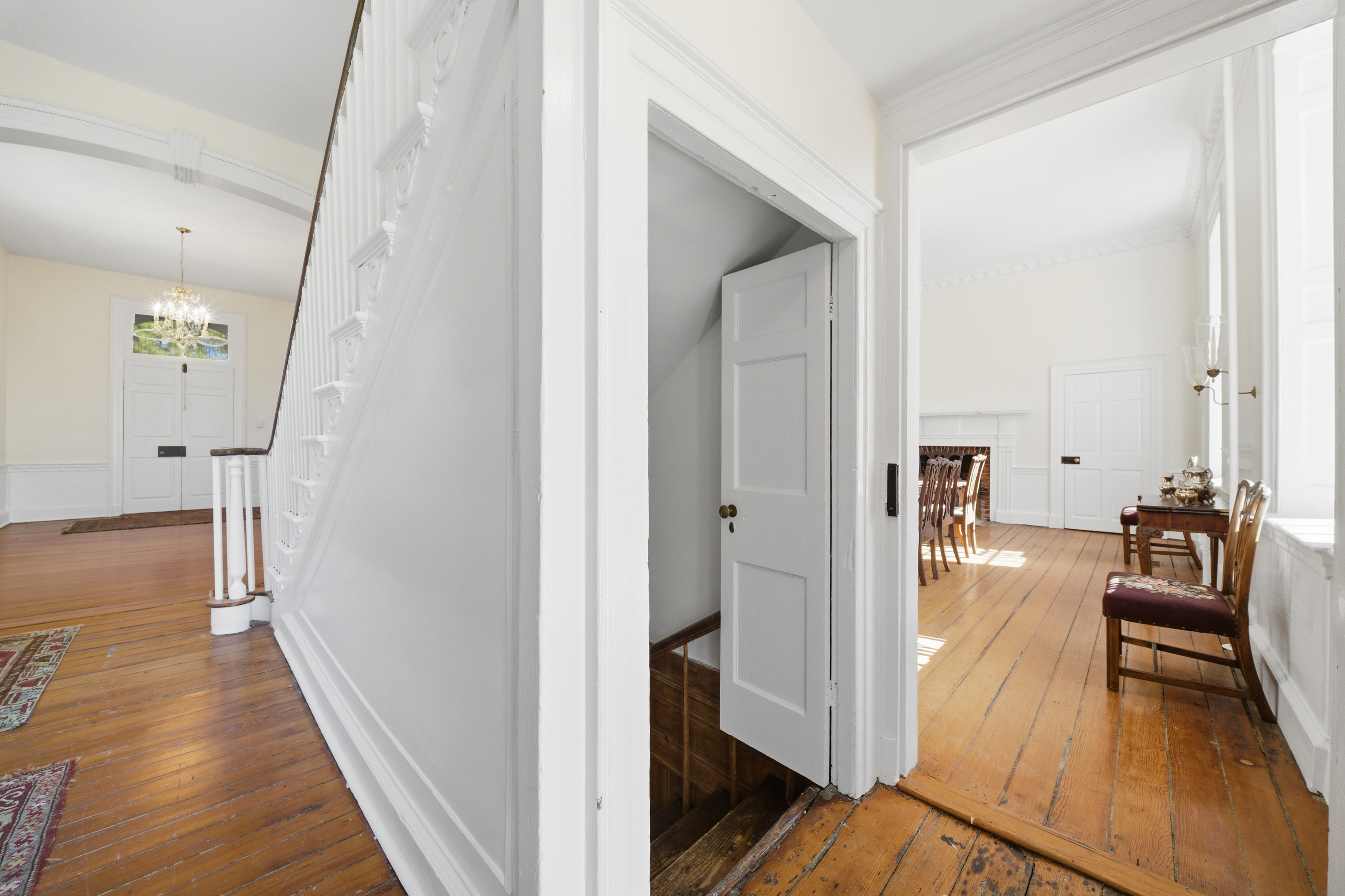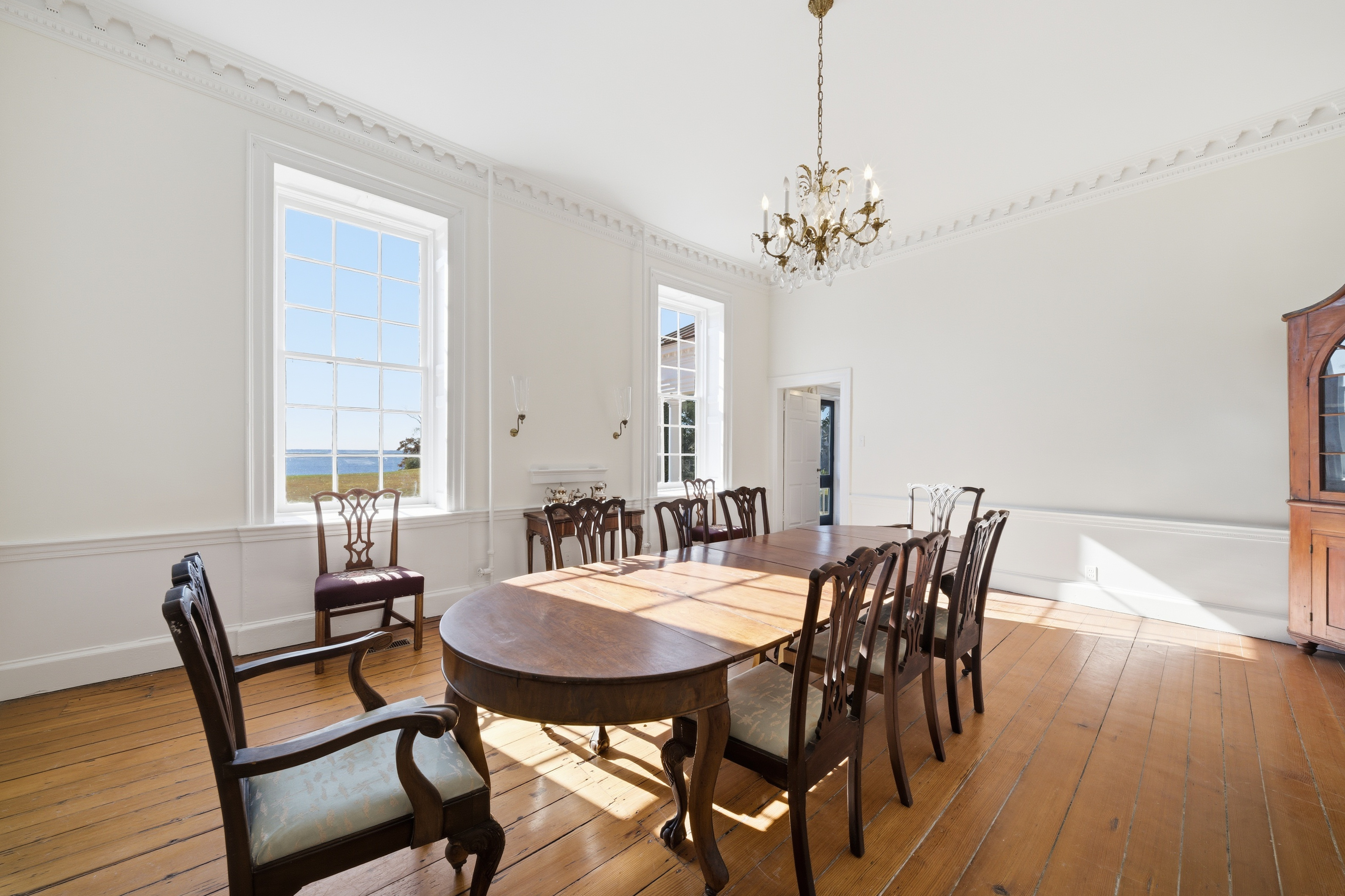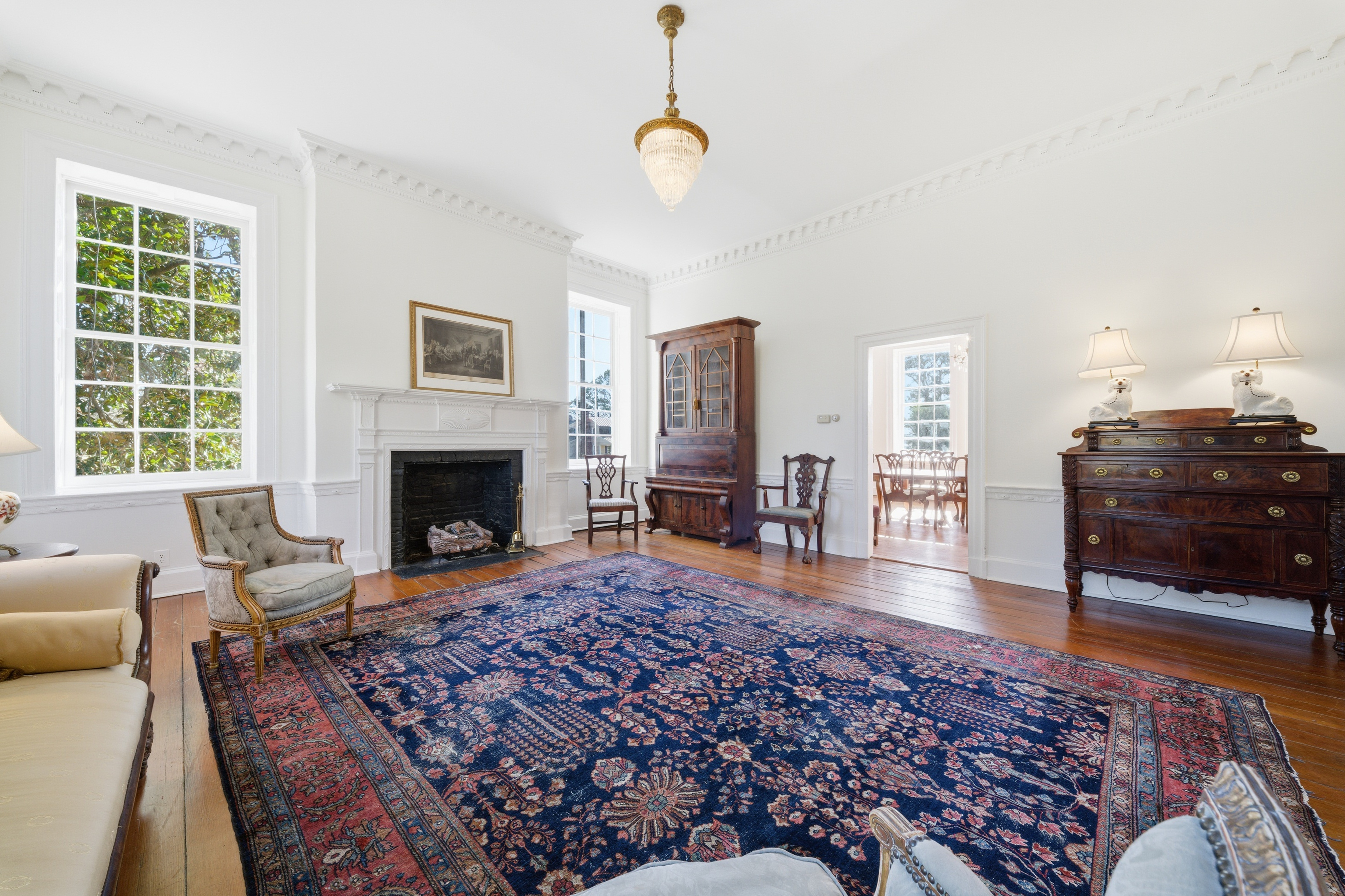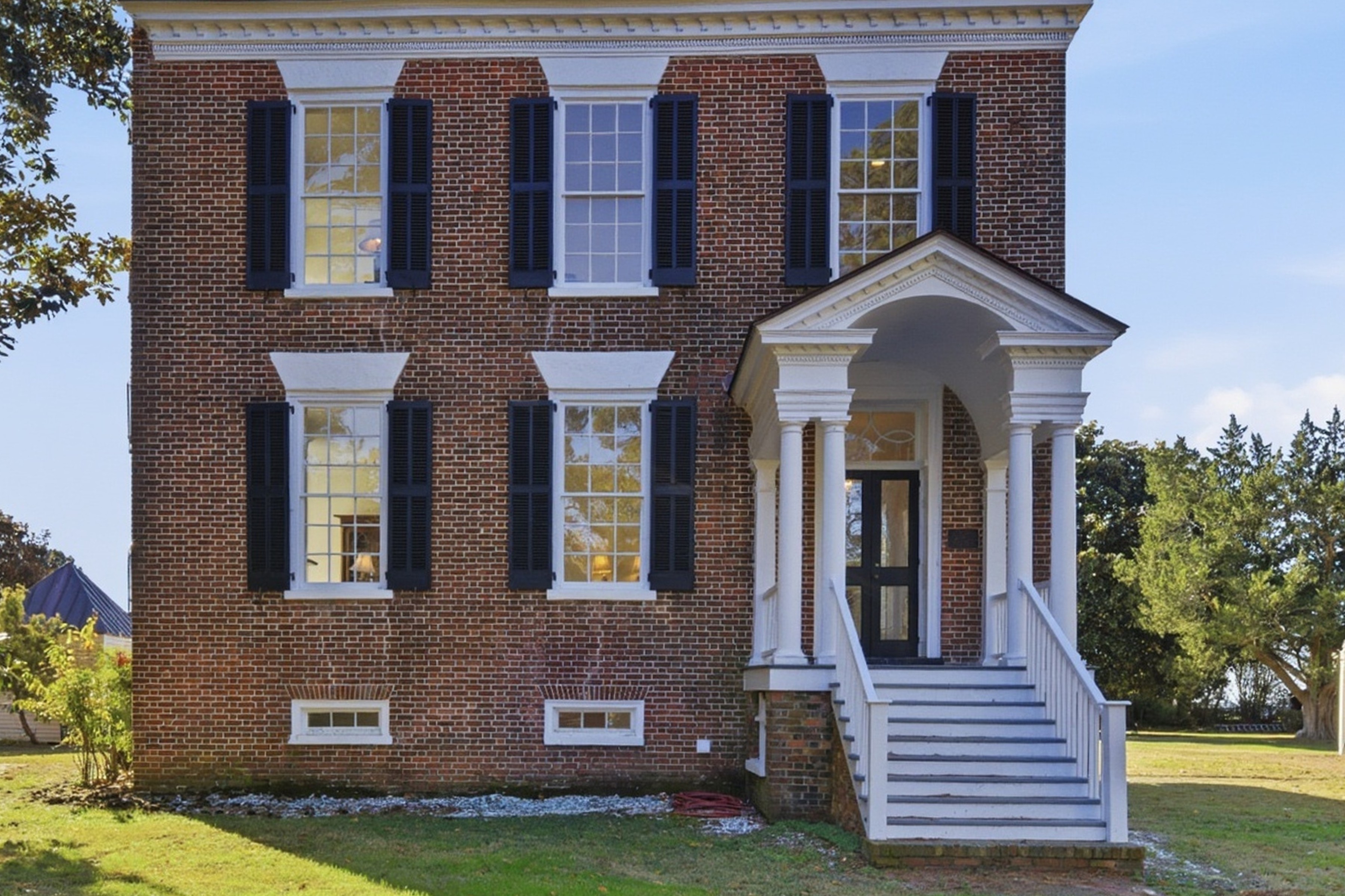 Gracefully positioned along the quiet shores of the Albemarle Sound , Mulberry Hill Plantation is one of the Albemarle region’s most captivating historic estates—an enduring symbol of early American architecture and coastal Carolina heritage. Constructed around 1810 for the Blount family, Mulberry Hill reflects the refined tastes of the early American republic. Its stately brick façade—laid in classic Flemish bond—reveals a balanced three-bay composition and traditional side-hall plan, a design more commonly found in the great coastal homes of the period. Inside, graceful proportions, finely detailed woodwork, and historic craftsmanship evoke an era when architecture was both art and legacy. Tall windows frame sweeping views of the surrounding countryside and the broad expanse of the Albemarle Sound, where shifting light across the water lends a sense of tranquility that has defined this landscape for centuries. Each of the home’s principal rooms and bedrooms is anchored by its own fireplace, a hallmark of early nineteenth-century design that lends warmth, intimacy, and architectural rhythm throughout the home. Recent updates include a new roof, HVAC systems, and beautifully renovated kitchen and bathrooms – ensuring the comforts of contemporary living while preserving the home’s historic character and architectural integrity. Approached through tranquil countryside, flanked by an 18-hole golf course, and framed by mature trees, the estate conveys an immediate sense of arrival. Mulberry Hill’s setting feels timeless—where open land, expansive skies, and the gentle rhythms of rural eastern North Carolina create a rare sense of privacy and permanence. The grounds—once part of a much larger colonial plantation—retain the pastoral character that has shaped the Albemarle region since the earliest days of settlement. Owned by the Wood family for generations, their stewardship legacy speaks to the enduring significance of the home and deep ties between the family and Edenton Community. Listed on the National Register of Historic Places, Mulberry Hill represents an important architectural landmark within Chowan County’s historic landscape. Today, the property offers a remarkable opportunity to steward a piece of North Carolina history while enjoying the tranquility of one of the state’s most charming coastal regions. Just minutes from the waterfront streets, colonial architecture, and vibrant cultural life of Edenton, the estate combines historic distinction with waterfront serenity and proximity to one of the South’s most charming historic towns. Mulberry Hill Plantation is more than a residence—it is a living chapter of the Albemarle region’s past, where nearly two centuries of history, craftsmanship, and Southern character converge along the timeless shores of the Albemarle Sound.