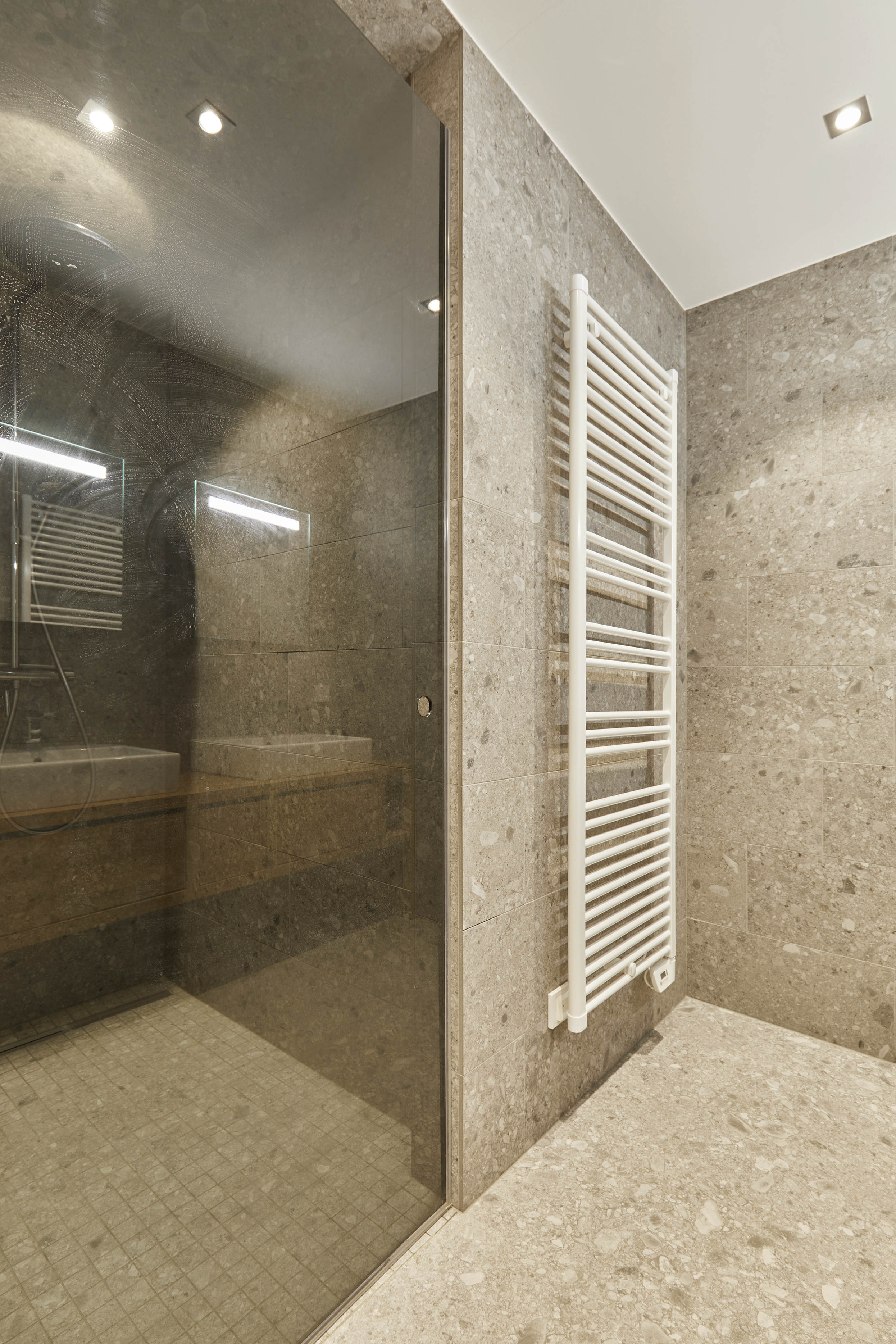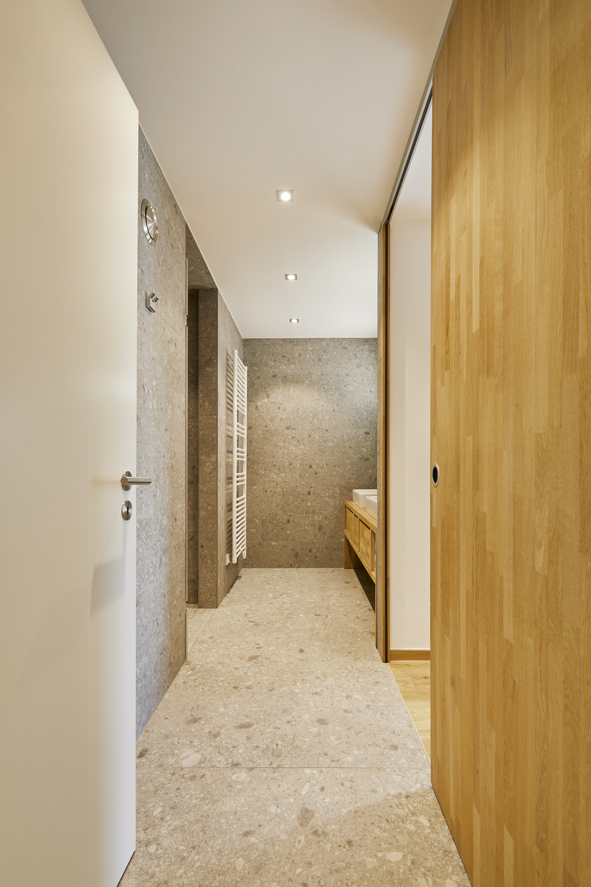 The first suite, located on the first floor, includes a private shower room and a custom-made dressing area.