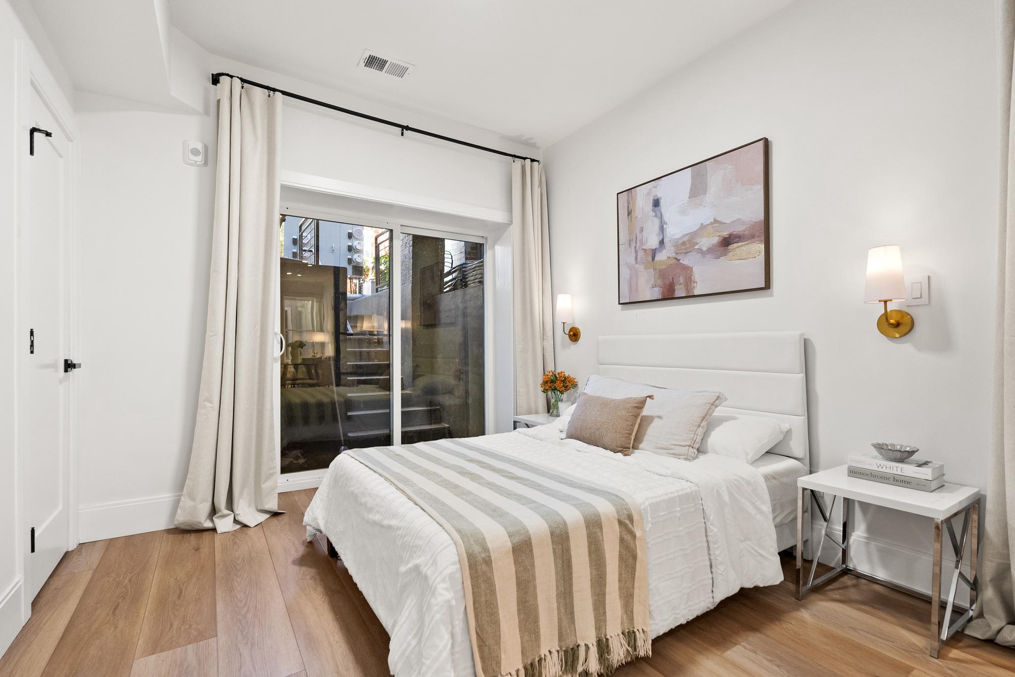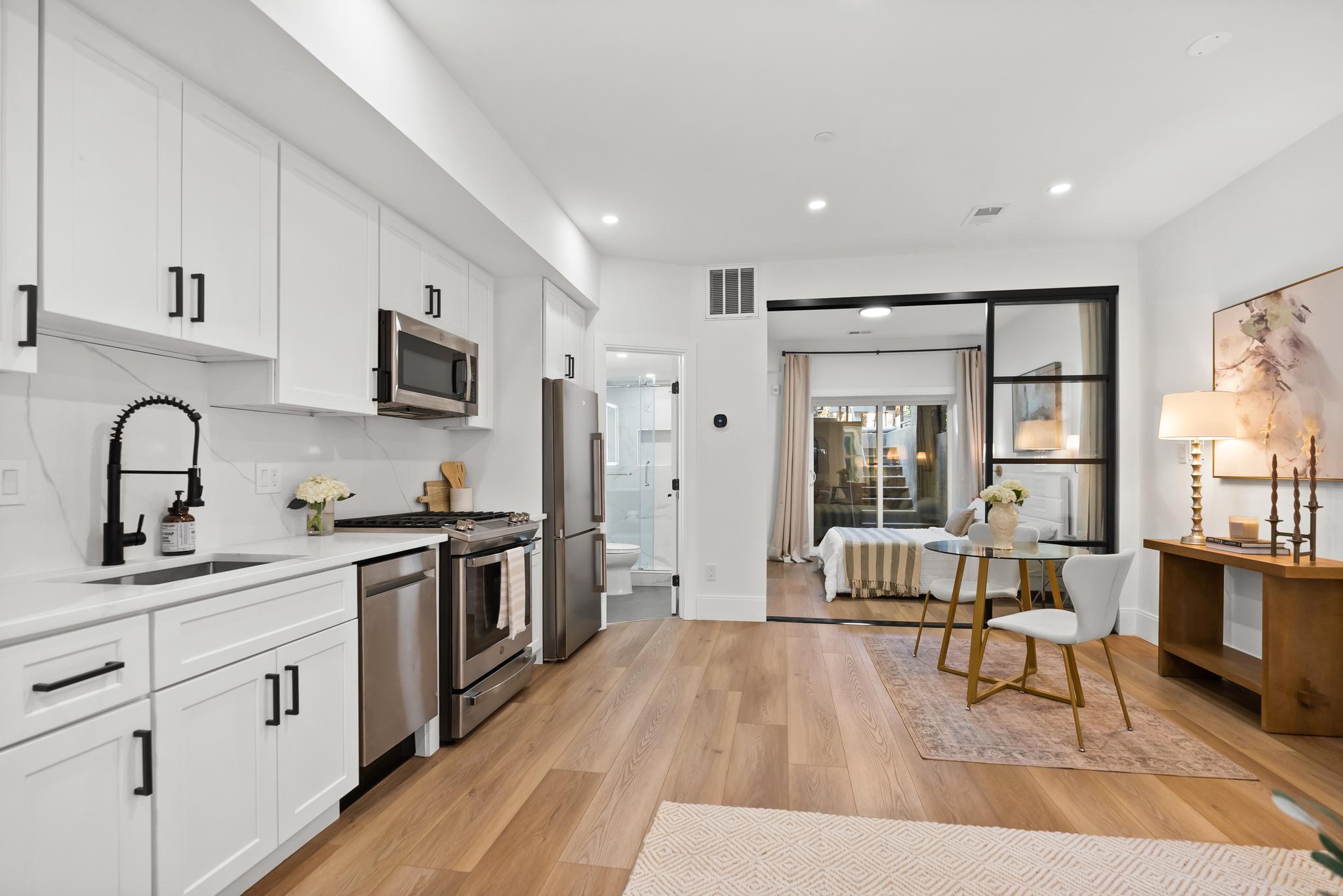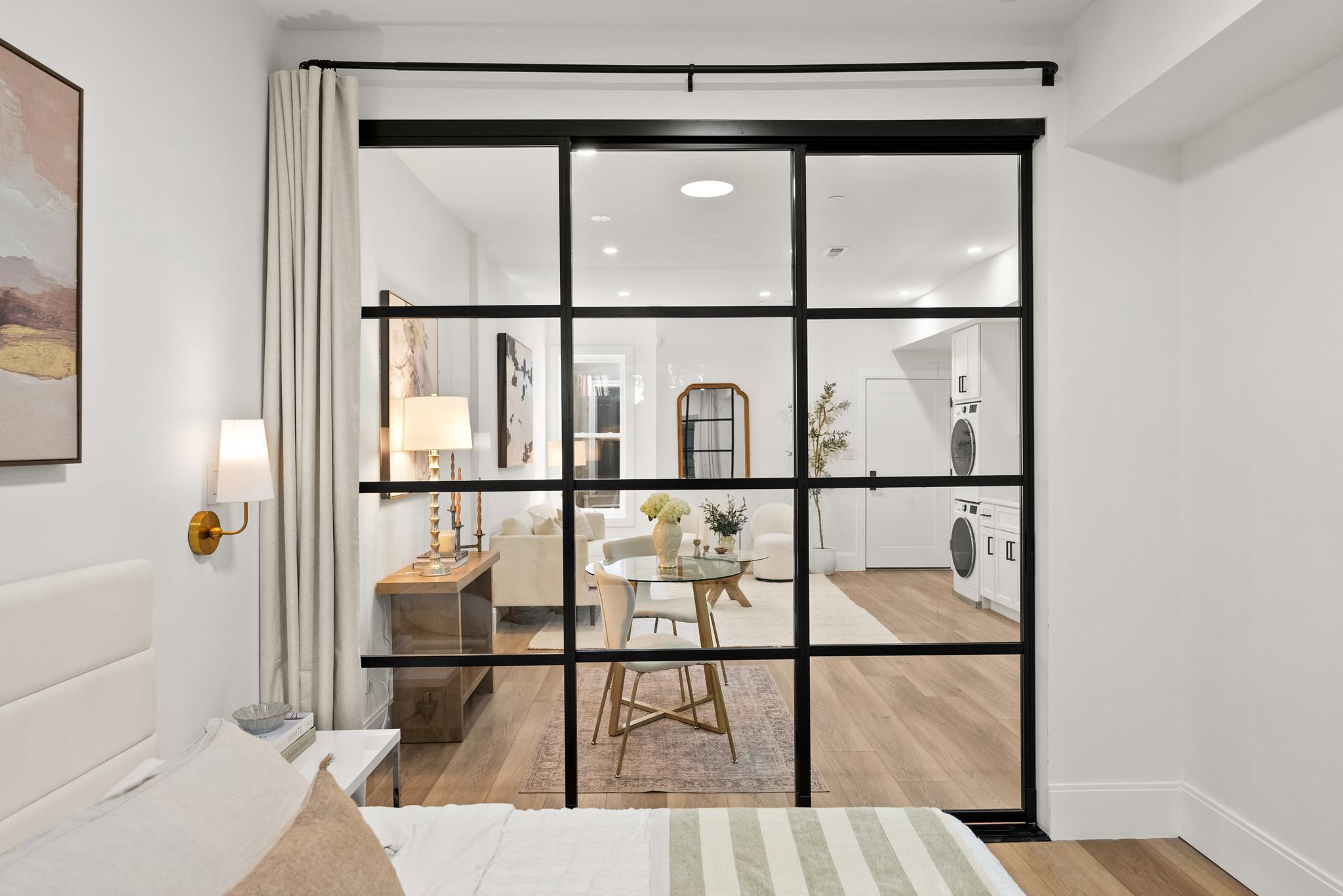Set along one of Adams Morgan's beloved streets, this residence offers a one bedroom, one bathroom layout within an intimate boutique new construction, with the advantage of private street level access through oversized glass doors that open directly to the outside. Inside, the home unfolds with a warm, modern sensibility. Wide plank oak flooring carries throughout, while an open living and dining area connects seamlessly to a sleek kitchen finished with quartz countertops, Delta touchless fixtures, and a full suite of GE and LG appliances. A black framed glass partition with floor to ceiling curtains defines the sleeping area, creating separation while allowing light to move freely across the home. A stacked LG washer and dryer is thoughtfully integrated, while the bathroom offers a quieter, more serene moment with spa inspired tilework and a soft, considered palette. The location feels both vibrant and grounded, steps from Meridian Hill Park, and The LINE Hotel DC, with a natural rhythm of restaurants, cafés, and fitness studios such as Solidcore just outside your door. Commuting feels seamless with metrobus, capital bikeshare, and nearby access to the Columbia Heights Metro Station (green and yellow lines) and Woodley Park Metro Station (red line). This residence pairs modern design with a sought after location, offering a refined place to call home.