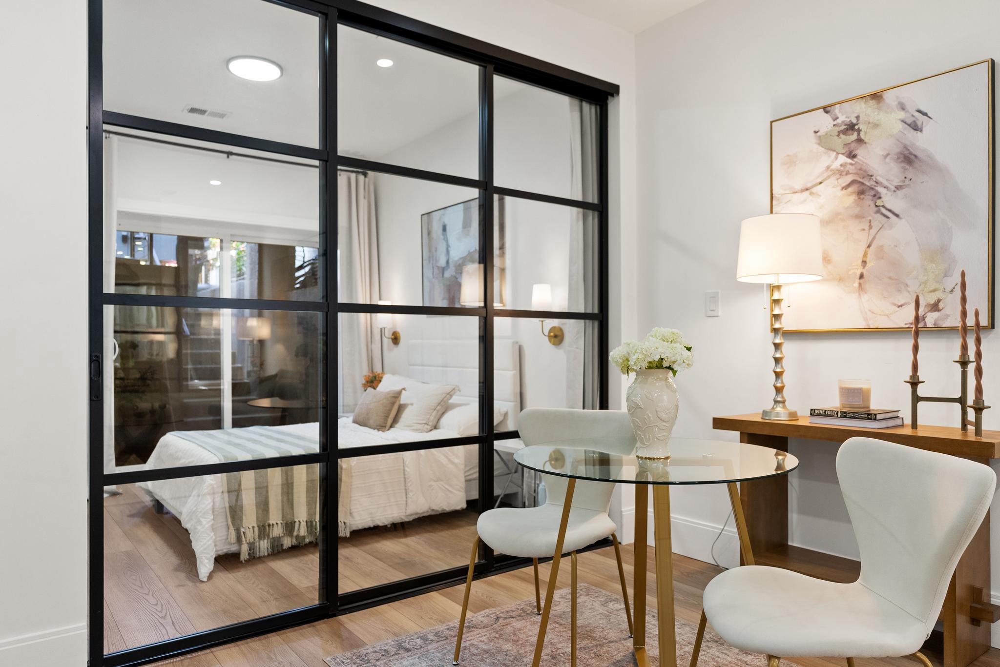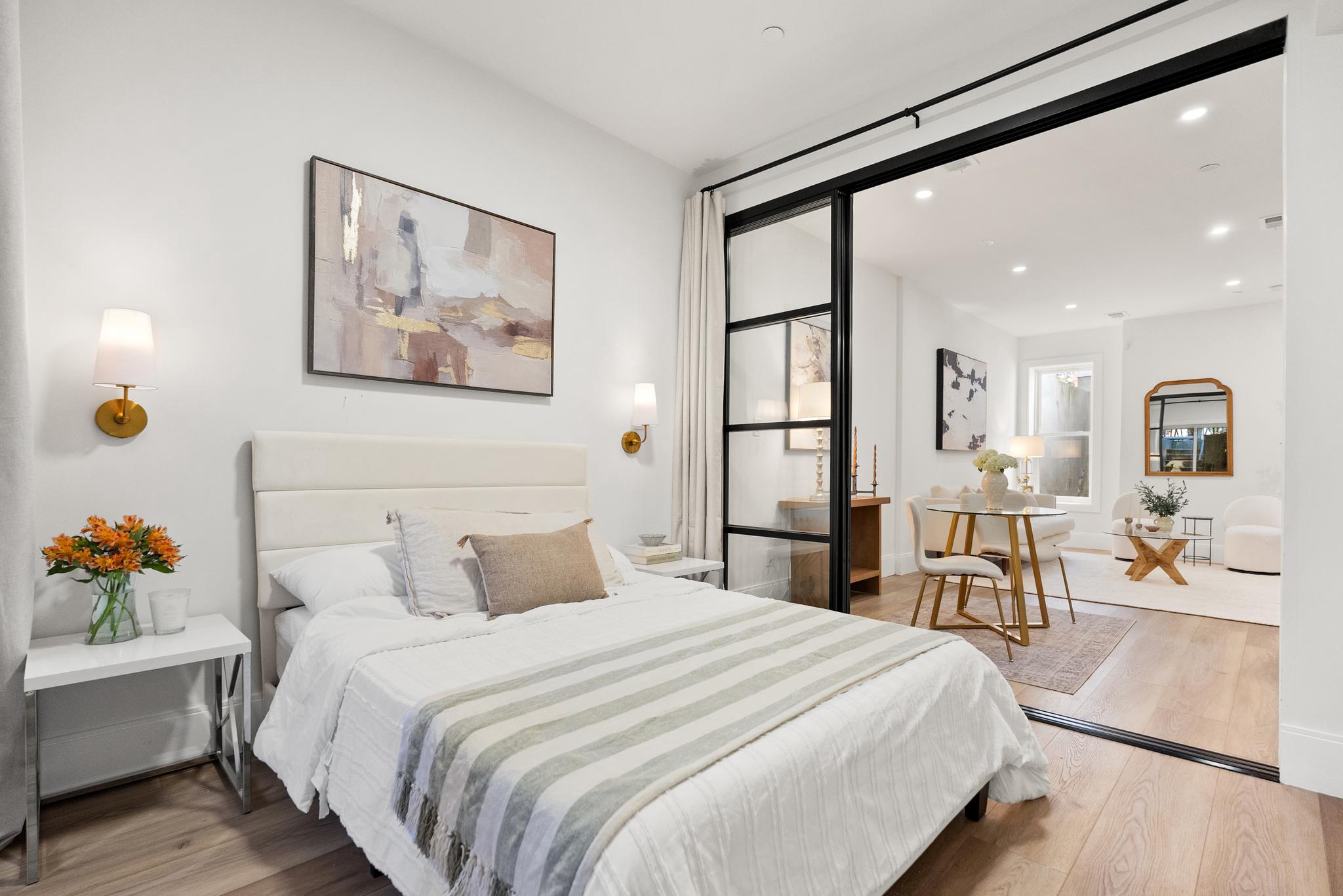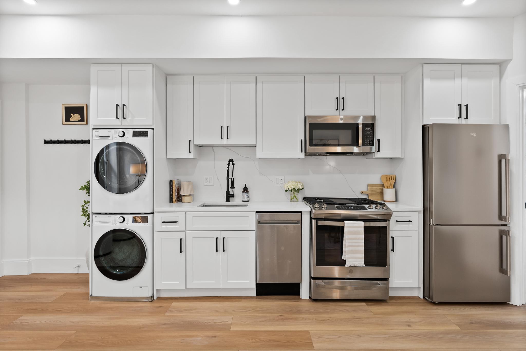 Set along one of Adams Morgan's beloved streets, this residence offers a one bedroom, one bathroom layout within an intimate boutique new construction, with the advantage of private street level access through oversized glass doors that open directly to the outside. Inside, the home unfolds with a warm, modern sensibility. Wide plank oak flooring carries throughout, while an open living and dining area connects seamlessly to a sleek kitchen finished with quartz countertops, Delta touchless fixtures, and a full suite of GE and LG appliances. A black framed glass partition with floor to ceiling curtains defines the sleeping area, creating separation while allowing light to move freely across the home. A stacked LG washer and dryer is thoughtfully integrated, while the bathroom offers a quieter, more serene moment with spa inspired tilework and a soft, considered palette. The location feels both vibrant and grounded, steps from Meridian Hill Park, and The LINE Hotel DC, with a natural rhythm of restaurants, cafés, and fitness studios such as Solidcore just outside your door. Commuting feels seamless with metrobus, capital bikeshare, and nearby access to the Columbia Heights Metro Station (green and yellow lines) and Woodley Park Metro Station (red line). This residence pairs modern design with a sought after location, offering a refined place to call home.