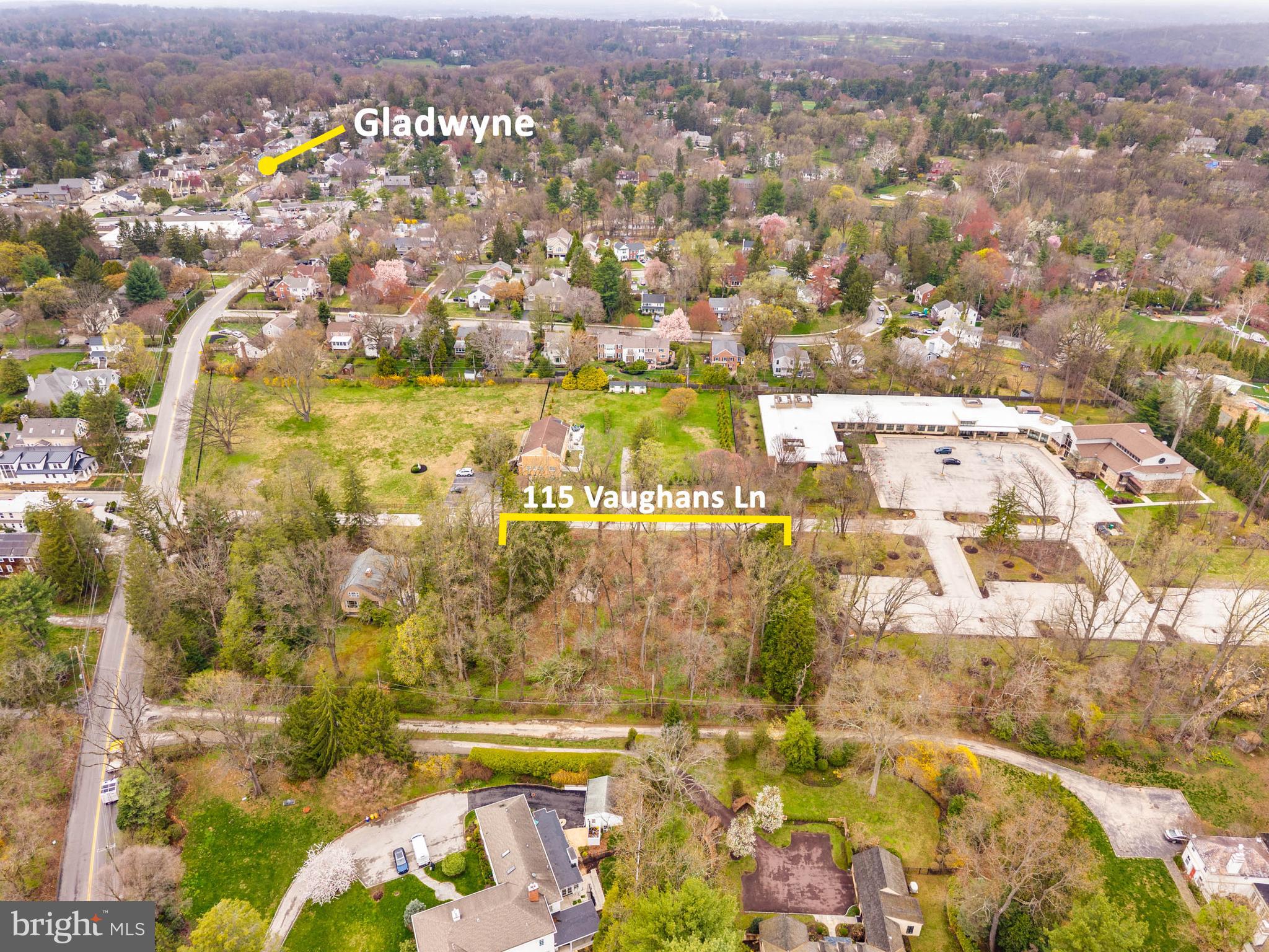 This is a remarkable opportunity in Gladwyne, Lower Merion Township. 115 Vaughans Lane is a 1.08 acre flat lot in Gladwyne, easily walkable to the shops, schools, library, playground and all that the village of Gladwyne has to offer. The lot is flat with trees and mature plantings and shrubbery as well as a garden shed. According to Lower Merion Township, there is public sewer available on Vaughans Lane. Lots like this are rarely available in such a special location. This property is close to the Bridlewild Trails for hiking throughout Gladwyne. The location provides convenient access to the Schuylkill Expressway, 476, PA Turnpike for commuting to center city, Conshohocken, or beyond. Property lines on photos are estimated, buyers to do their own due diligence regarding property boundaries.