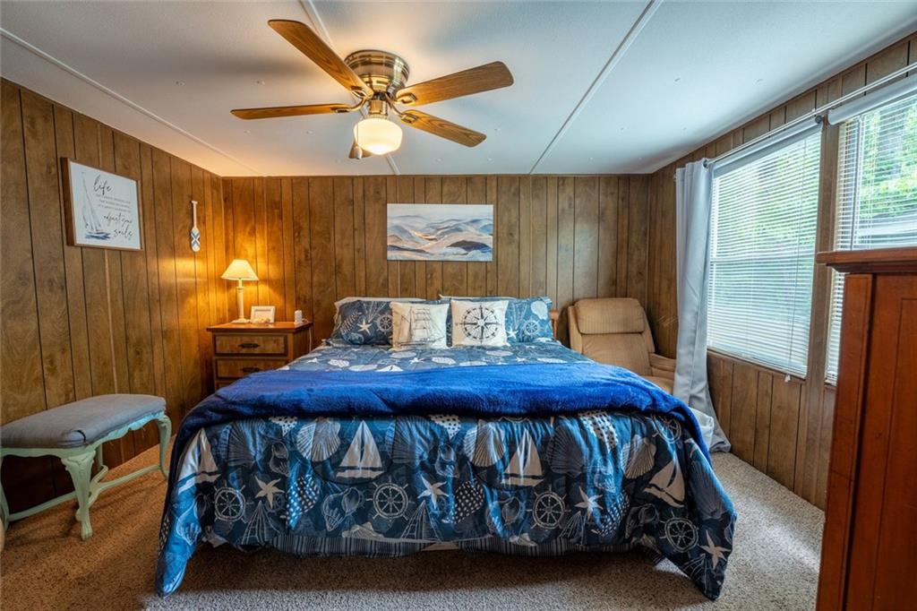 Welcome to your lakeside escape! This cozy, well-maintained mobile home is nestled in a serene gated-lake community, offering stunning seasonal views, peaceful surroundings, and endless recreational opportunities. Situated just steps away from the shimmering waters of Lake Sidney Lanier, enjoy fishing, boating, kayaking, paddleboarding, or simply relaxing by the shore. The community features a clubhouse, picnic tables, tennis courts, a community dock with boat slips, and organized events for residents. This home features 3 bedrooms with spacious closets, providing plenty of space for family or guests, 2 full bathrooms with modern fixtures, a fully equipped kitchen with updated appliances and a gorgeous butcher's block countertop. Enjoy morning coffee or evening sunsets on the expansive deck area. Your move-in process has been simplified with fresh paint throughout, clean carpets, newer plumbing, newer roof, and newer electrical work, you can instantly start enjoying everything this home has to offer. This property includes an outbuilding for golf cart storage and a camper storage unit. There is ample parking space for multiple vehicles or a boat. Take advantage of this rare opportunity to be part of a vibrant lake community at an affordable price. It is conveniently located with just a short drive to Murrayville, Dawsonville, Dahlonega, and downtown Gainesville. Don't miss out on making this your peaceful retreat by the water! Whether you're seeking a weekend getaway or a permanent residence, this home provides the perfect balance of comfort and outdoor adventure. Schedule your tour today!