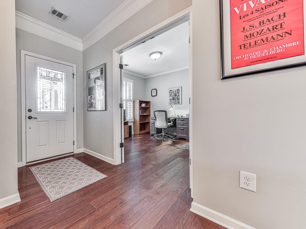 Welcome to the Pansy/Indigo model at Soleil Laurel Canyon! An azalea bush lined walkway leads to decorative concrete private front porch. This 2 bedroom 2 bath home with office is just the right amount of space! Office equipped with double doors for privacy and plantation shutters. Hardwoods throughout except sleeping quarters. Guest bedroom is ample space with attic storage access. Guest bath outfitted with quartz countertops, ceramic tile, and bath/shower combo. Open concept living and dining space with added bonus of additional bump out interior sun room with plantation shuttters! Stone, gas fireplace will be the star of the show on crisp nights! Kitchen area has quartz counters, electric range, black appliances, and sun filled eat in kitchen! Primary suite is full of natural light and has two separate closets, each with built in shelving. Owners bath has soaking tub, as well as, shower with extra wide bench, grab bar, and cubby for those shower essentials! Double sinks with make up area for seating. Back patio with covered pergola is the perfect background to enjoy the private, flat backyard. Additional perk, home is equipped with Radon mitigation system for ease of mind. Soleil Laurel Canyon has so much to offer, including 24 hour manned gate, clubhouse with library, billiards, indoor-outdoor pools/sauna, garden plots and greenhouse, tennis and pickleball, copious amounts of clubs will always keep you social and engaged. Truly, a remarkable lifestyle close to shopping, restaurants, and state of the art medical facilities!