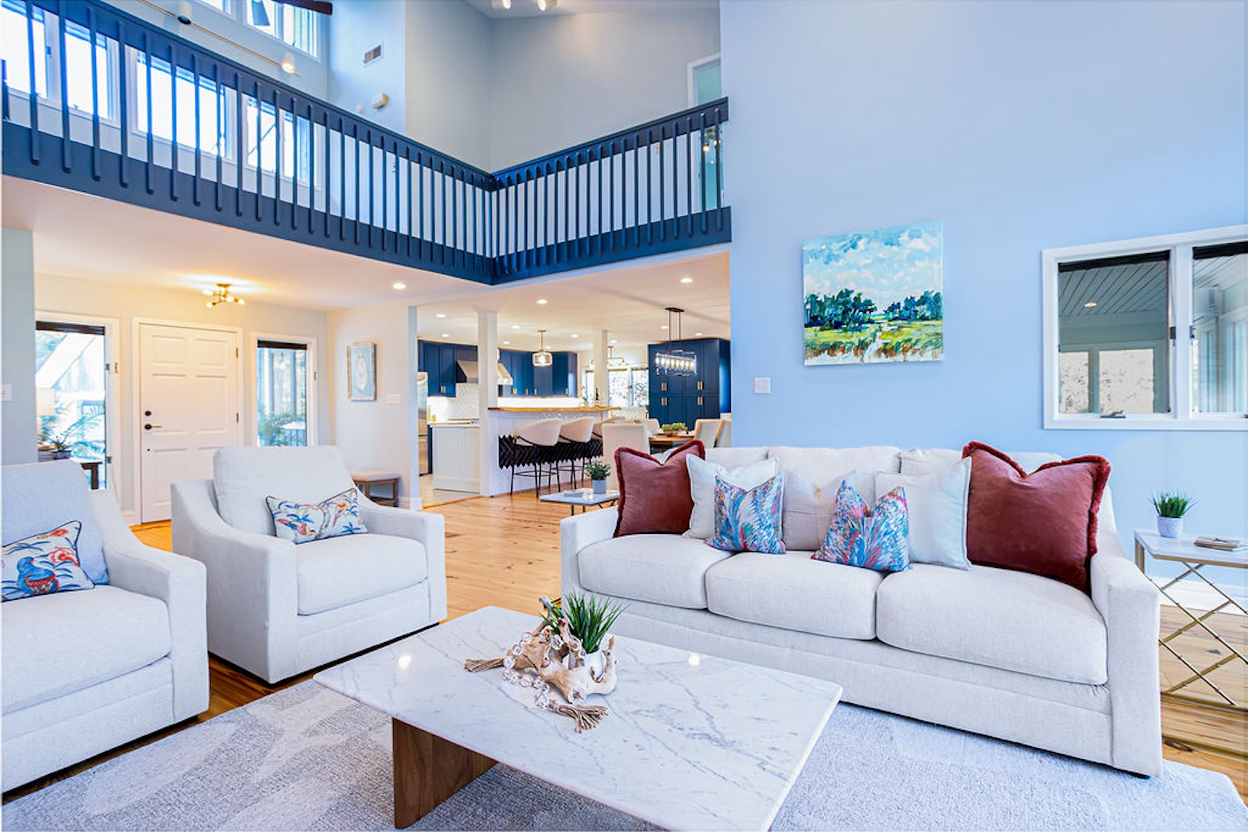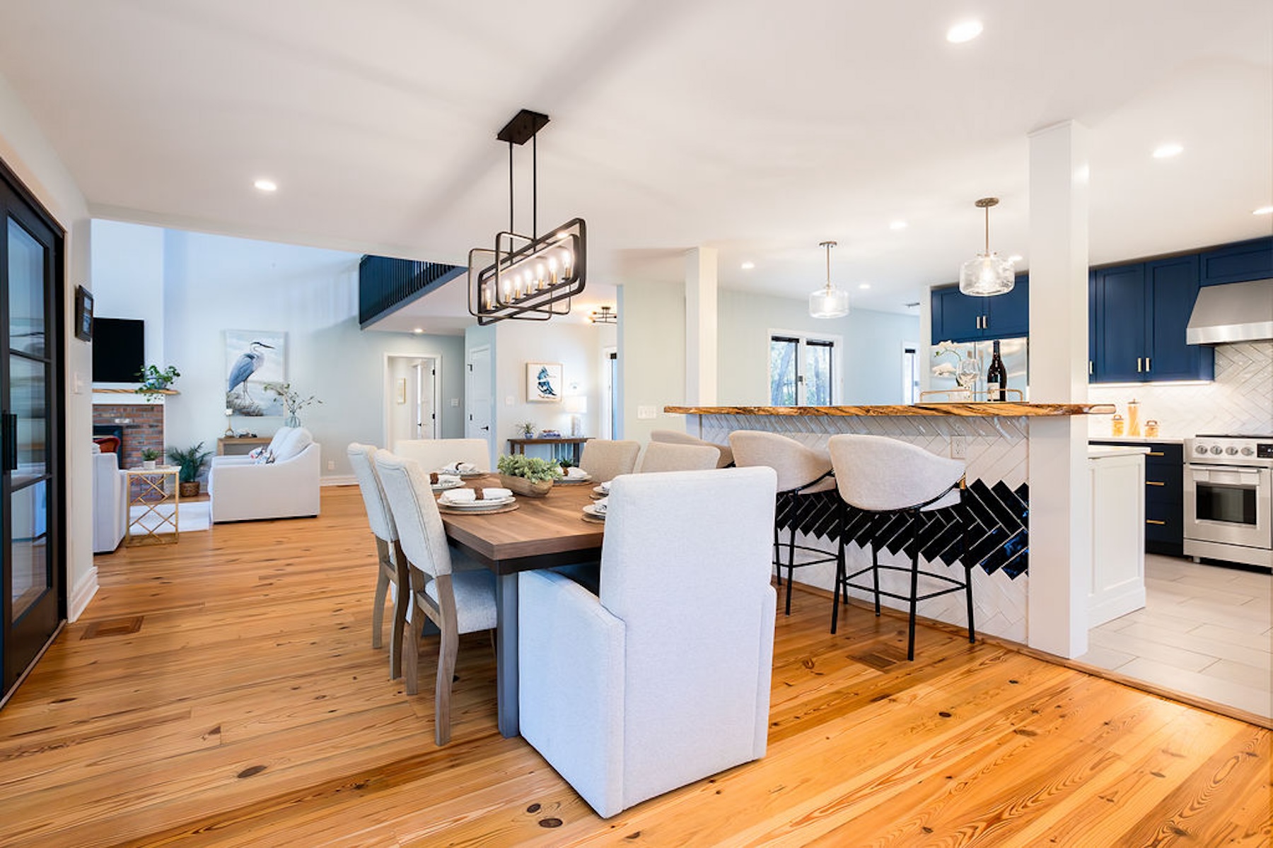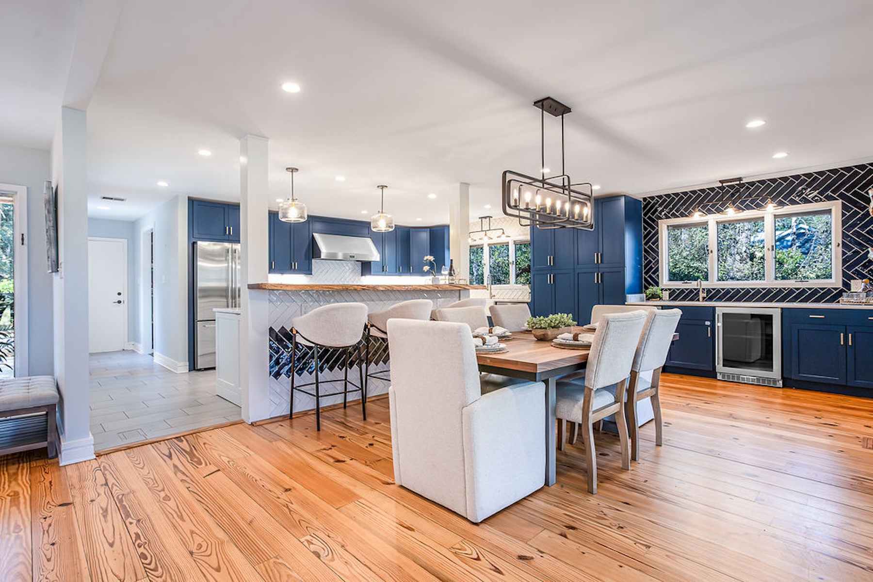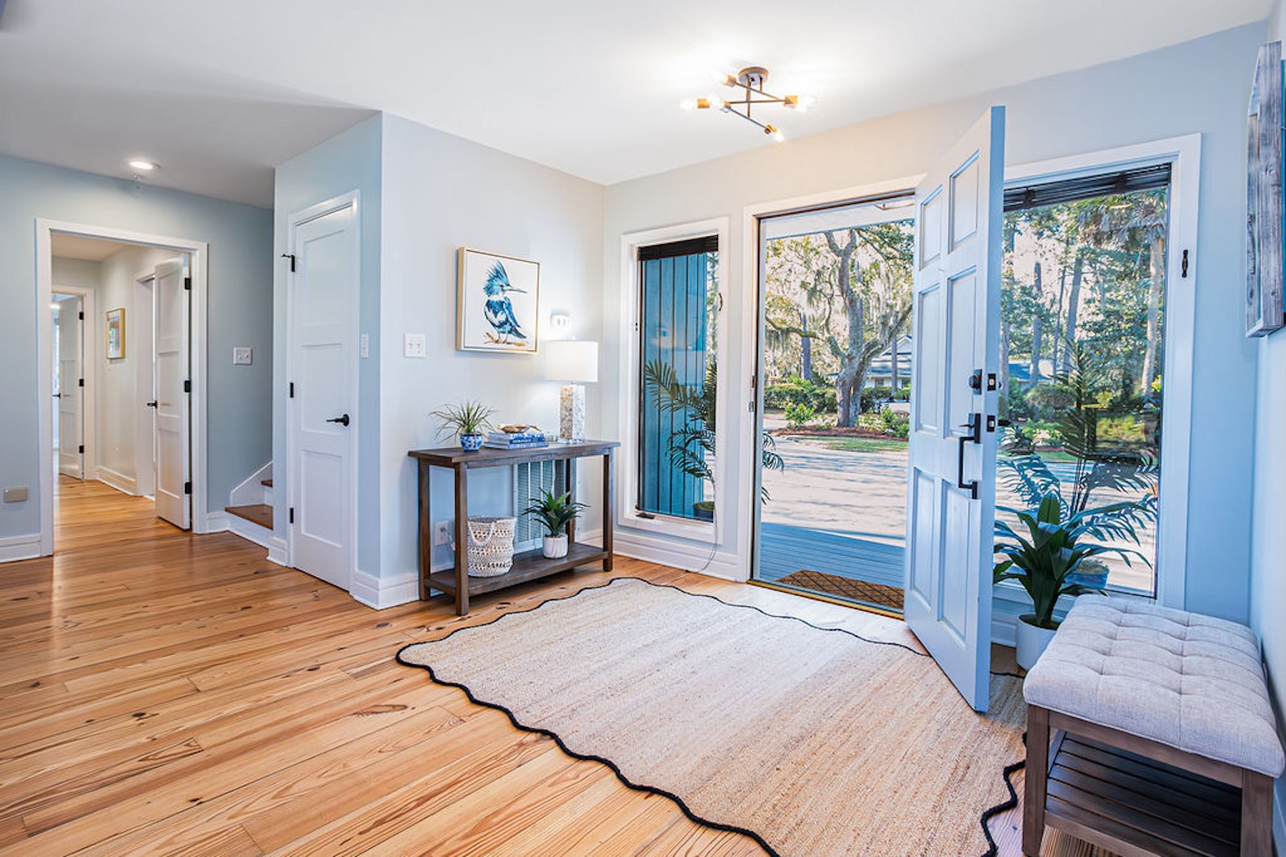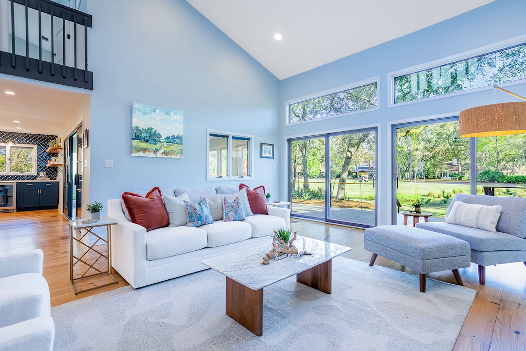 Double lot premium, move-in ready Landings home recently remodeled by Josh Waters Building & Design. The residence sits on over a half-acre of John Glenn landscaped property with quiet views of #2 Terrapin Point tee box & lagoon. A Monaco paved driveway circles the entry to an art deco homesite surrounded by ancient live oaks. The floorplan features heart pine floors throughout a renovated main floor with new kitchen & wet bar, laundry, 1.5 bathrooms, bedroom and oversized primary suite. Kitchen highlights include ceiling height backsplash tile, 48” Fulgor gas range, warming oven, Monogram refrigerator, marble & red oak tops & custom cabinetry; ensuite highlights include walk-in steam shower, standalone tub, Marsh brand double vanity and walk-in closet with quartzite topped island. 2 additional ensuite bedrooms upstairs complete the floor plan. A sunroom and 2 Timbertech laced porches (covered & non) extend hospitality space with views. All major home maintenance (roof, HVAC, 2 tankless gas water heaters, encapsulated crawlspace, paint) and bonuses (landscape lighting, irrigation, well) are new. Within the gated Landings community, the location provides daily lifestyle opportunities: 5 minute golf cart ride to Palmetto club for dining & club sports or to Delegal Marina and the iconic Intercoastal Waterways.