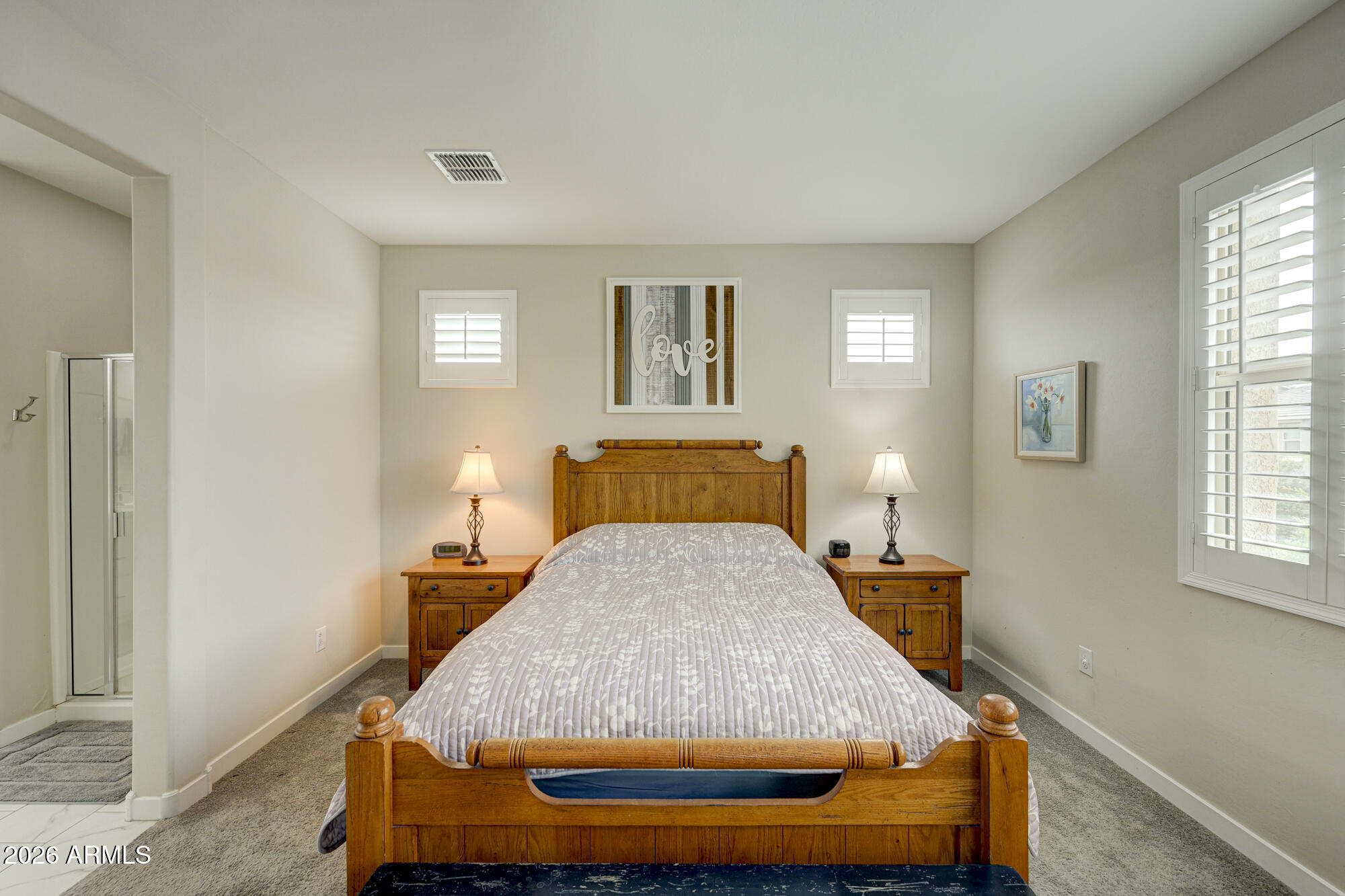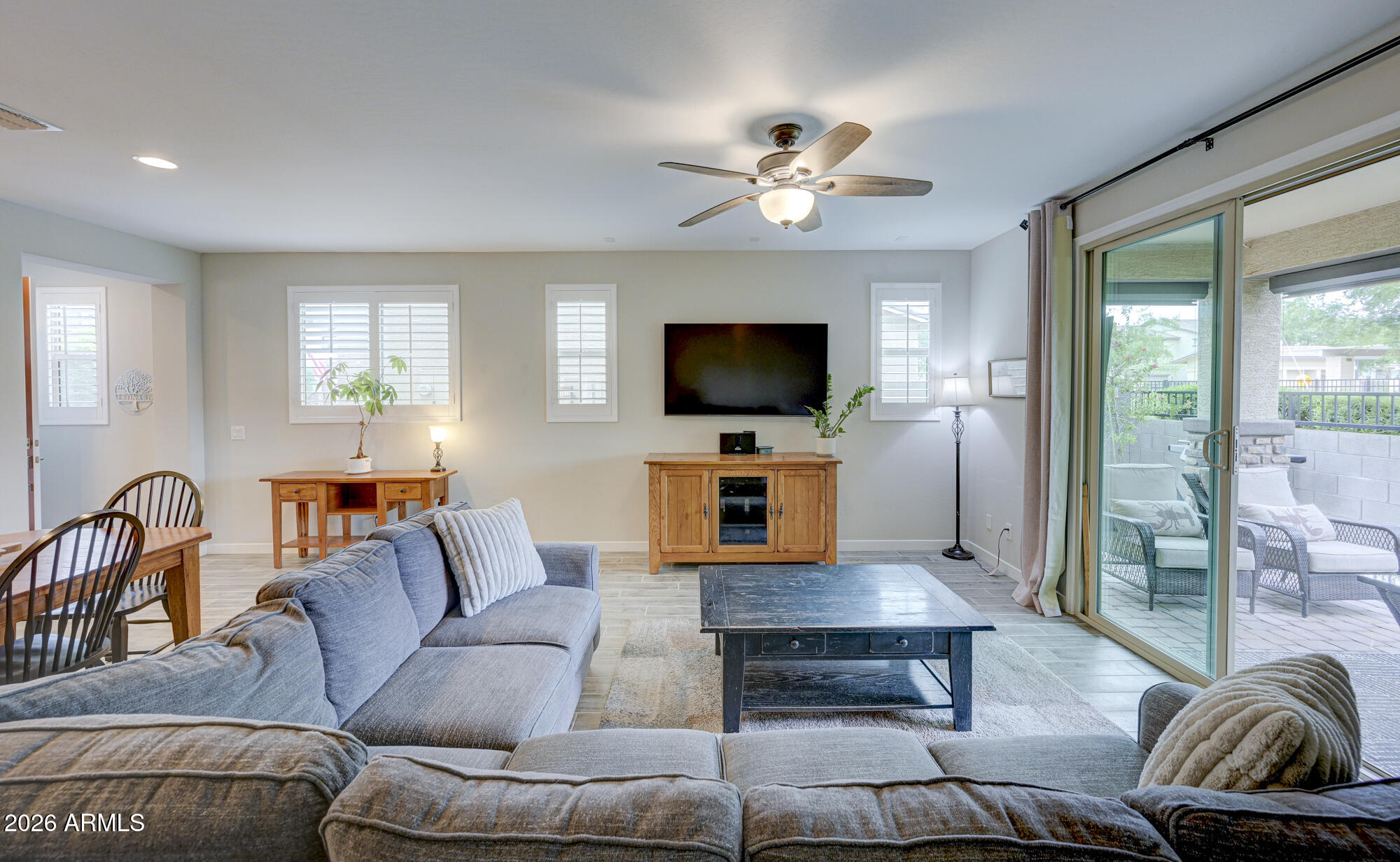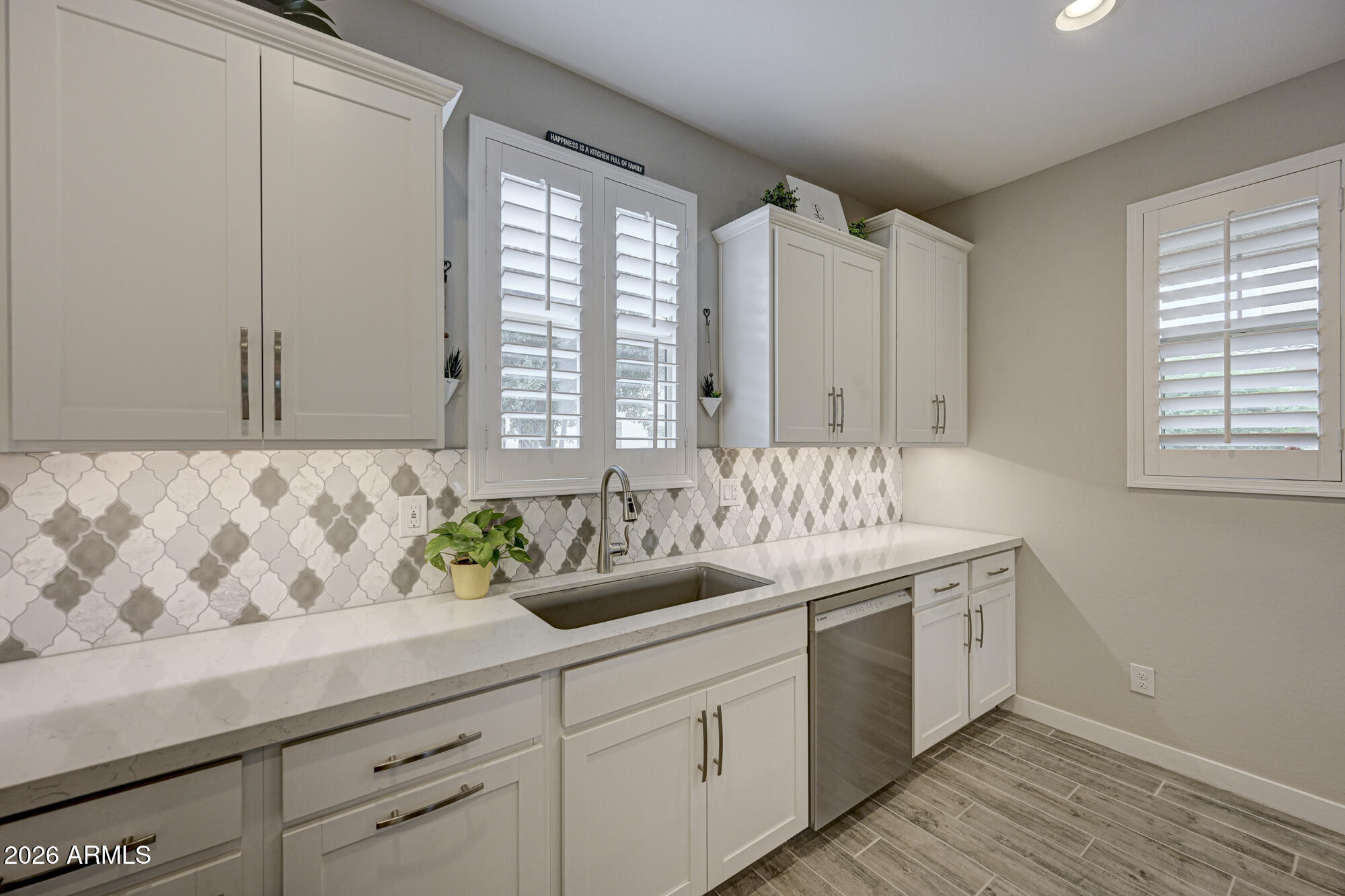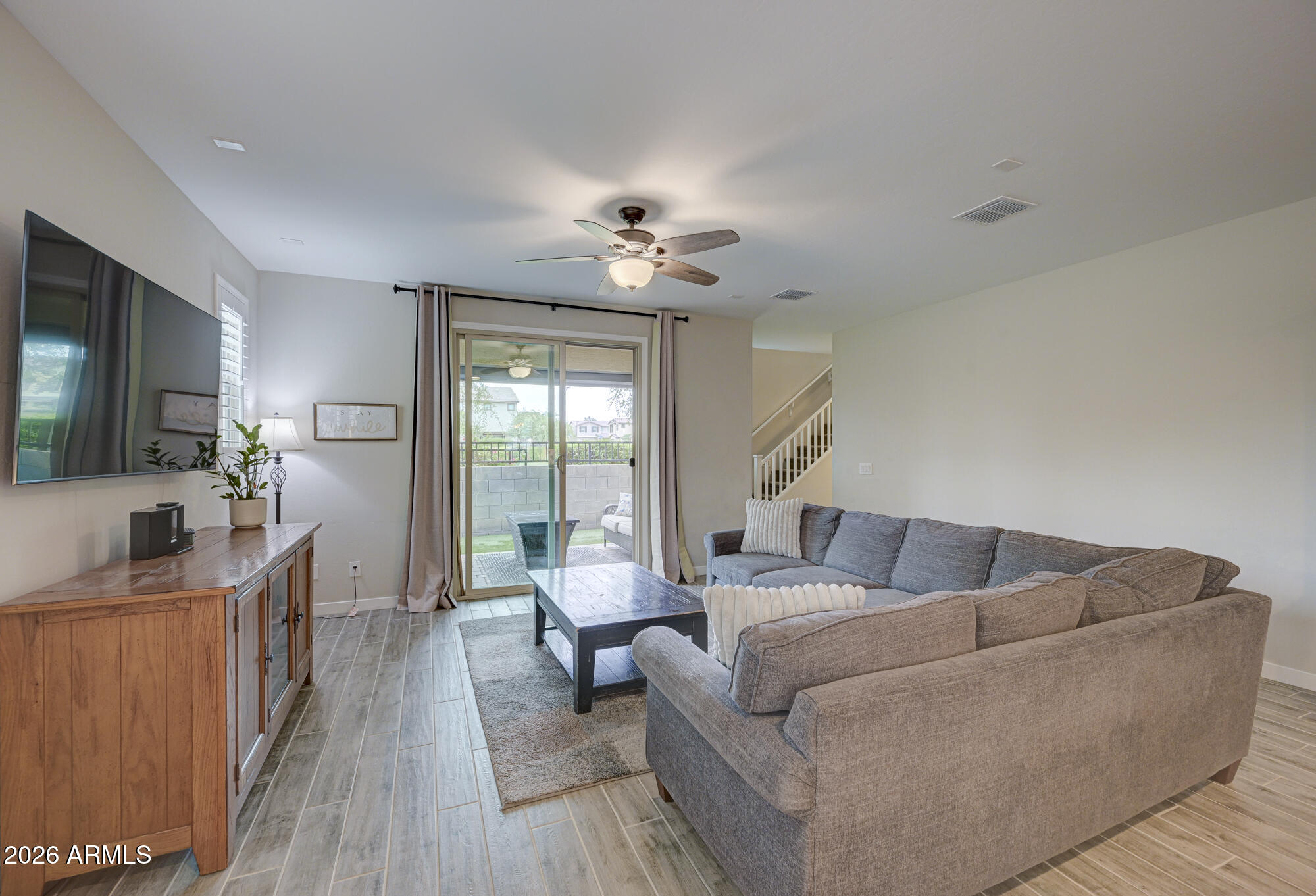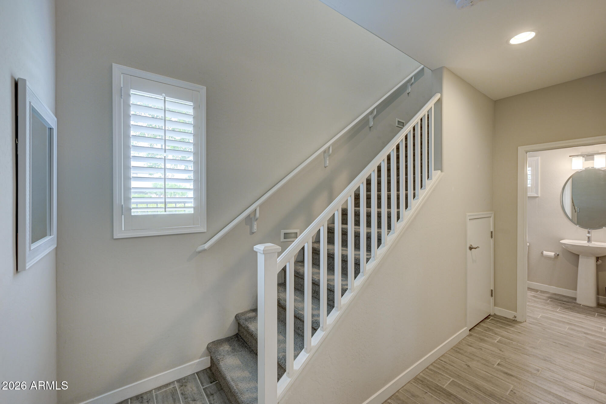 The open-concept layout allows the kitchen to flow gracefully into the living room perfect for refined entertaining and relaxed living. The main level is enhanced by rich wood-look plank tile flooring and elegant plantation shutters throughout.Upstairs, you'll find 4 generously sized bedrooms, 2 bathrooms, and a thoughtfully designed laundry room with custom cabinetry. The owner's suite is elevated with a generous walk-in closet, separate tub/shower, and a dual vanity. Spacious secondary bedrooms offer comfort and functionality, each complete with ample closet space.Step outside to a private paver patio with view fencing overlooking open green space. Low-maintenance turf and an automatic shade create the perfect blend of comfort, privacy, and outdoor enjoyment.Residents of Tavera South enjoy a low-maintenance lifestyle with exclusive access to private amenities, including a pool and spa, ramada, and tot lot--all within a secure and peaceful gated setting.Ideally located near top-rated schools, recreation, and dining, with easy access to major freeways, this home offers the perfect balance of luxury, comfort, and convenience.