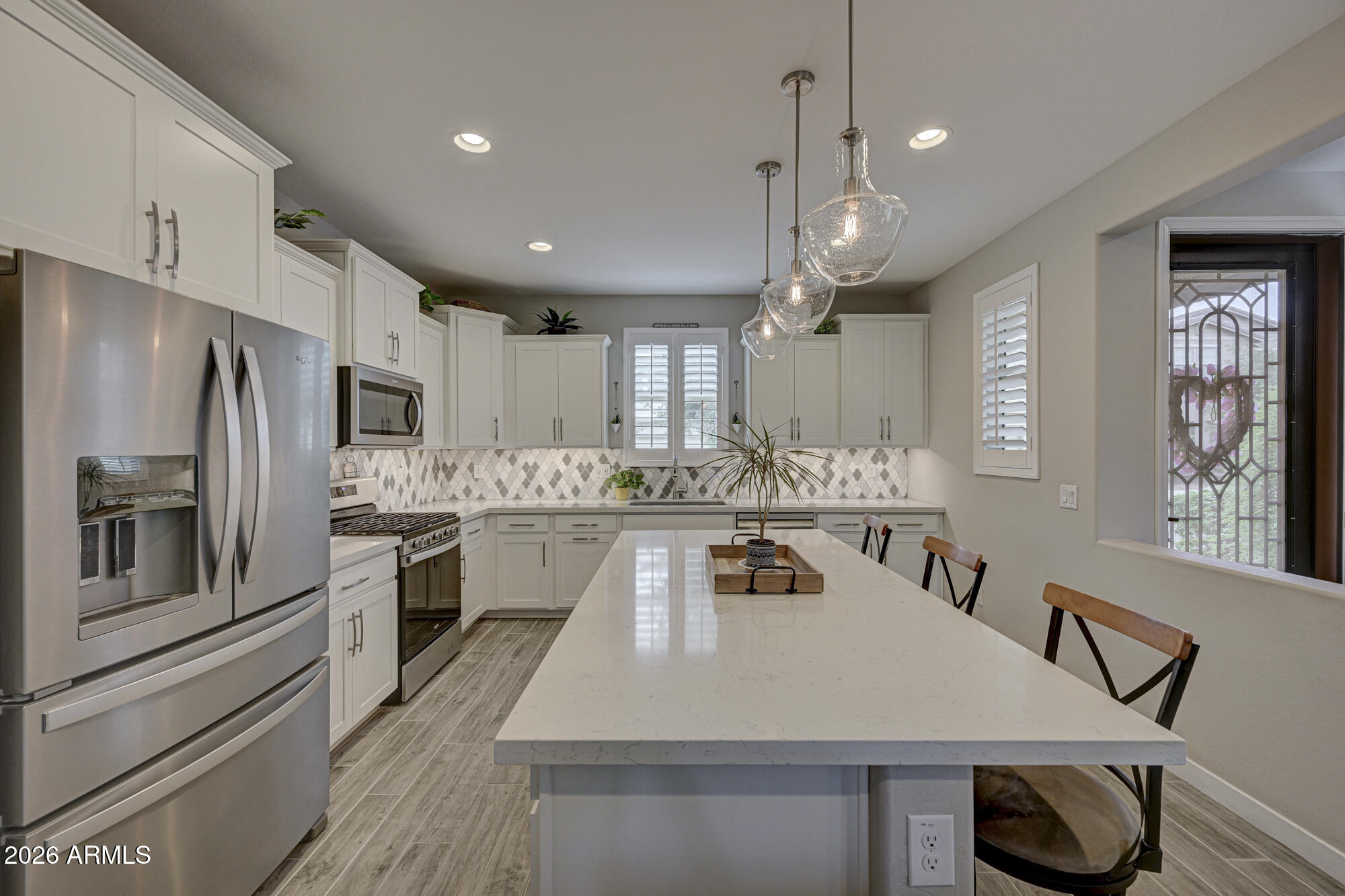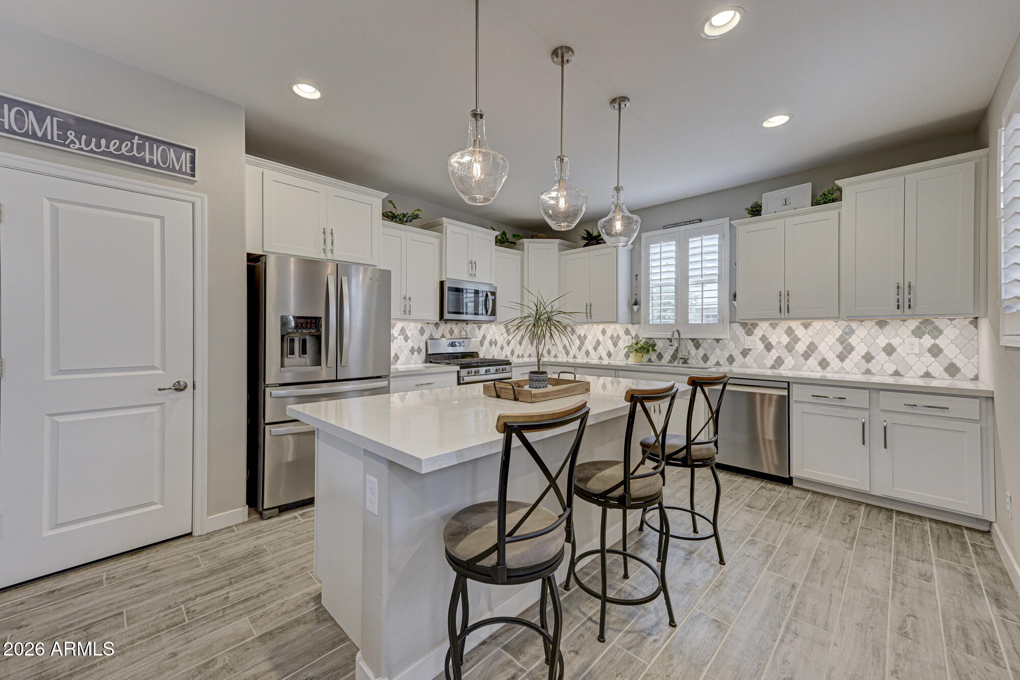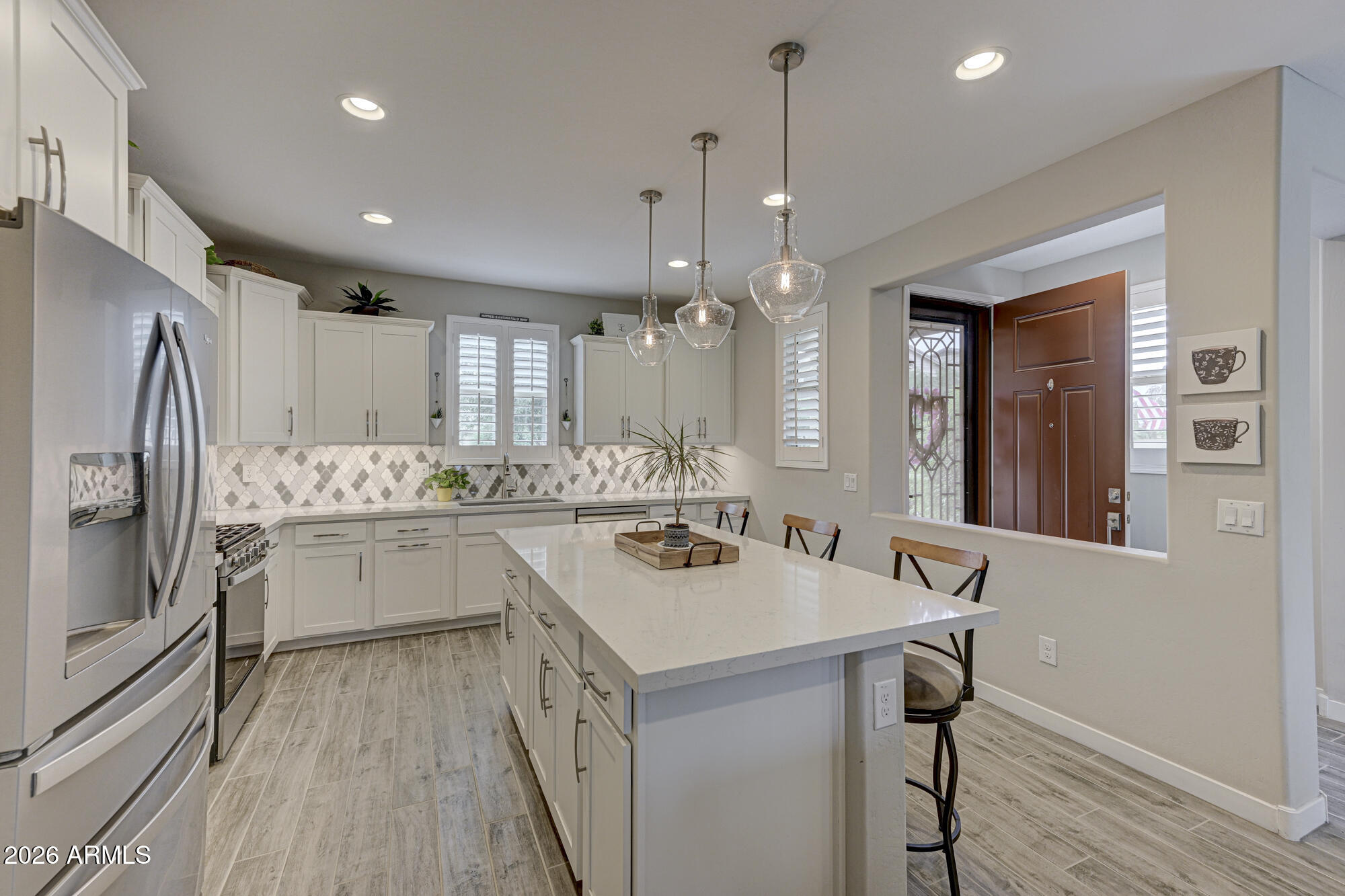 Step inside to an open and inviting floor plan thoughtfully designed for modern living. At the heart of the home is a chef-inspired kitchen featuring a large quartz island, elegant shaker cabinetry, stainless steel appliances, and designer backsplash. A soft, neutral palette enhances the space, creating a clean and timeless aesthetic.