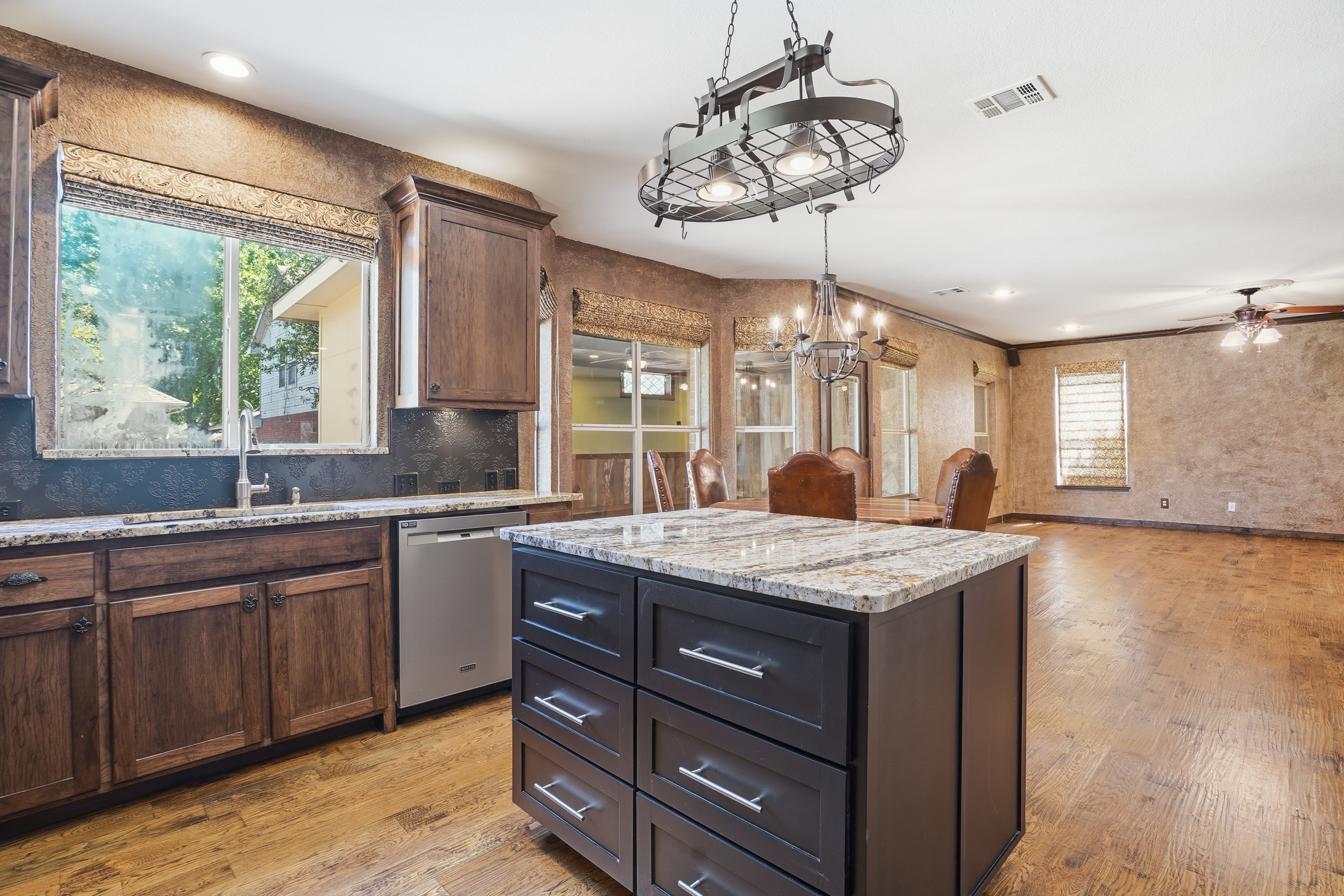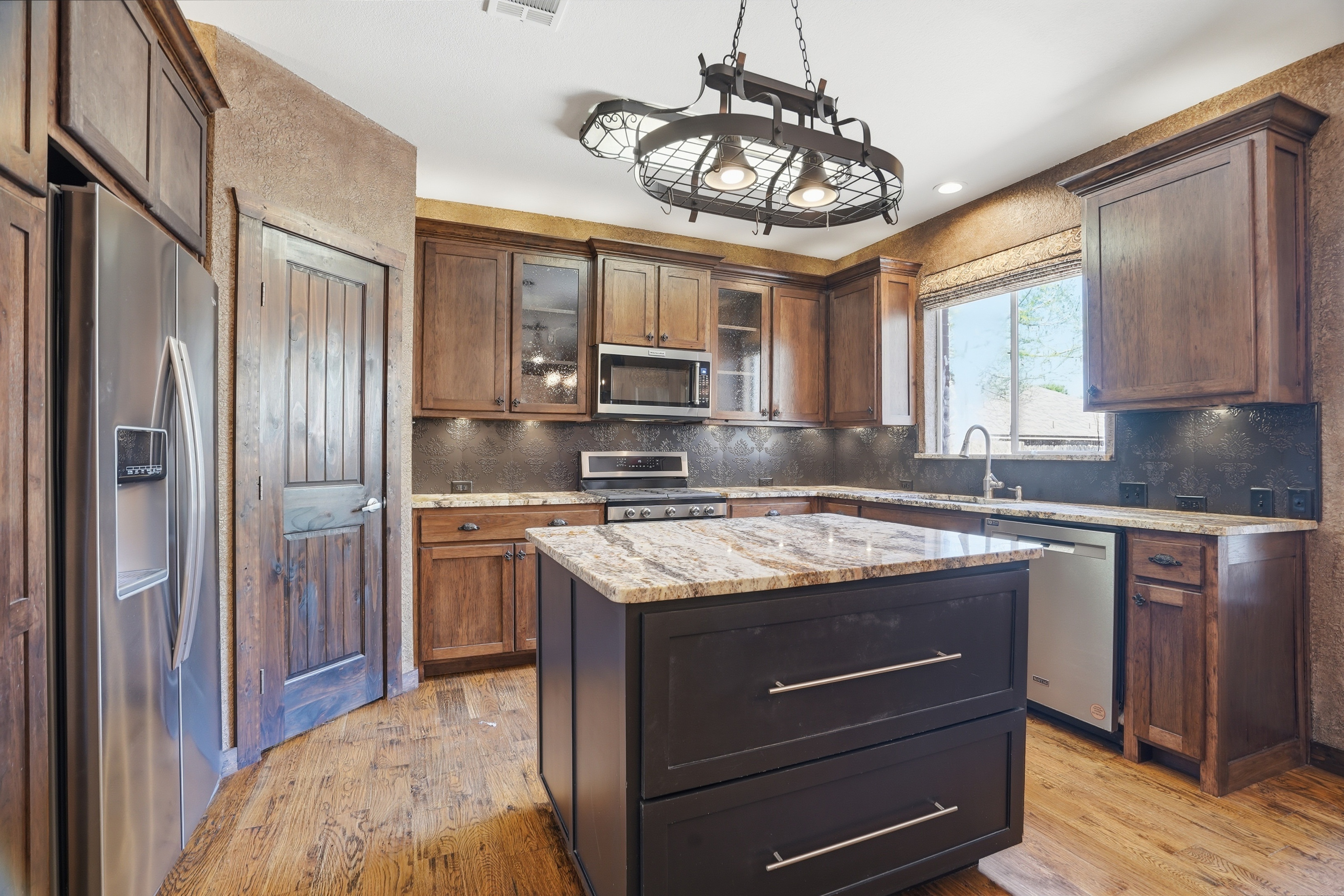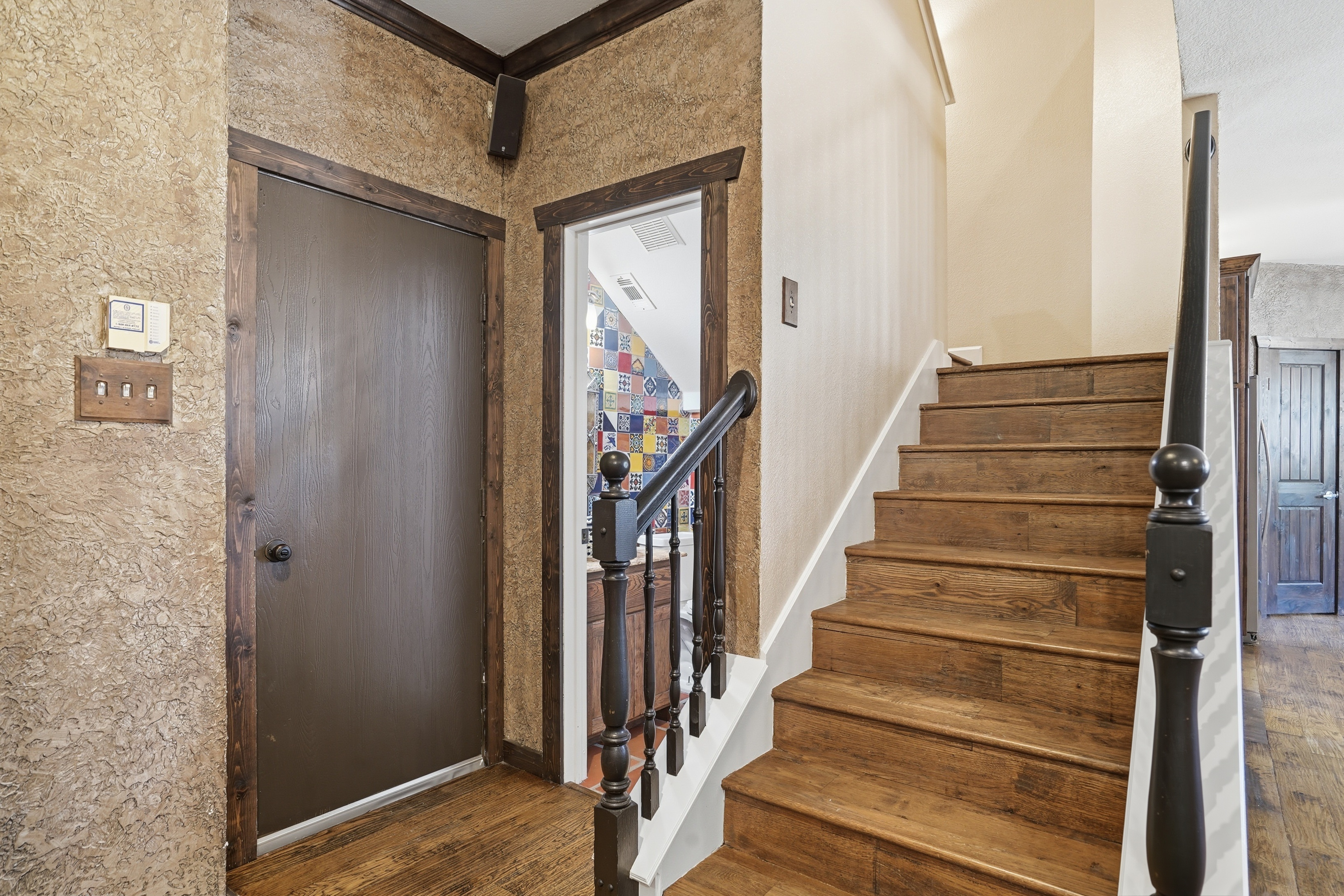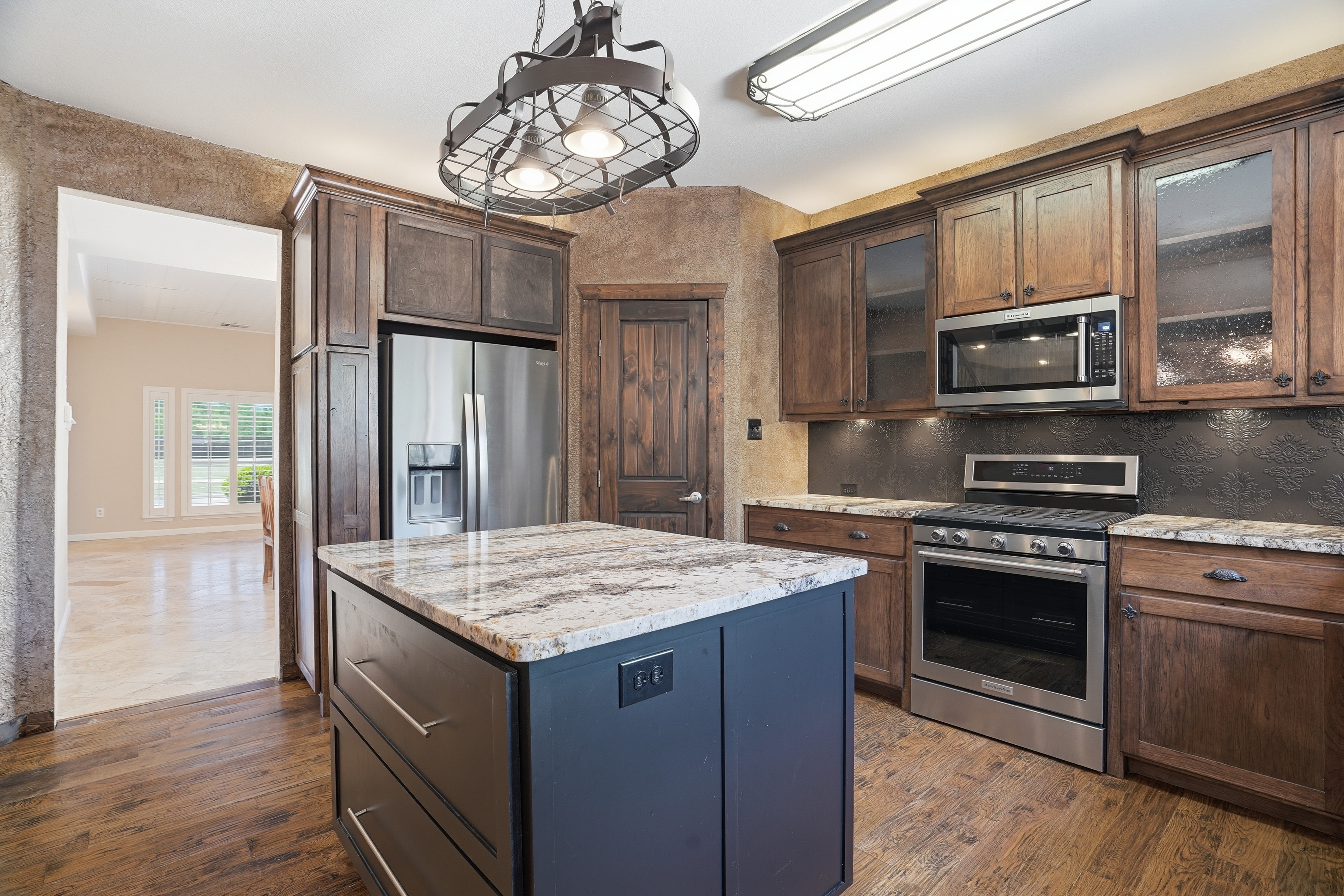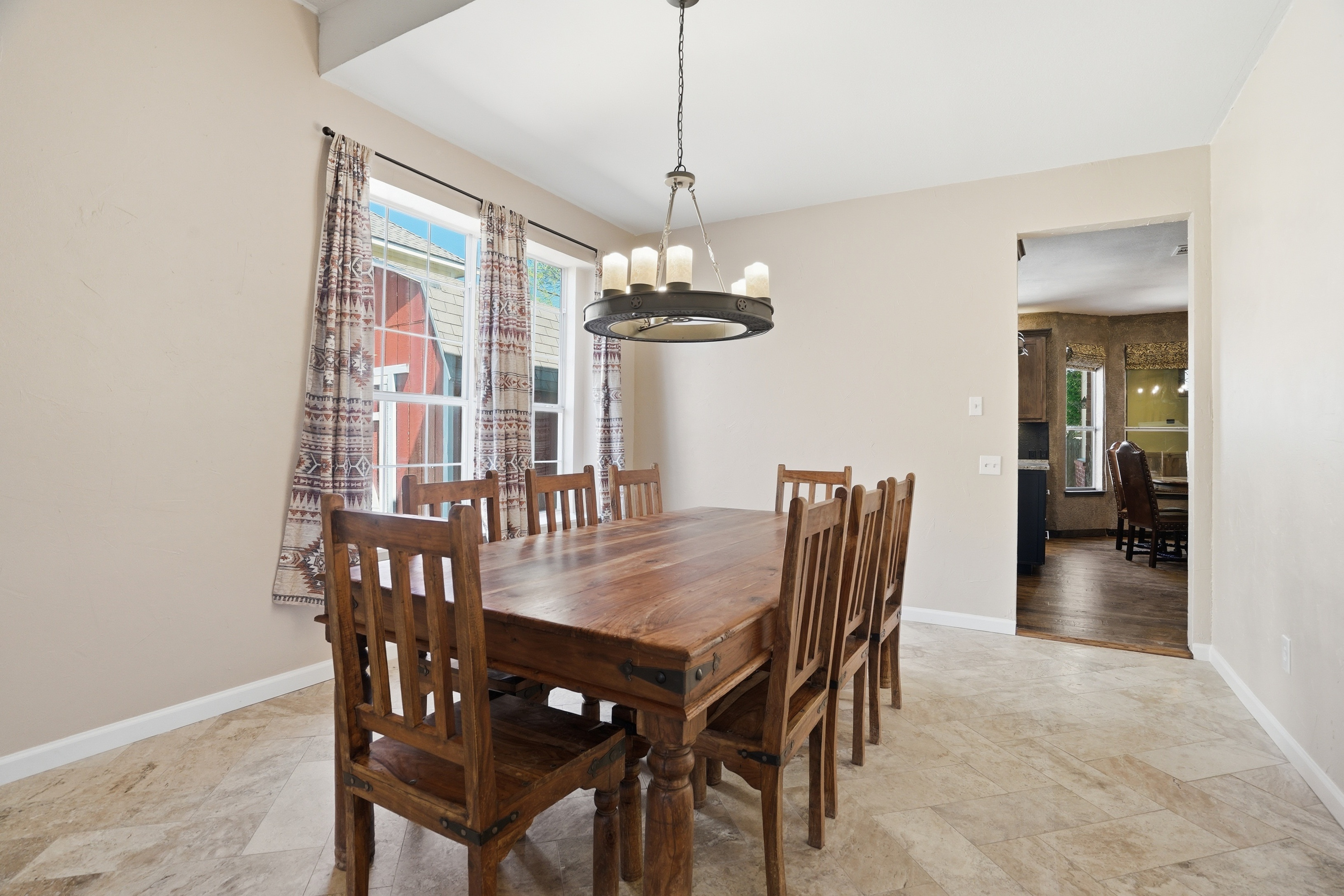 Discover refined living in Keller, TX at 2133 Rustic Ridge. This beautifully updated 4-bedroom, 2.5-bath home showcases custom finishes throughout and a warm, inviting design. The spacious floor plan features rich 5-inch white oak stained flooring, elegant travertine accents, and a versatile bonus room anchoring the main living area. The kitchen is a standout with hickory custom cabinetry, granite countertops, and thoughtful upgrades that blend style and function. The bonus room offers flexibility for a home office, game room, or additional living space. The private primary suite has been tastefully upgraded, featuring a beautifully renovated bath designed for comfort and relaxation. The powder bath features distinctive Saltillo tile, adding warmth and character. Additional improvements include new windows, fresh interior paint, custom blinds, and a new fence. Step outside to a charming flagstone patio—perfect for entertaining or enjoying peaceful evenings. With custom details throughout and move-in ready updates, this home offers the perfect blend of character, comfort, and quality.