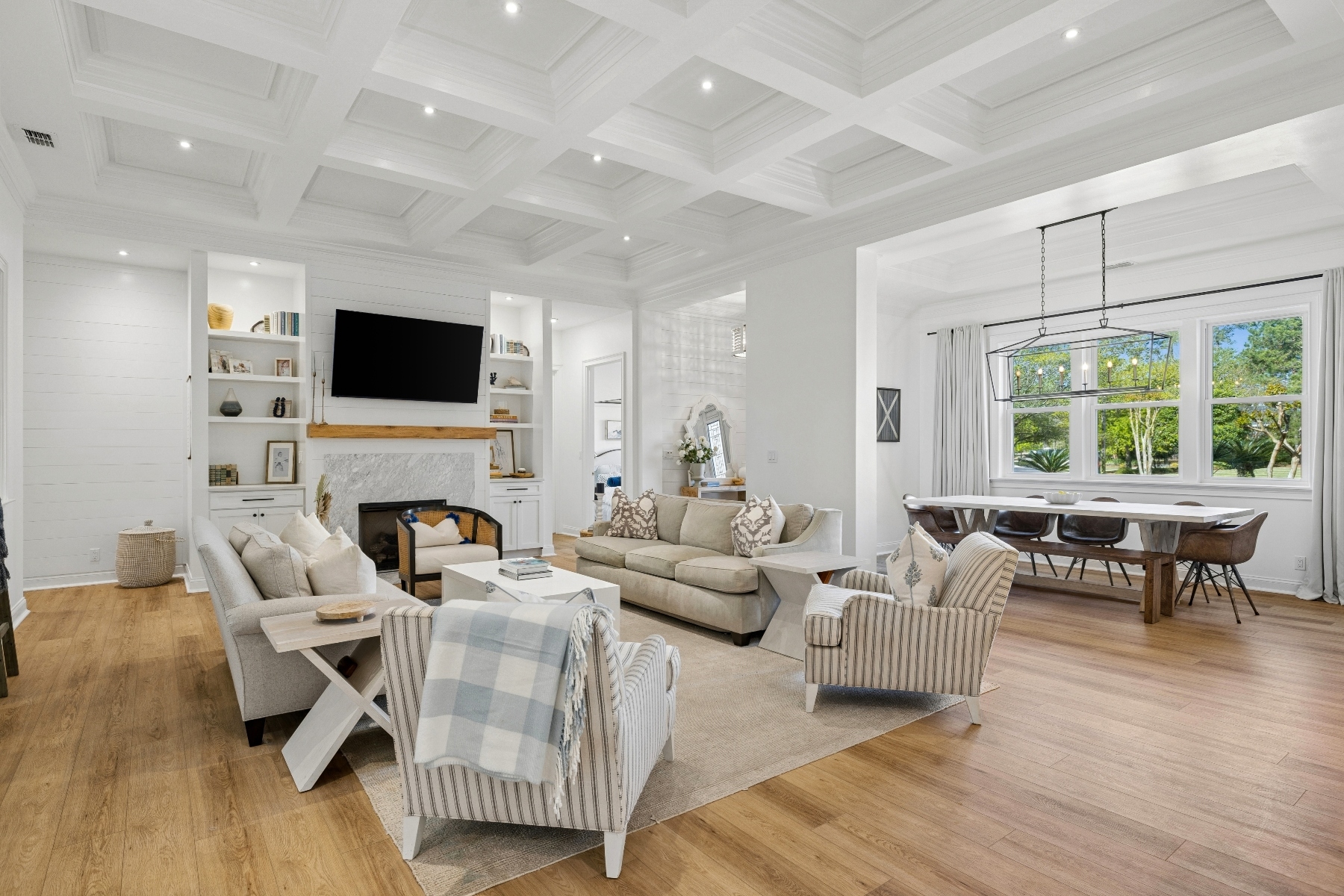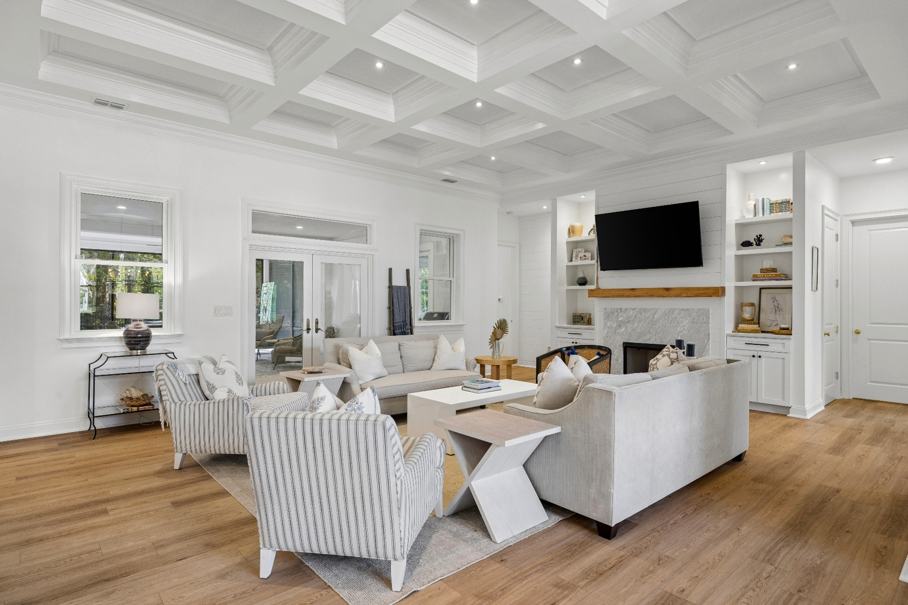 This exceptional custom built home in Hampton Lake is one you won't want to miss! Recently renovated, this home has been completely reimagined and is truly one of a kind. Functional living at its finest, featuring an open airy floor plan with 12 ft ceilings, spacious guests suites, primary suite separation, and a bonus room already plumbed for an additional bathroom! The chef's kitchen showcases custom cabinetry, a custom range hood, Thermador appliances, built in coffee bar, and quartz countertops. Additional details include coffered ceilings, a marble fireplace surround, and extensive millwork throughout. Situated on almost half an acre, enjoy indoor outdoor living with an expansive screened in porch, mature landscaping, and a private fenced in yard with room for a pool! Ideally located close to Palmetto Bluff, Old Town, shops, and restaurants. Hampton Lake offers world class amenities including a fitness center, lake access, boating, restaurants, playground, pavillion, tennis, pickleball, basketball, bocce, leisure trails and more!