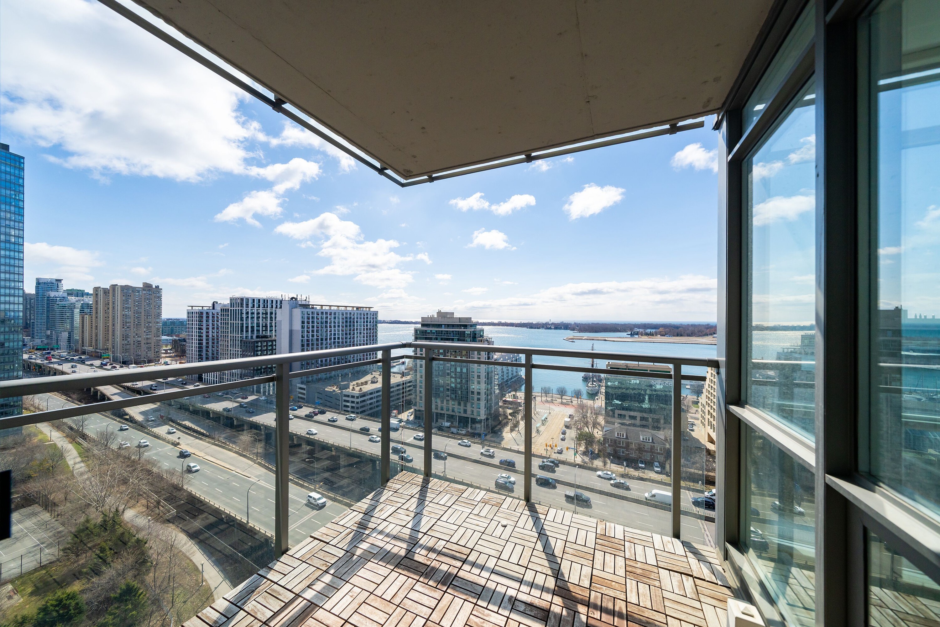Refined luxury living awaits in this stunning southeast facing corner suite at West One in Cityplace. This exceptional 2 bedroom + den, 2 bath residence showcases breathtaking, unobstructed views of Lake Ontario through expansive floor-to-ceiling windows that flood the space with natural light throughout the day. The thoughtfully designed open concept layout blends elegance and functionality, featuring a sophisticated kitchen with premium finishes, sleek cabinetry, Culligan water filtration system, and quality appliances, seamlessly flowing into spacious living and dining areas, with battery-operated blinds; perfect for both entertaining and everyday comfort. The desirable split bedroom design offers privacy, while the versatile den provides the ideal space for a home office or guest area. Step out onto your private balcony and take in captivating lake and city views from this elevated vantage point. Residents enjoy access to an impressive selection of resort style amenities, including an indoor pool, fitness centre, sauna, rooftop terrace, and 24-hour concierge. Ideally located in the middle of it all, just steps to the waterfront, parks, transit, and Toronto's Financial and Entertainment Districts, this isurban living at its finest. Includes internet and parking.