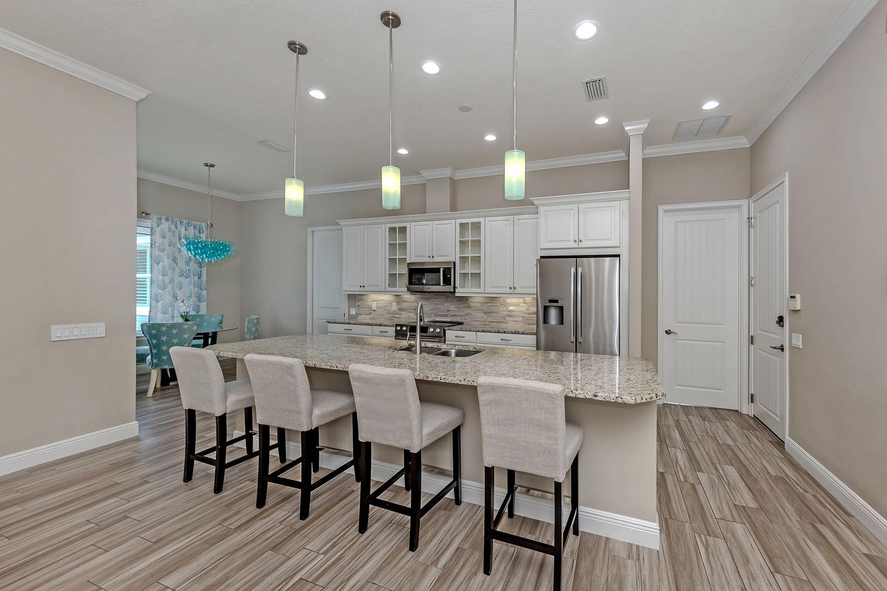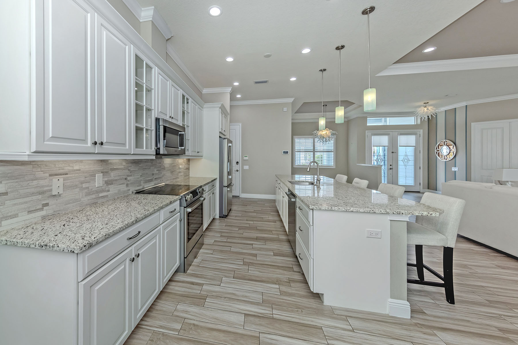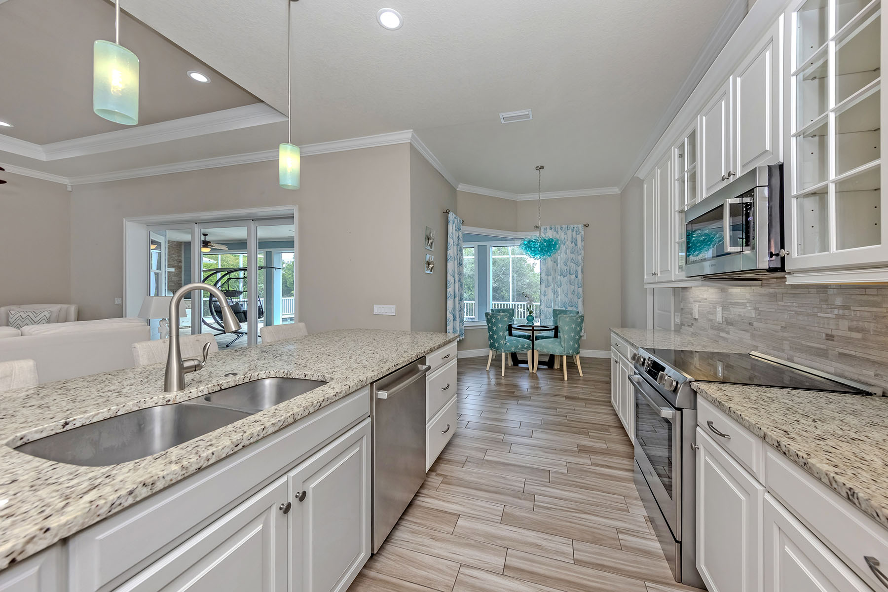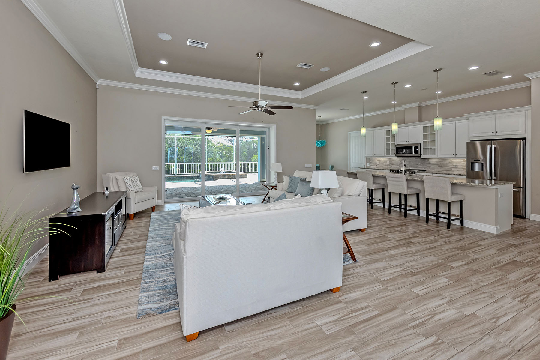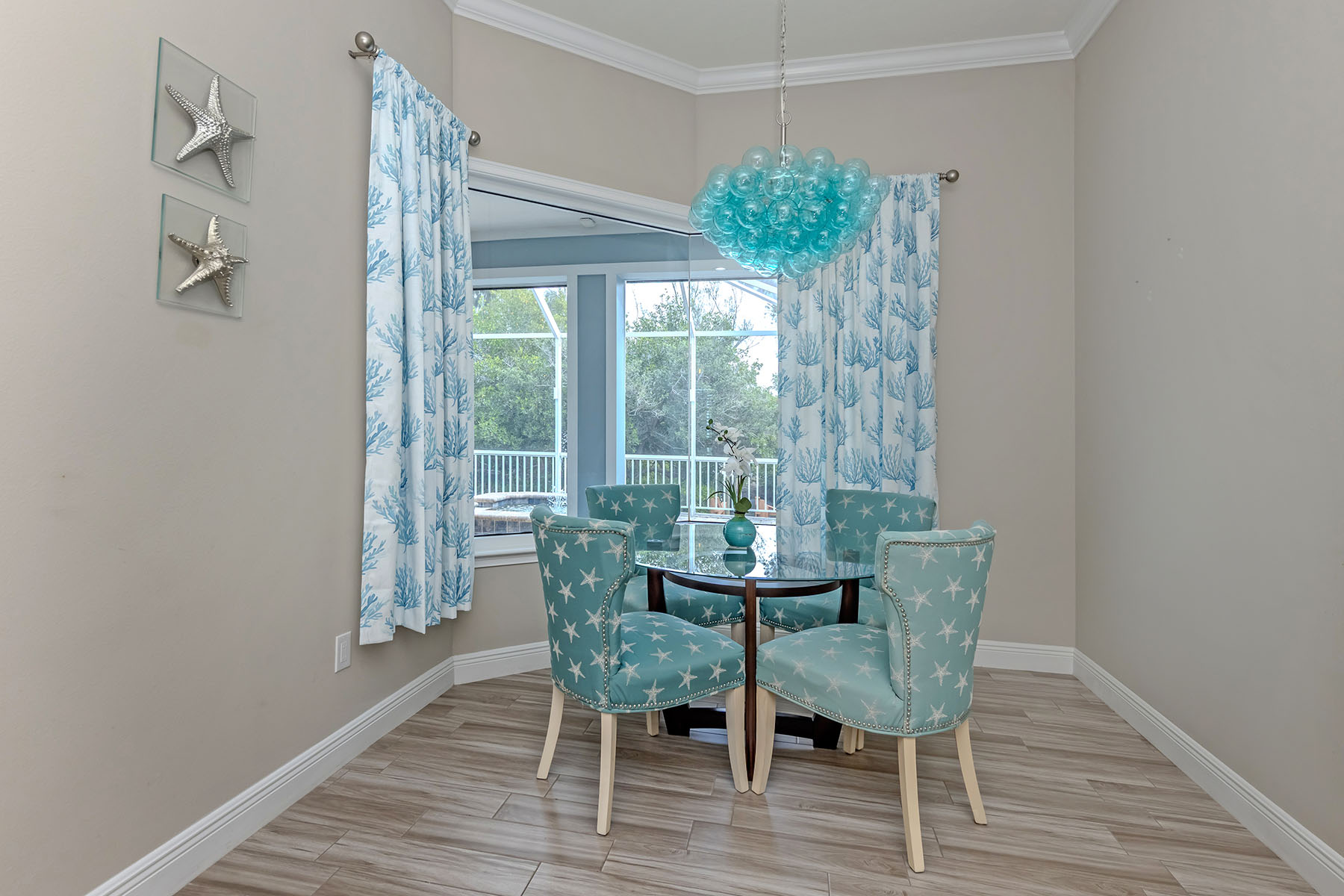 Wow! Welcome to 18060 Wooden Skiff Court, an exceptional waterfront and furnished residence, in the highly sought-after coastal community of Nokomis. From the moment you arrive, you're greeted by impeccable curb appeal, lush tropical landscaping, and charming Key West cottage-style architecture featuring durable fiber cement siding over concrete block construction. New front garage lighting further enhances the home's warm and sophisticated exterior presence. Inside, the residence showcases an open, light-filled floor plan with soaring ceilings, expansive glass doors, and seamless indoor-outdoor flow, ideal for both entertaining and everyday comfort. LED lighting throughout enhances the home's modern aesthetic, while a premium Bose surround sound system extends both inside and out, creating an immersive living and entertaining experience. A comprehensive Leader Security System with protection on all doors and windows provides peace of mind. The chef's kitchen is a standout, featuring Bosch appliances, custom cabinetry, generous counter space and a large center island that anchors the heart of the home. The home is fully furnished, including washer and dryer, allowing for a move-in-ready experience. The primary suite is a private retreat, offering tranquil views, a spa-inspired bath and spacious walk-in closets. Additional guest suites are thoughtfully designed to provide comfort and privacy for family and visitors alike. Hurricane-impact windows and doors, except for the kitchen's fishbowl window, along with hurricane screens provide enhanced protection and efficiency. Step outside to your personal oasis, an expansive lanai, a heated saltwater pool with elegant uplighting installed by Venice Lighting and beautifully appointed outdoor living areas invite you to unwind in style. The outdoor space is further elevated by a fireplace and TV hookup, perfect for year-round enjoyment. The private dock, freshly painted in 2025, offers direct water access for boating enthusiasts, completing the ultimate Florida waterfront lifestyle. Additional upgrades include elegant light fixtures throughout the home and a new A/C system installed in 2023, ensuring comfort and efficiency for years to come. Located just minutes from pristine Gulf beaches, championship golf, fine dining and the charm of nearby Venice and Sarasota, this residence offers both convenience and exclusivity. Experience coastal luxury at its finest, where every detail has been curated for comfort, elegance and the very best waterfront living.