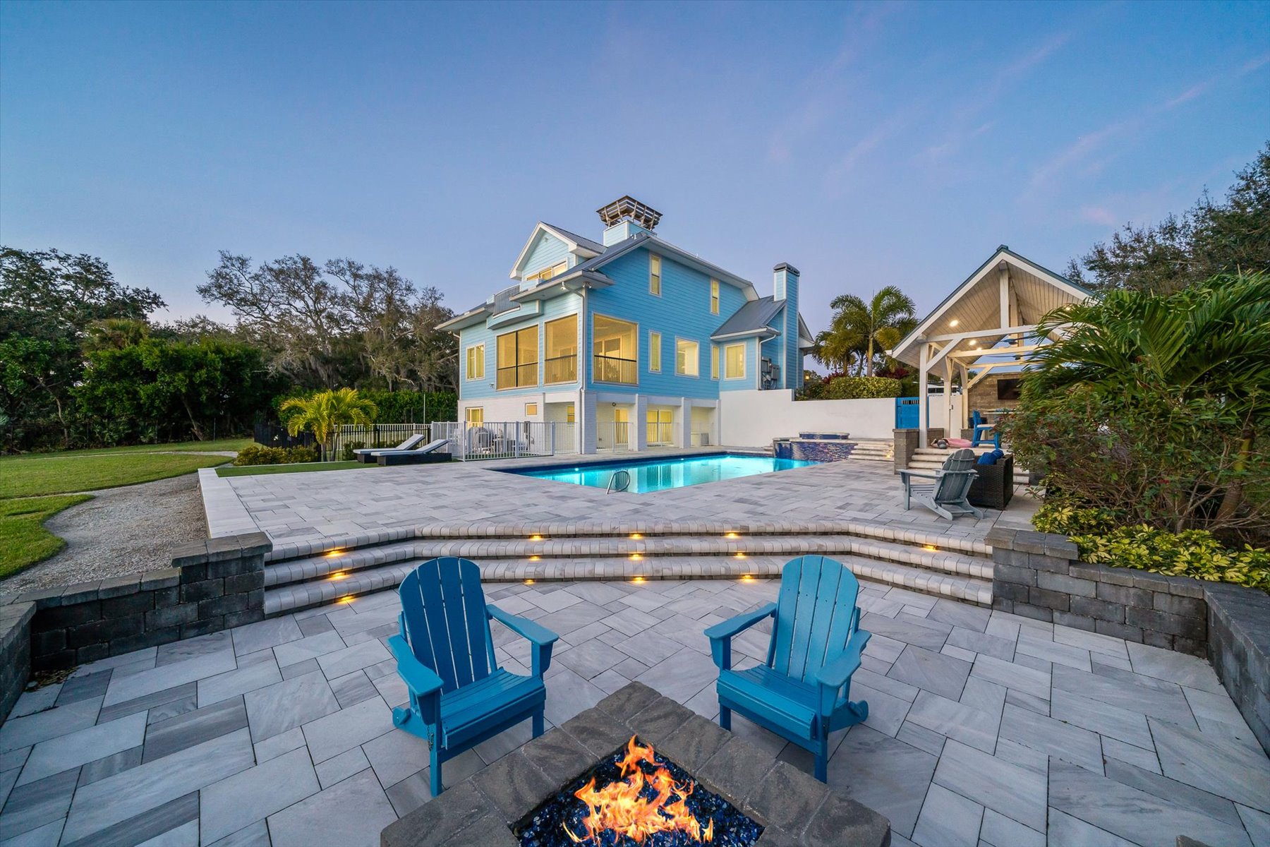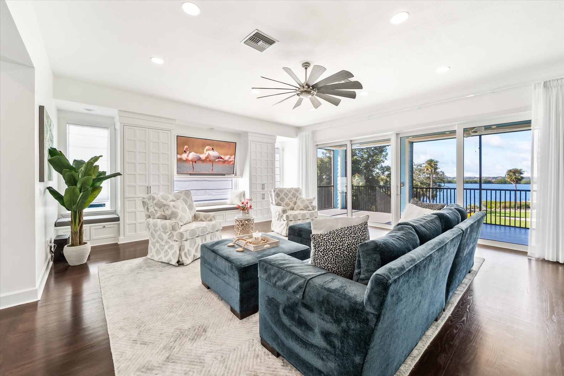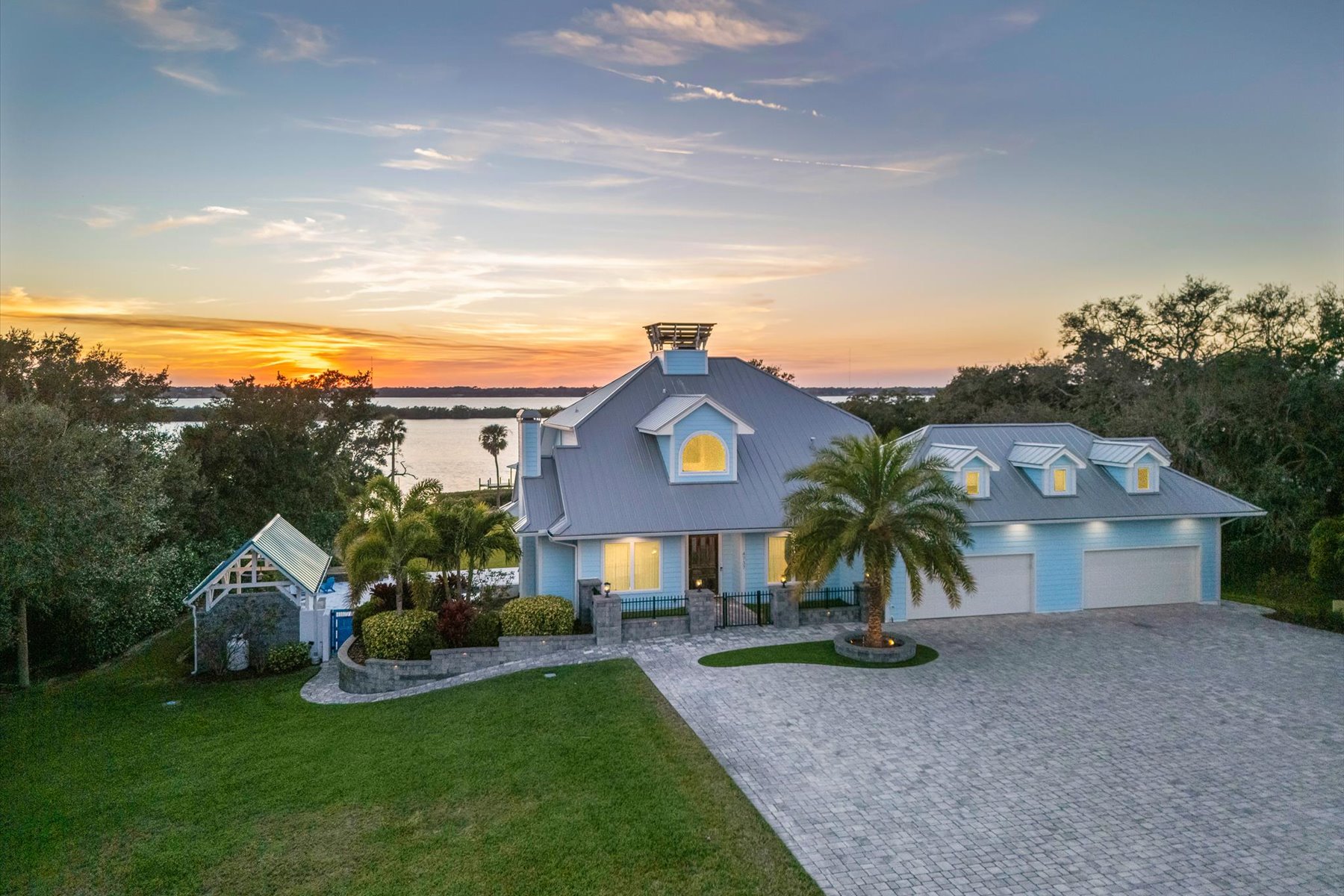 From the moment you step through the front door, you're greeted by sweeping, uninterrupted views of Honeymoon Lake, an immediate sense of arrival that sets the tone for the entire residence. Positioned along one of Brevard County's most coveted waterways, this singular waterfront estate is a study in quiet luxury and intentional design. Custom-stained oak hardwood floors, layered textures, and a gas fireplace create interiors that feel both polished and inviting, while the home's thoughtful layout draws the eye effortlessly toward the water beyond. Designed for seamless indoor-outdoor living, the exterior unfolds into a resort-style setting where a marble-framed pool, summer kitchen, and expansive pavered terraces invite long afternoons and elegant evenings. A powered dock with dual boat lifts provides direct access to the water, complemented by a Trex deck ideal for sunrise departures and sunset returns. Built with resilience and longevity in mind, the home features a metal roof, hurricane-impact windows and doors, impact-rated garage doors, a whole-house generator, Hardie board siding, private fourth bedroom suite with its own full bathroom, washer and dryer, dedicated storage and separate interior and garage access, and a concrete-block basement. Adding to its rarity, the property includes private ownership of a portion of the entrance to Honeymoon Lake. Refined, private, and truly one of a kind, this estate delivers waterfront living at its most elevated.