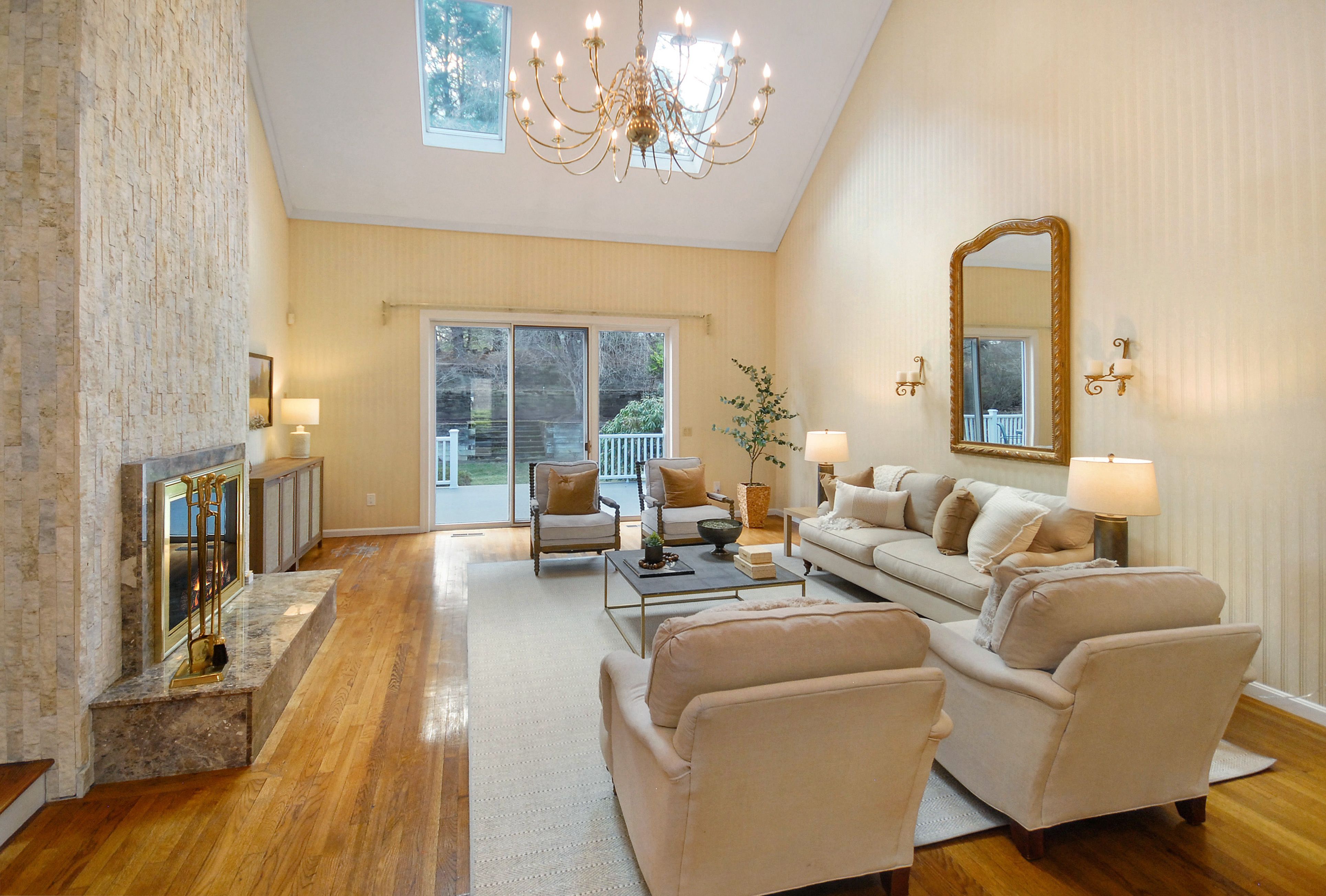 Exceptional opportunity! This 10-room Grand Cape sits in a sought-after neighborhood among higher-value homes—ideal for buyers ready to unlock its potential. Architectural highlights include a dramatic two-story skylit living room, double-sided floor-to-ceiling stone fireplace, coffered, half-vaulted, and 9' ceilings and marble foyer. Walls of glass bring in natural light, while the kitchen & sunroom enjoy bright morning exposure. Formal rooms flow seamlessly for entertaining and the spacious FR offers comfortable everyday living. A private office w fireplace connects to the primary suite, with its deck access, three walk-in closets and a 27' x 15' bath ready for reimagining. Upstairs: 3 bedrooms, 2 baths, balcony overlook, and cedar closet w further expansion potential. A 52' deck overlooks a level yard w tiered plantings. Neighborhood access to cons land & trails to Walden Pond, CCHS, & Concord Ctr - ideal for outdoor enthusiasts. Easy route 2 access. New roof & LR skylights (2025).