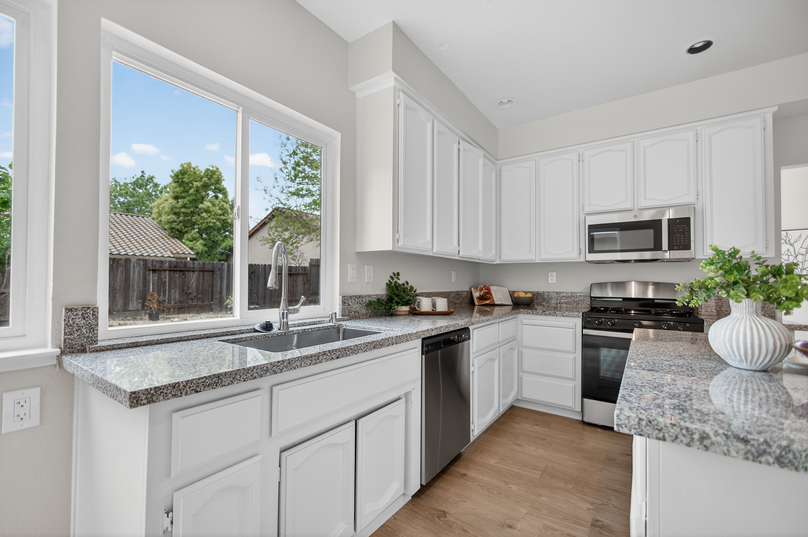 Located in Sacramento's desirable Churchill Downs community, this spacious 4-bedroom home stands out with its versatile layout, 3 fullbathrooms, and a rare 3-car garage perfect for growing households or those needing extra space. Inside, you'll find an expansive andfunctional floor plan designed for both everyday living and entertaining. Multiple living areas offer flexibility, while the open-concept flow and highceilings create a bright, inviting atmosphere. A convenient downstairs bedroom and full bath provide an ideal setup for guests, a home office, ormultigenerational living. The updated kitchen is a standout feature, complete with brand-new stainless steel GE appliances, modern finishes,and a layout that seamlessly connects to the main living spaces. Whether hosting or enjoying a quiet night in, this kitchen is built for both styleand function. Step outside to a large, flat lot offering endless potential perfect for creating your dream backyard, entertaining space, or gardenretreat. Situated in a quiet, well-maintained neighborhood with no through traffic, this home is just moments from parks, shopping, dining, andconvenient access to Elk Grove amenities, including Sky River Casino. A true opportunity for move-up buyers, families, or anyone seekingcomfort, space, and location.