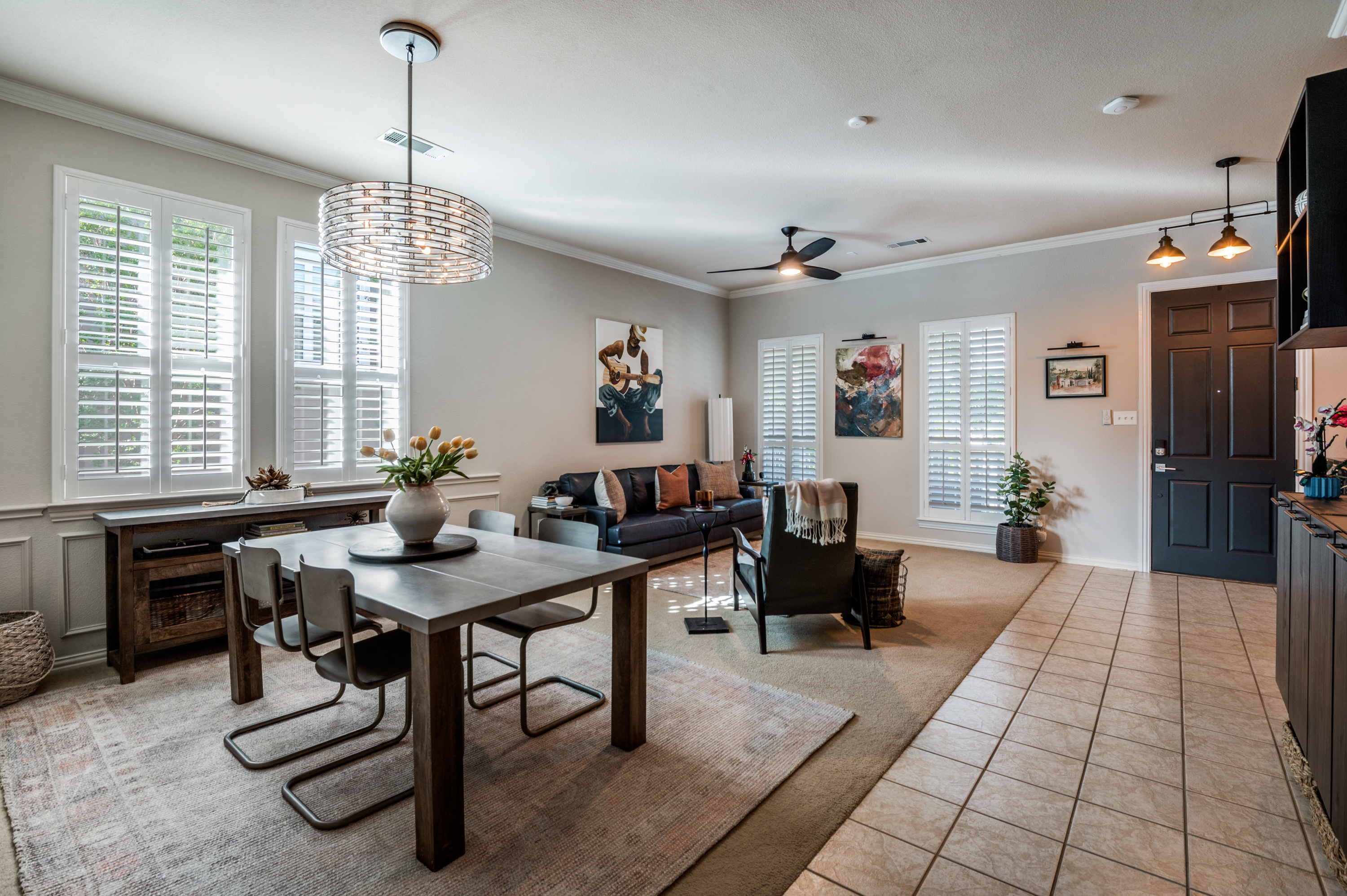 Absolutely charming and meticulously upgraded one-story 3-bedroom, 2-bath home in the highly sought-after Homestead at Carrollton! Perfectly positioned across from a picturesque pocket park, this light-filled home offers an open-concept layout ideal for both everyday living and entertaining. Inside, you’ll find fresh designer paint, plantation shutters, and updated lighting throughout. The beautifully enhanced kitchen is a standout, featuring premium KitchenAid appliances, custom-refaced cabinetry with smart storage solutions, and a functional, inviting layout. The fully remodeled primary suite provides a spa-like retreat with quartz countertops, custom vanities, and stylish finishes. A thoughtfully updated guest bath and a custom-designed laundry room with floor-to-ceiling cabinetry add both convenience and sophistication. This home truly shines with extensive recent upgrades, including high-performance windows (2024), a Carrier Infinity HVAC system (2023), replaced attic insulation, a 2020 roof and gutters, delivering comfort, efficiency, and peace of mind. Enjoy outdoor living under the cedar pergola, along with a freshly painted exterior, re-stained fence, added storage shed, and smart home features including a video doorbell, cameras, and sprinkler system. All within walking distance to top-rated schools, parks, playgrounds, and community amenities. This move-in ready gem offers the perfect blend of style, function, and location!