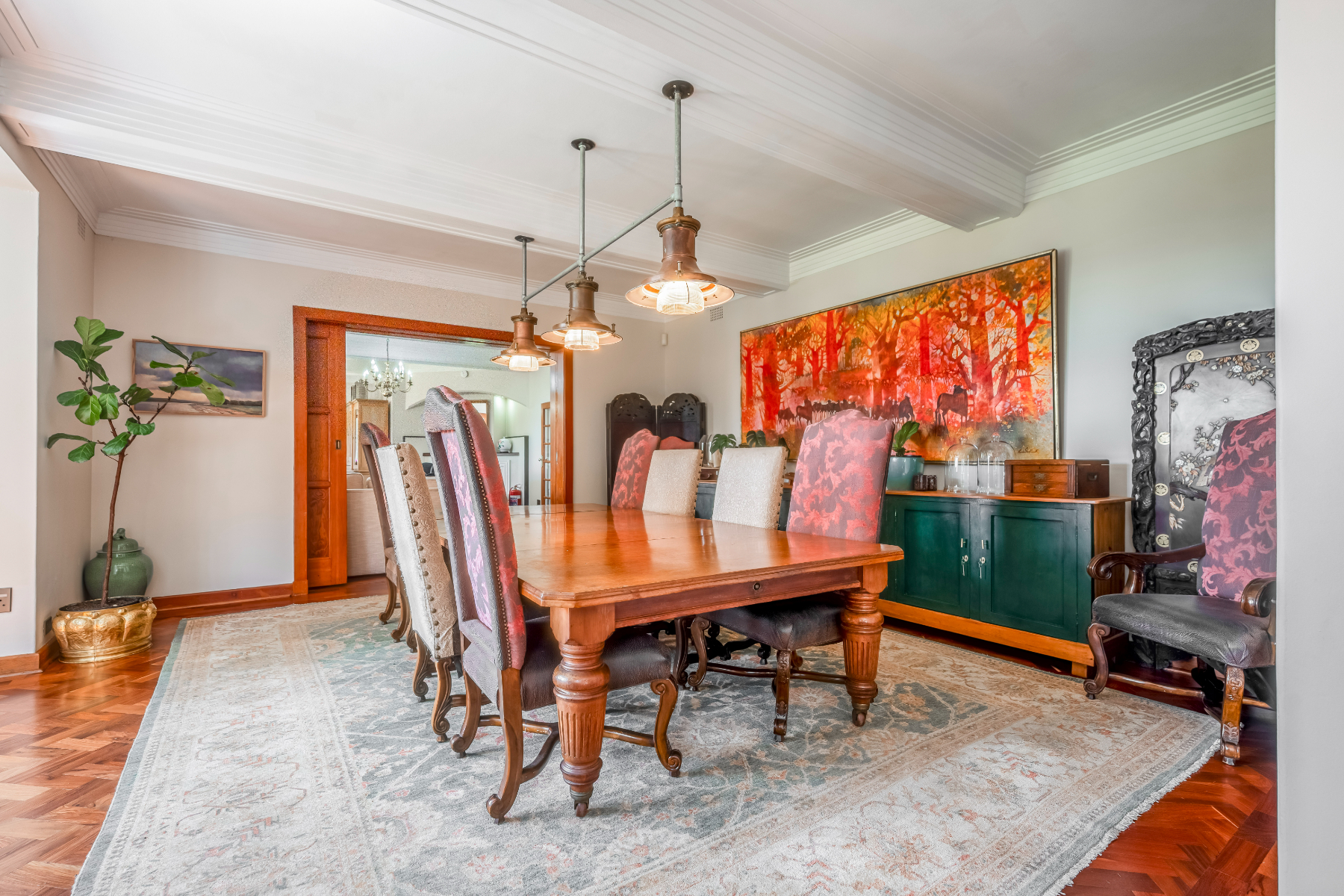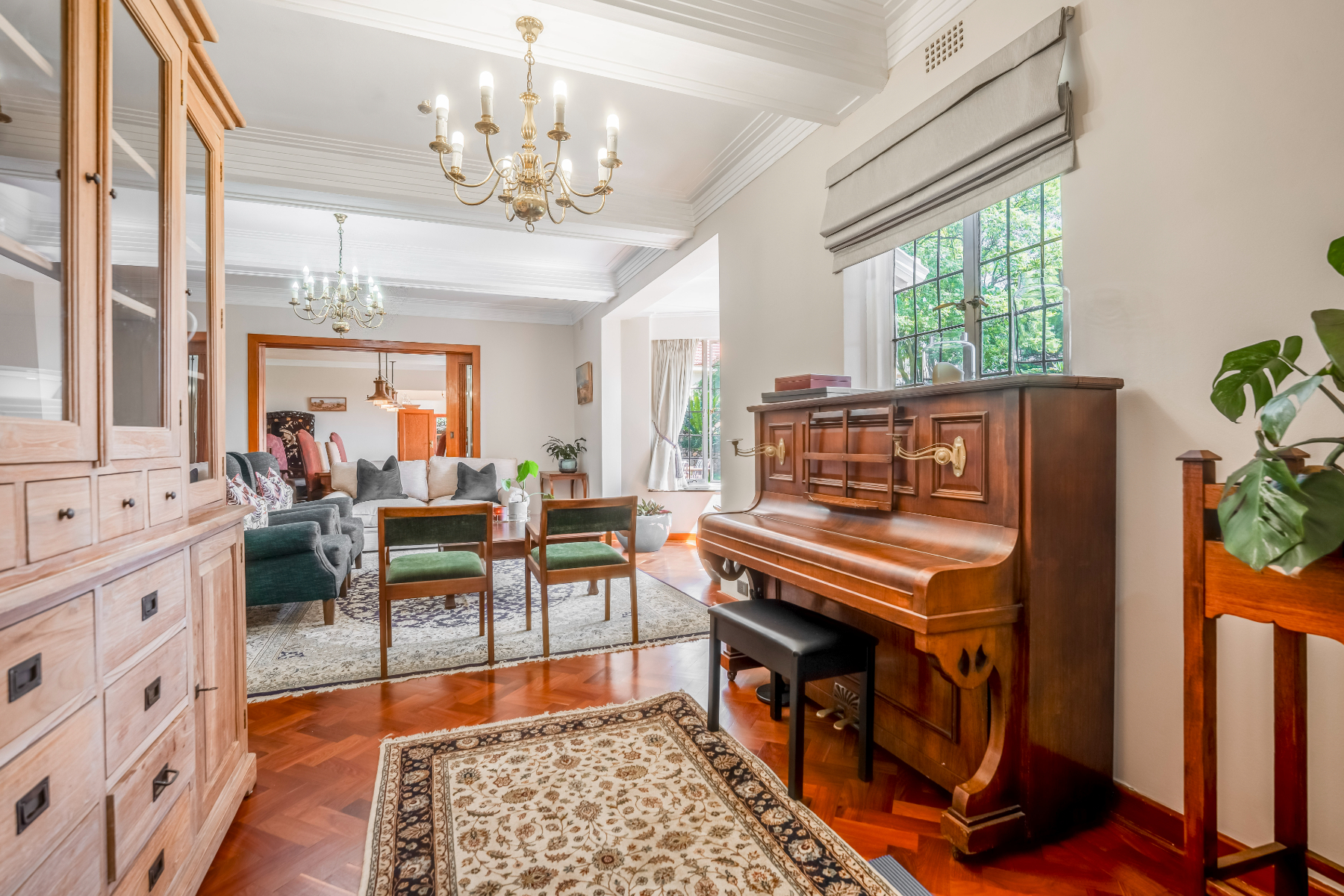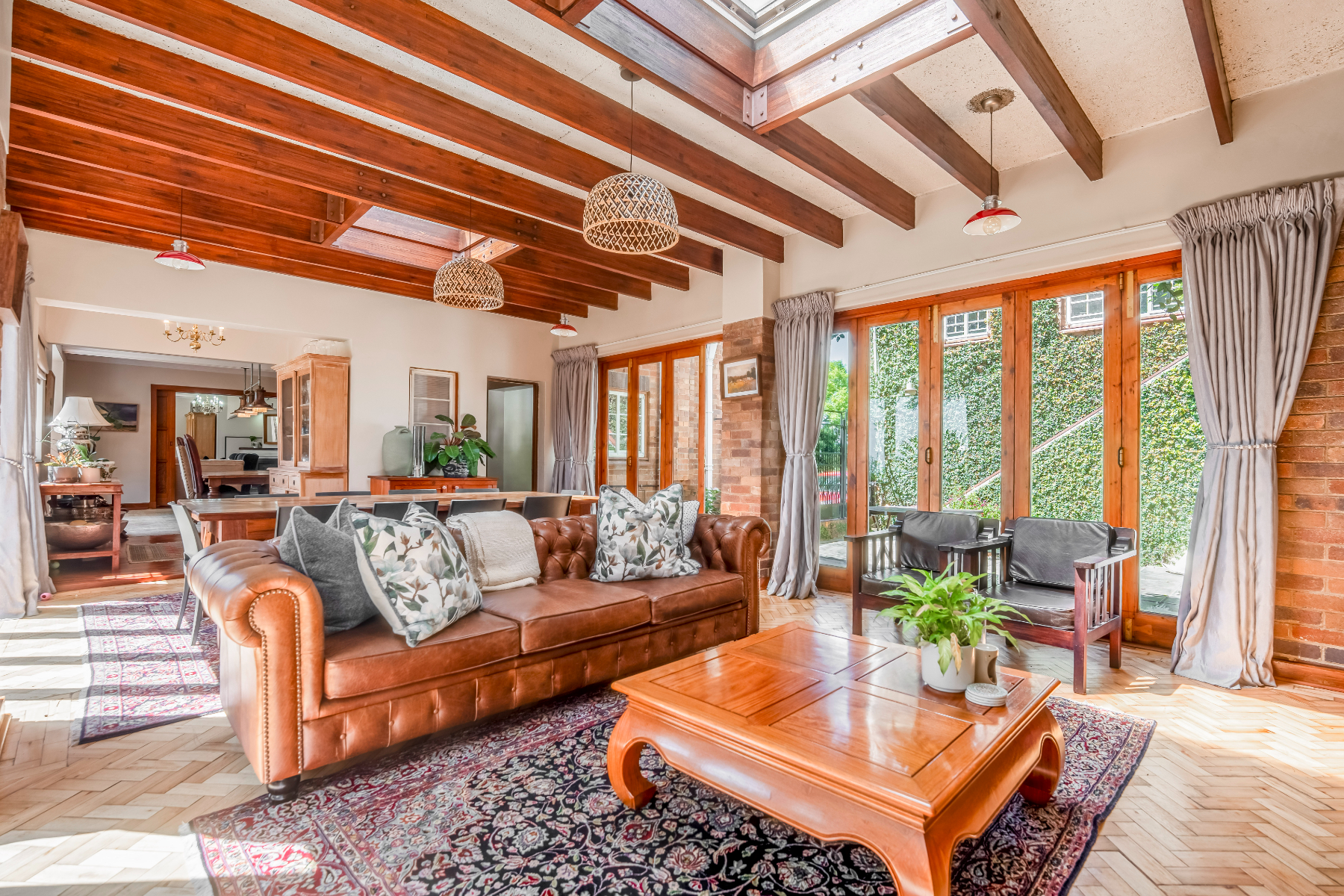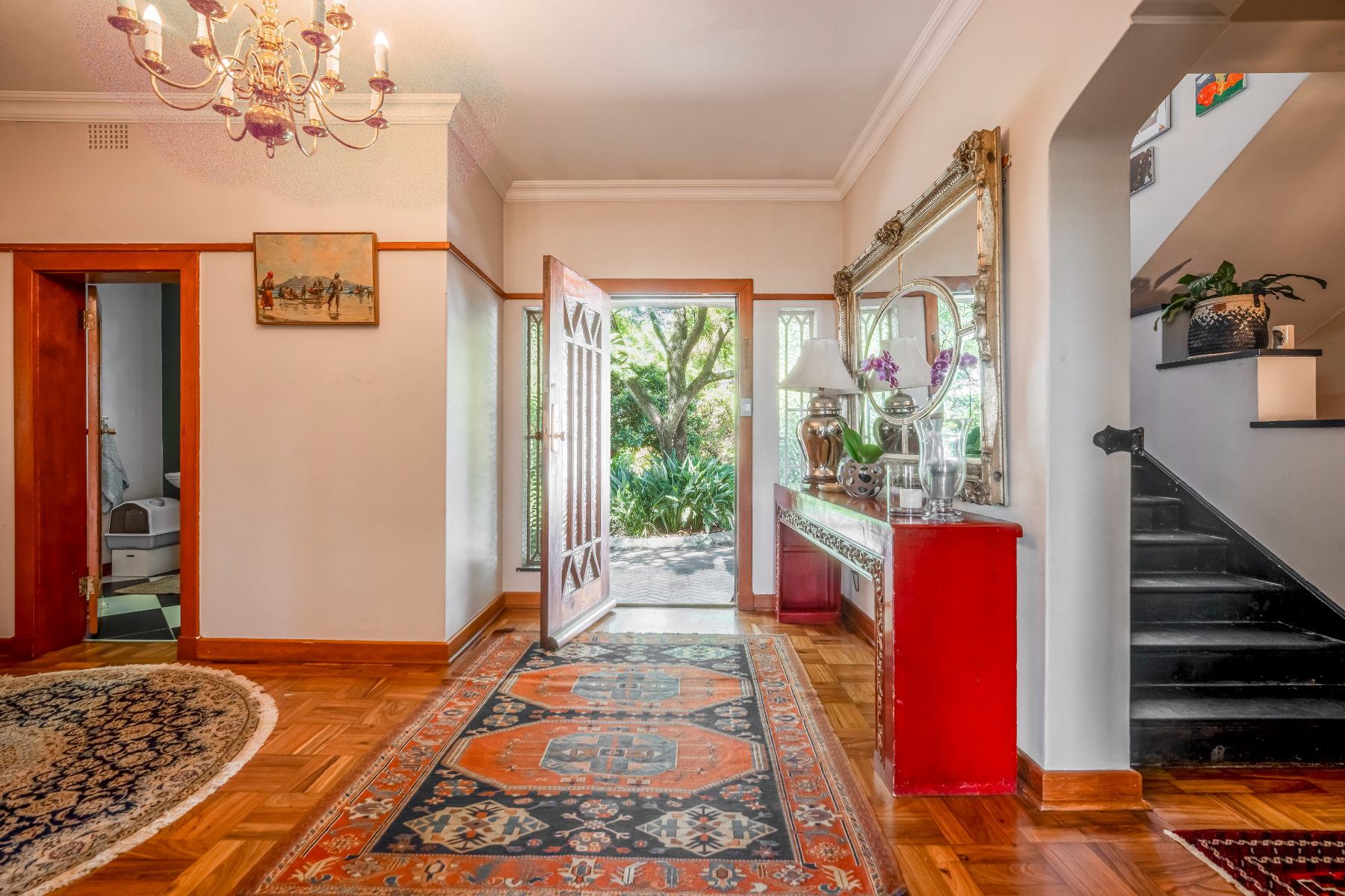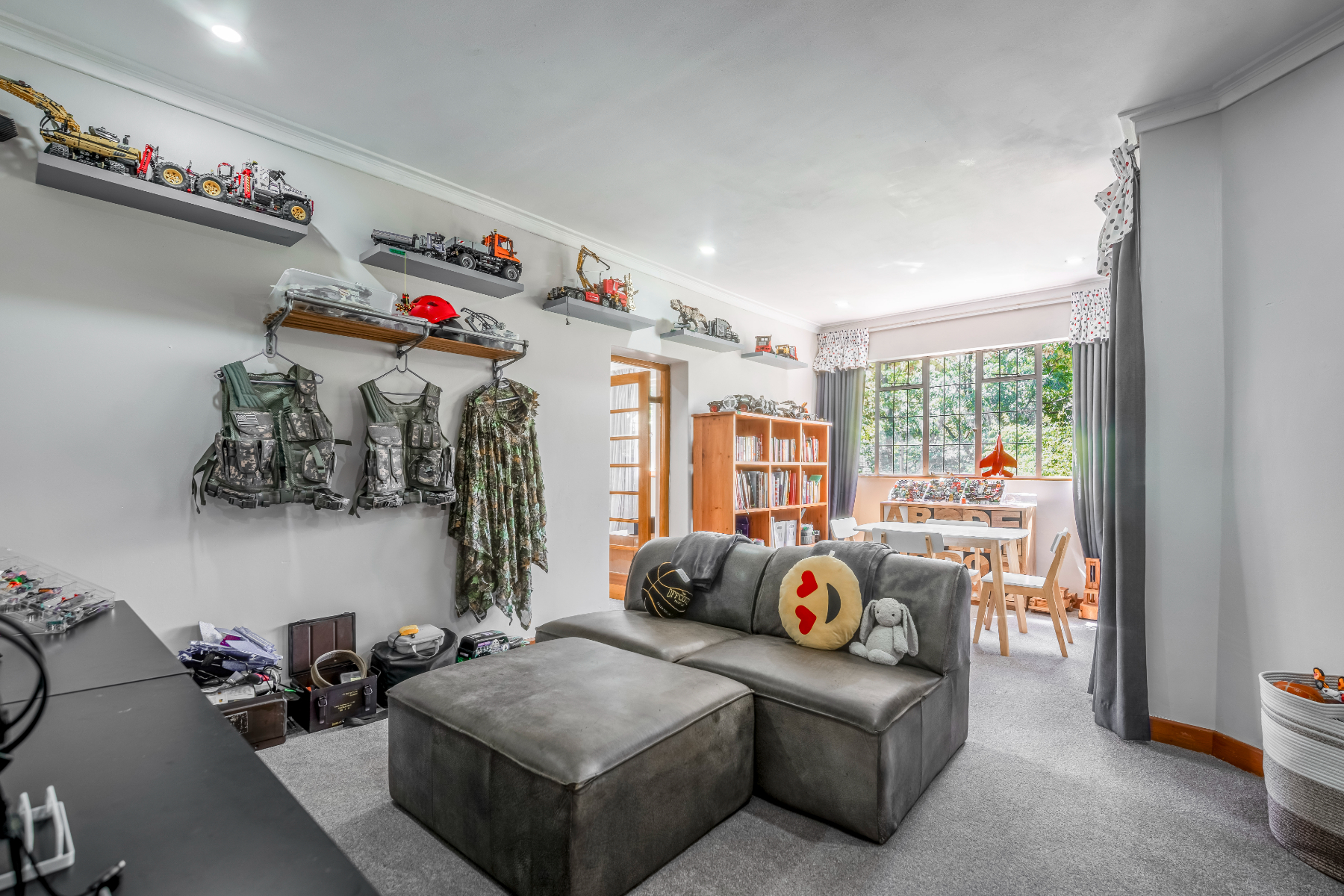 From the moment you enter, you are welcomed by a grand entrance hall adorned with warm parquet flooring, setting the tone for the elegance that flows throughout. The home boasts effortless, luxurious living spaces including a formal lounge with a fireplace, TV room, dining room, and a dedicated playroom. Seamless indoor-outdoor flow leads to a beautifully established landscaped garden with magnificent panoramic views.