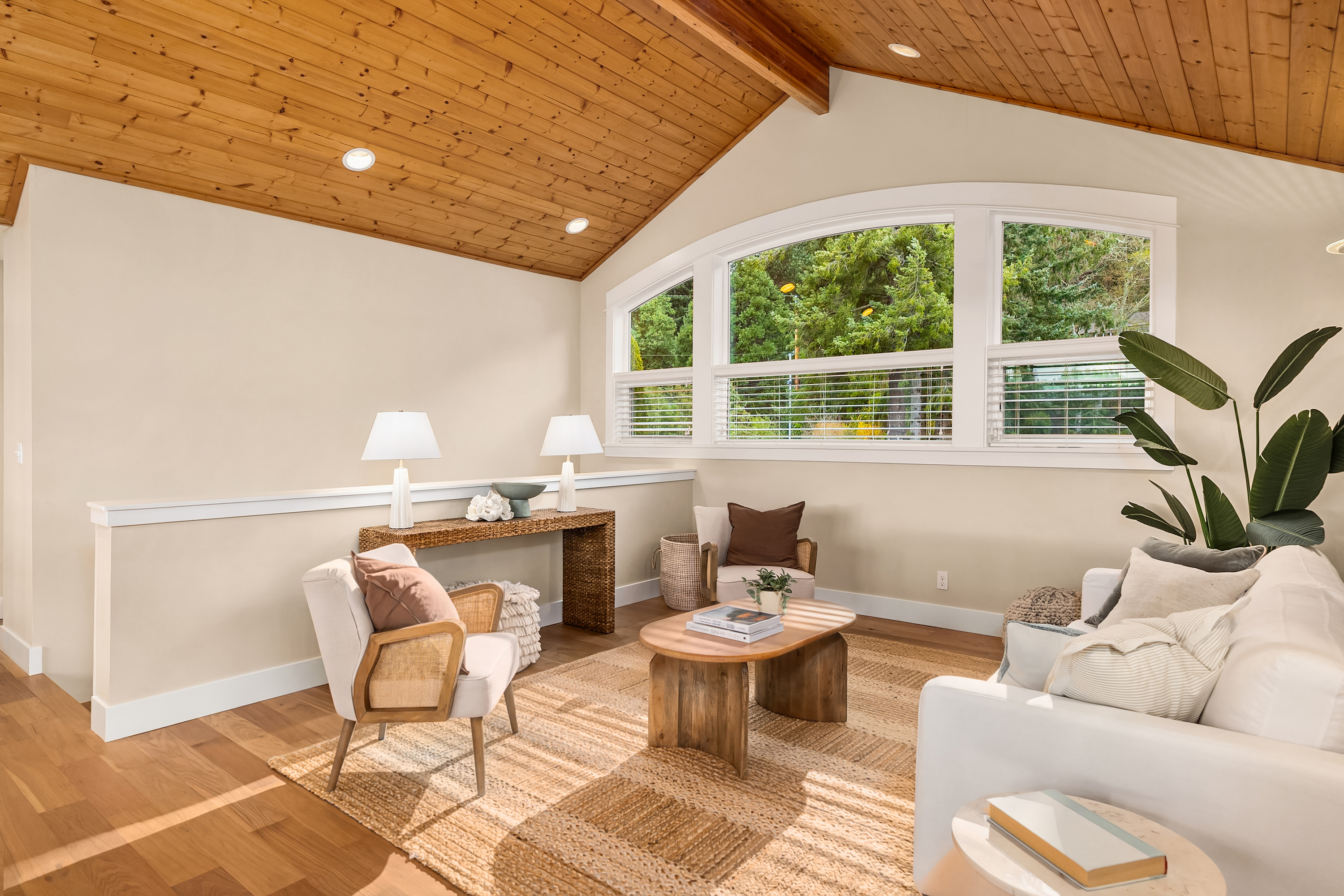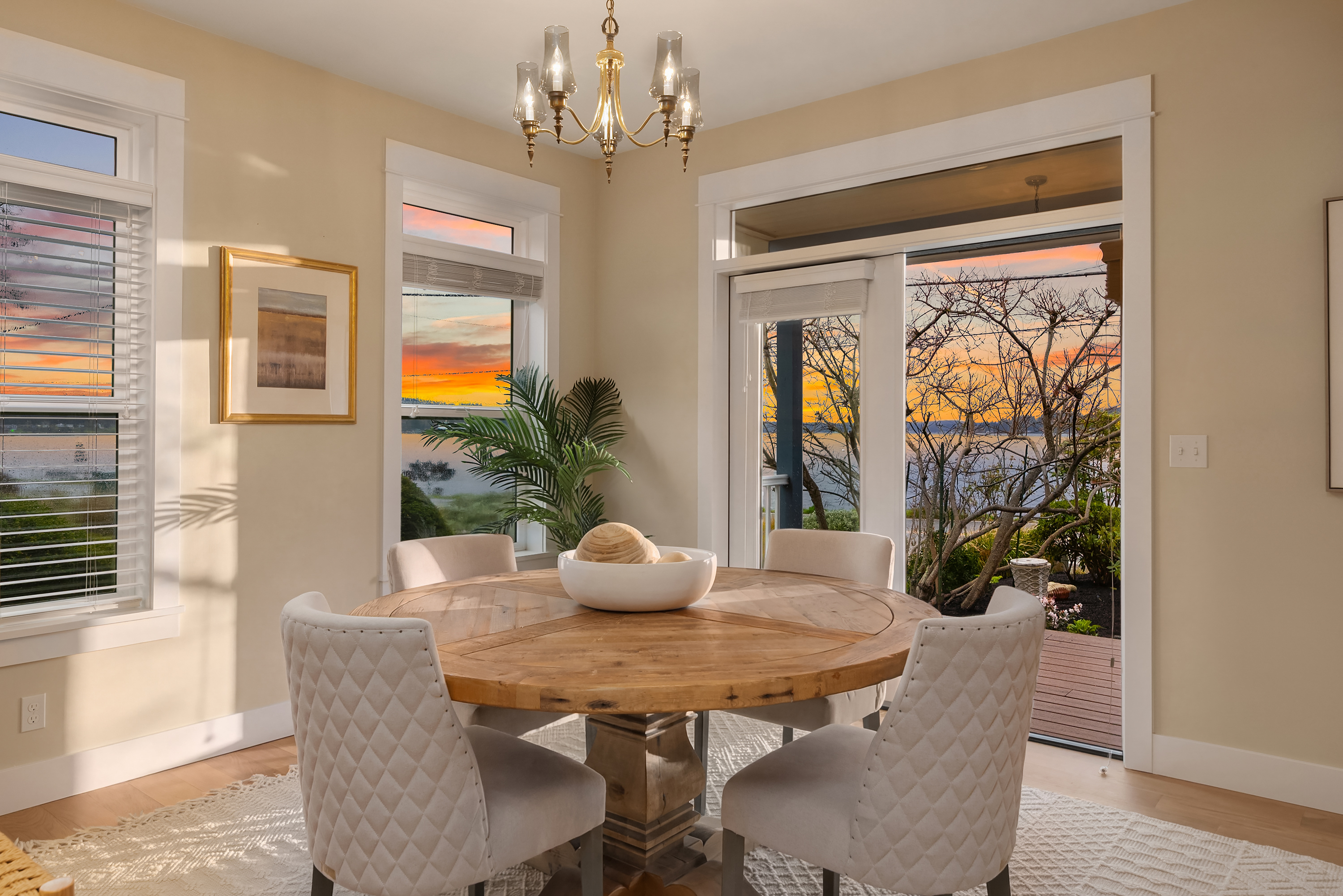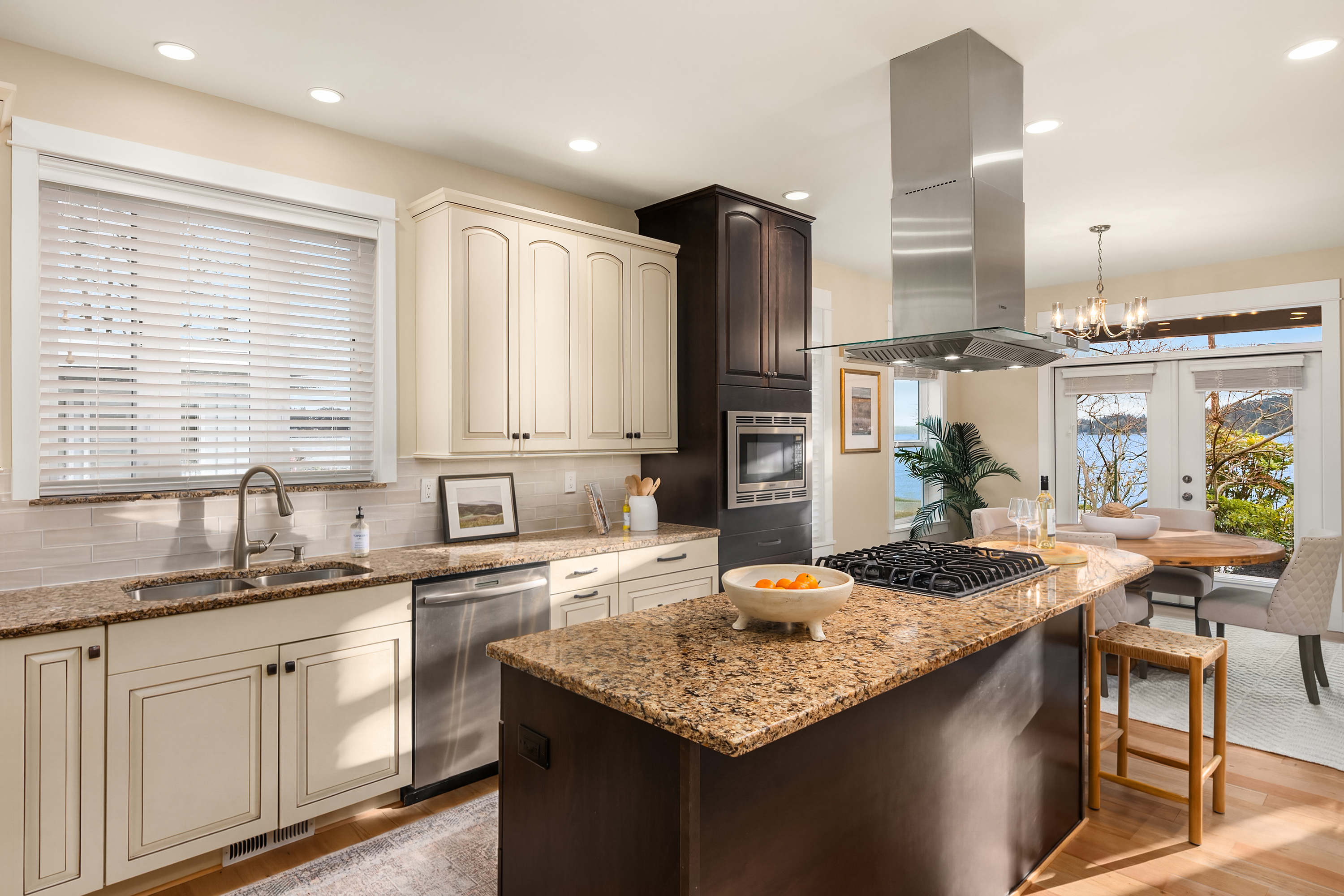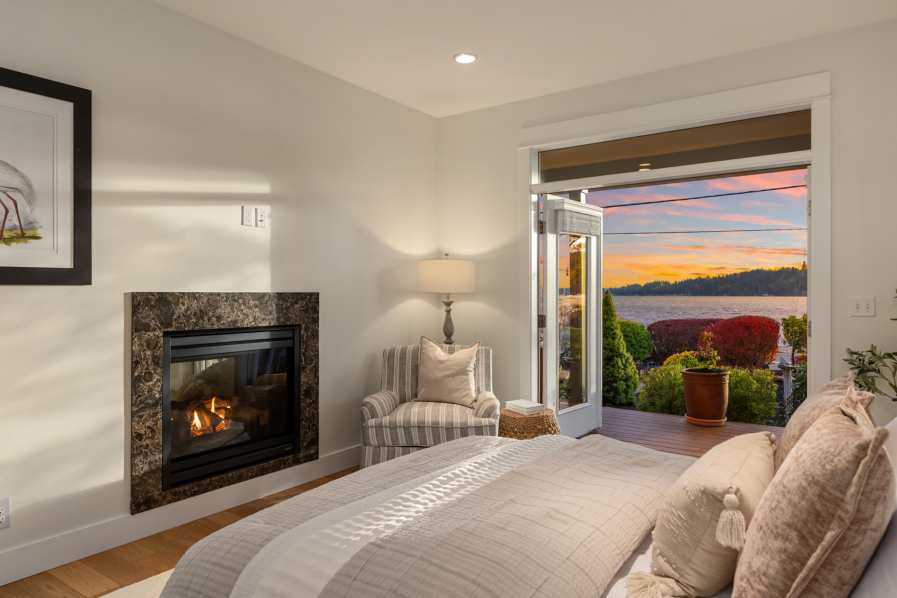 Sunlit and serene waterfront living awaits at this stunning Crystal Springs retreat, perfectly positioned to capture sweeping views of the ever-changing Rich Passage. Thoughtfully designed with a comfortable floorplan, this sweet home sits on a sunny half-acre with beautifully manicured gardens in one of Bainbridge Island’s most sought-after locations. The open-concept main level features a dramatic two-story great room with expansive windows and a double-sided fireplace, creating a bright and inviting living space. French doors open to the beach-side gardens, providing seamless indoor-outdoor living. The kitchen is well-appointed with Bosch appliances, a walk-in pantry, & ample counter space- ideal for everyday living & entertaining. The main-level primary suite includes a fireplace, spa-inspired bath, dual walk-in closets, & direct access to the tranquil waterfront setting. Upstairs, two more spacious ensuite bedrooms provide comfort and privacy, each with their own balcony. A versatile loft offers the perfect space for a media room, home office, or lounge area. Exterior features include mature landscaping, fruit trees, & a private hot tub. The detached oversized 2-car garage offers workshop space & additional storage. Addtional parking for an RV or recreational vehicles available behind the garage. Don’t miss your chance to own this sunny waterfront gem just 2 miles from Lynwood Center/Pleasant Beach w/its vibrant restaurants, shops & the historic Lynwood Theater.