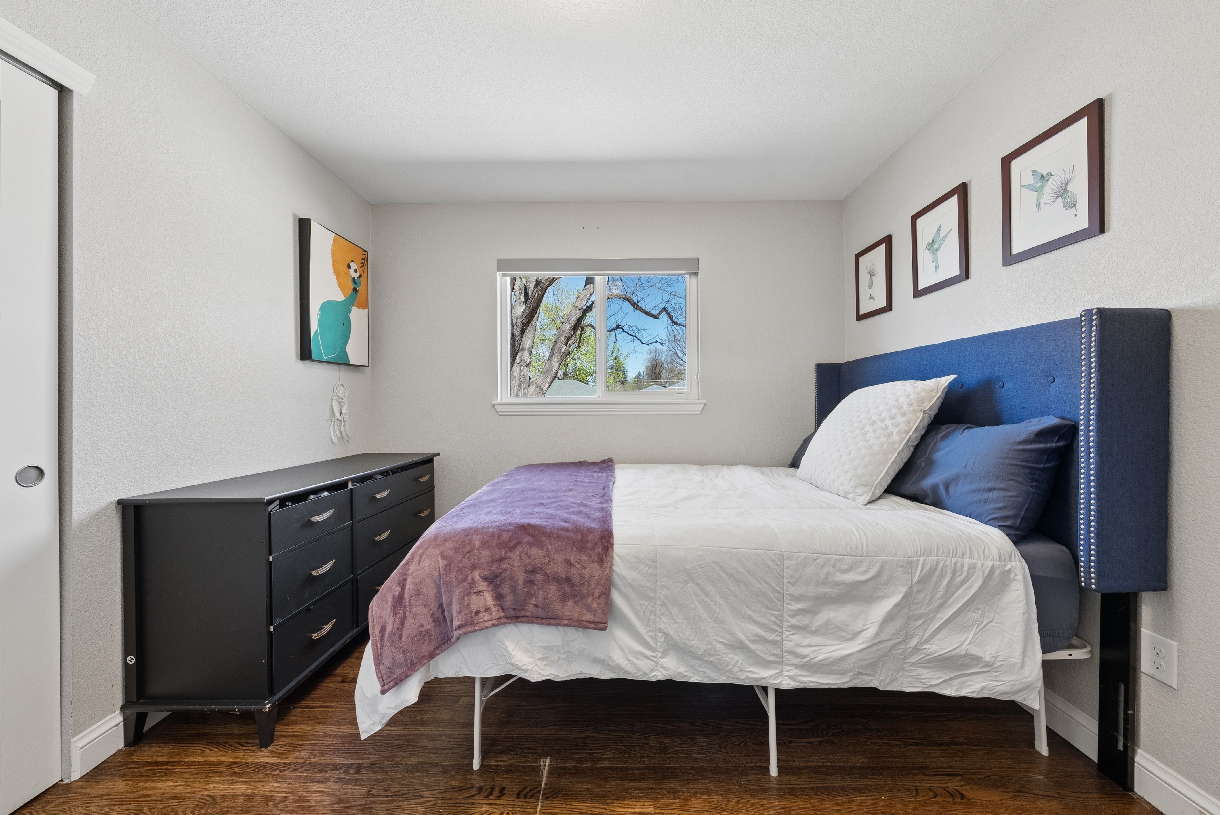 Move-in ready and thoughtfully updated, this 4-bedroom, 3-bath Virginia Village ranch offers a spacious, well-designed layout and sits on a beautiful 8,000+ sq ft lot. The main level offers an open floorplan with generous three bedrooms and two baths including an updated primary suite with ensuite bath. The primary suite comfortably accommodates a king bed and full furniture set, and includes a rare walk-in closet. The fully remodeled kitchen sits at the center of the home, opening seamlessly to the living and dining area, and features quartz countertops, undermount sink, stainless appliances, and crisp white cabinetry. Downstairs, the well-designed basement layout truly sets this home apart. An oversized, secondary primary suite (conforming bedroom) includes an updated ensuite bath with double vanities, offering a versatile and private setup for guests or multigenerational living. The expansive basement family room offers generous space for all to spread out and features a custom built-in entertainment center along with a built-in desk space for an ideal for a home office. A spacious private laundry room, includes a new washer and dryer set and plenty of room for additional storage, completes this thoughtful finished basement. Real hardwood floors, newer windows, updated bathrooms, recessed lighting, upgraded interior doors and fresh paint add to the home’s polished, move in ready feel. Outside, the fully fenced backyard is thoughtfully landscaped with a covered patio, expansive entertaining space, fenced garden area, and mature landscaping. A charming front porch adds to the curb appeal, while the spacious tandem garage provides more functionality than meets the eye. A new roof is planned prior to closing, offering added peace of mind. Enjoy easy highway access, while being able to walk to Ash Grove Park and dinner at a neighborhood favorite Esthers.