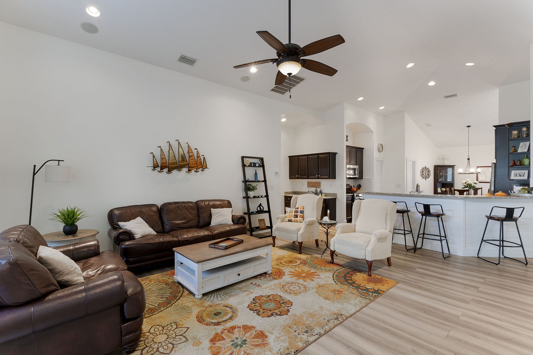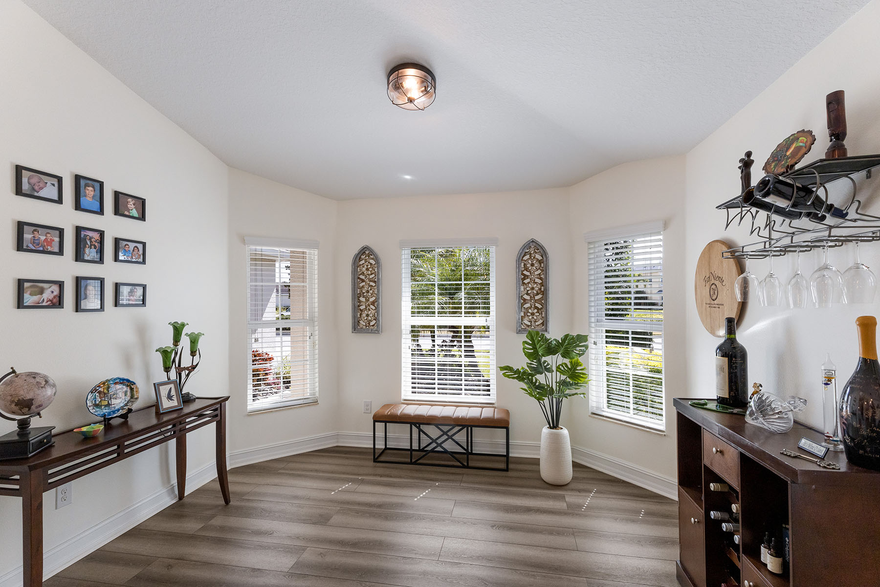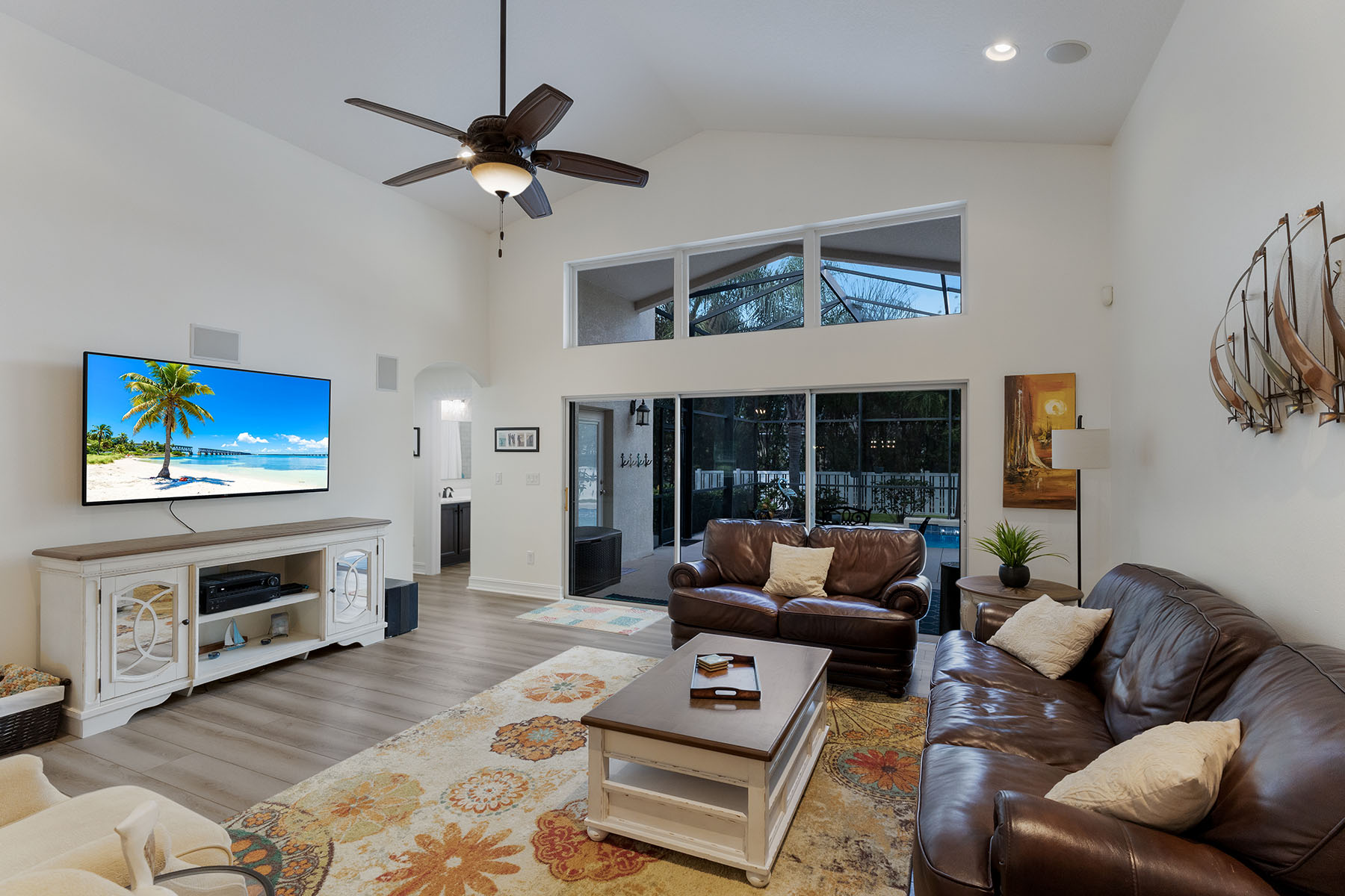Welcome to this beautifully updated five-bedroom, three-bath pool home in the gated Lakewood Ranch community of Central Park. With nearly 3,000 square feet of living space, a three-car garage and a private screened lanai, the home offers a bright, comfortable layout that balances everyday living with easy indoor-outdoor entertaining. Inside, soaring ceilings and abundant natural light create an open, inviting feel throughout the main living areas. Just off the entry is a versatile front bonus room that works well as a sitting room, formal living space or flex room. A separate office with French doors provides a quiet workspace and can also function as the fourth bedroom on the main level. The main floor features four bedrooms including the spacious primary suite, while upstairs offers a private loft, bedroom and full bath, ideal for guests, hobbies or additional living space. Thoughtful updates throughout the home include luxury vinyl flooring in the main living areas, new plush carpeting in the bedrooms, fresh interior paint, updated lighting, a modernized interior layout, kitchen backsplash updates, added laundry room cabinetry and a recently replaced pool pump. The home is also equipped with a tankless water heater, hurricane shutters and upgraded second-floor hurricane-impact windows for added peace of mind. The beautifully renovated primary bath offers a peaceful coastal-inspired retreat with a freestanding soaking tub, tiled walk-in shower and dual vanities with updated fixtures. Go outside to a large screened pool and lanai with multiple seating areas, ideal for relaxing or entertaining, while enjoying privacy of the spacious backyard. Central Park residents enjoy a gated setting with low HOA fees and amenities including parks, playgrounds, dog parks, tennis courts and walking trails. The home is also conveniently near shopping, dining and a variety of highly rated educational options in the Lakewood Ranch area. Homes with this combination of space, updates and indoor-outdoor living in Central Park rarely come available.