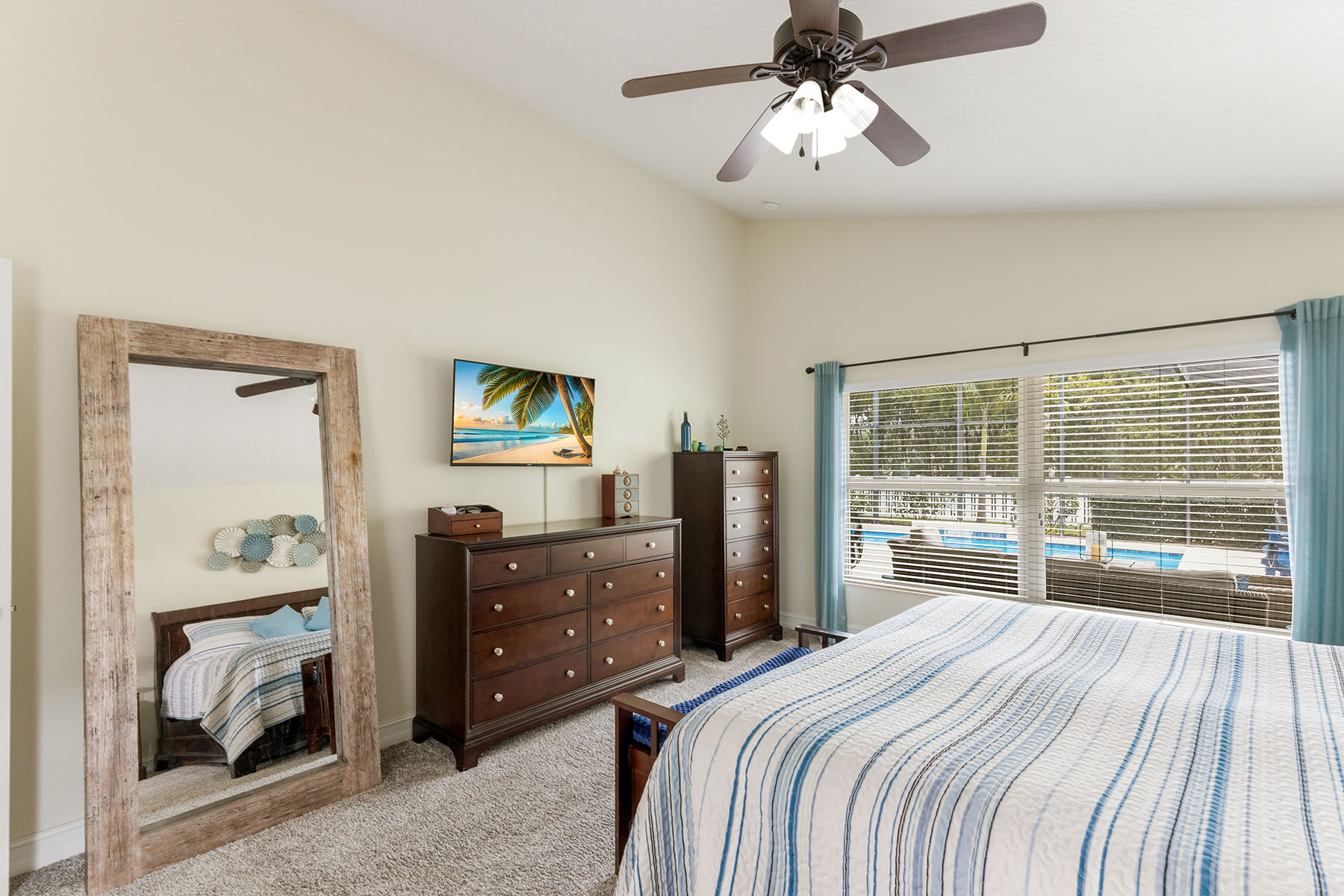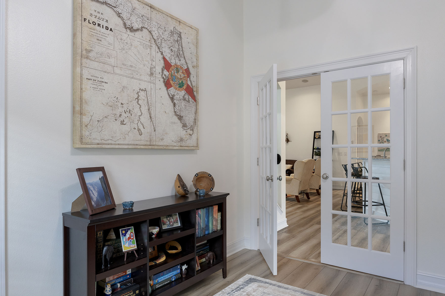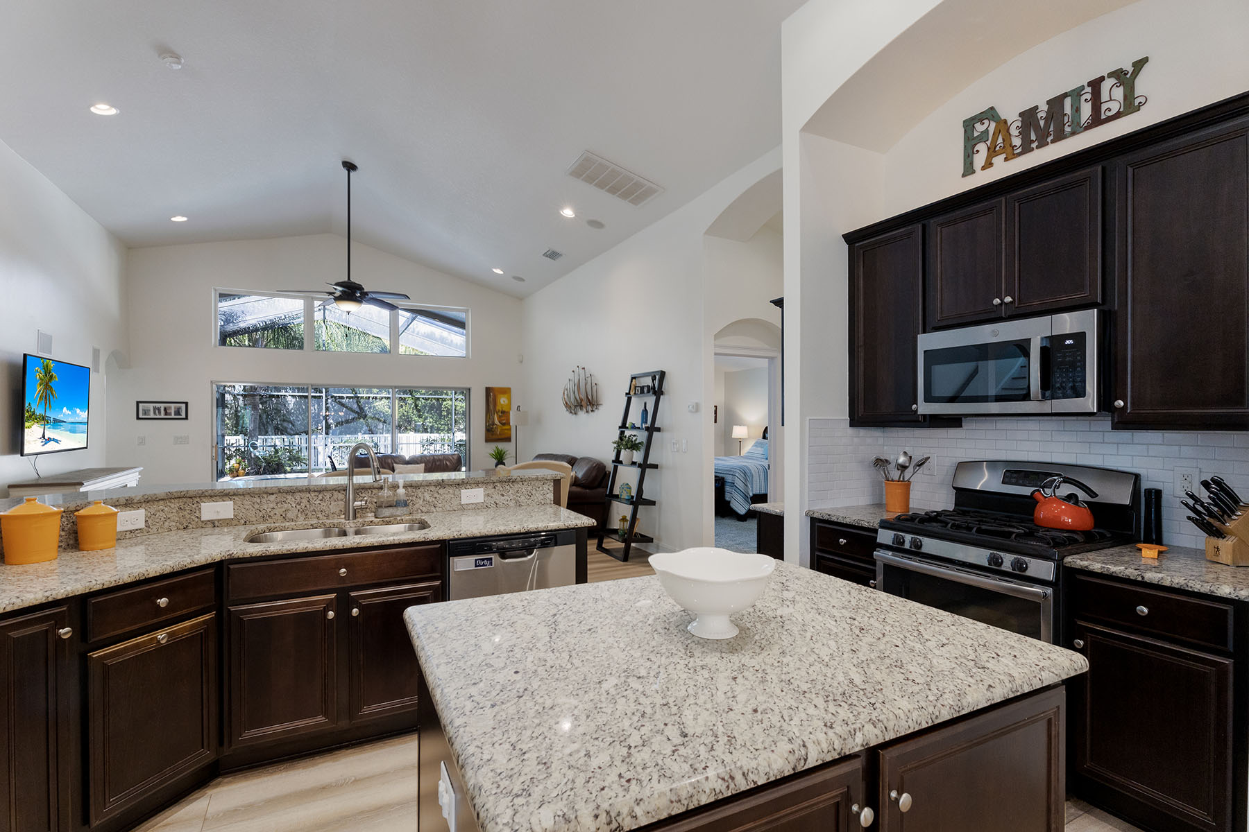 Welcome to this beautifully updated five-bedroom, three-bath pool home in the gated Lakewood Ranch community of Central Park. With nearly 3,000 square feet of living space, a three-car garage and a private screened lanai, the home offers a bright, comfortable layout that balances everyday living with easy indoor-outdoor entertaining. Inside, soaring ceilings and abundant natural light create an open, inviting feel throughout the main living areas. Just off the entry is a versatile front bonus room that works well as a sitting room, formal living space or flex room. A separate office with French doors provides a quiet workspace and can also function as the fourth bedroom on the main level. The main floor features four bedrooms including the spacious primary suite, while upstairs offers a private loft, bedroom and full bath, ideal for guests, hobbies or additional living space. Thoughtful updates throughout the home include luxury vinyl flooring in the main living areas, new plush carpeting in the bedrooms, fresh interior paint, updated lighting, a modernized interior layout, kitchen backsplash updates, added laundry room cabinetry and a recently replaced pool pump. The home is also equipped with a tankless water heater, hurricane shutters and upgraded second-floor hurricane-impact windows for added peace of mind. The beautifully renovated primary bath offers a peaceful coastal-inspired retreat with a freestanding soaking tub, tiled walk-in shower and dual vanities with updated fixtures. Go outside to a large screened pool and lanai with multiple seating areas, ideal for relaxing or entertaining, while enjoying privacy of the spacious backyard. Central Park residents enjoy a gated setting with low HOA fees and amenities including parks, playgrounds, dog parks, tennis courts and walking trails. The home is also conveniently near shopping, dining and a variety of highly rated educational options in the Lakewood Ranch area. Homes with this combination of space, updates and indoor-outdoor living in Central Park rarely come available.