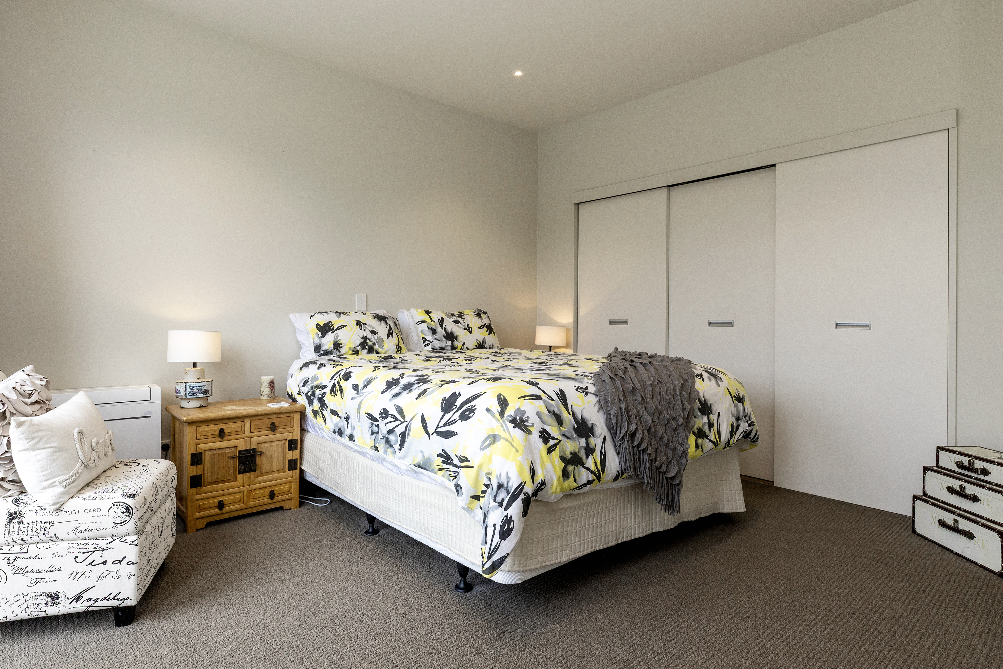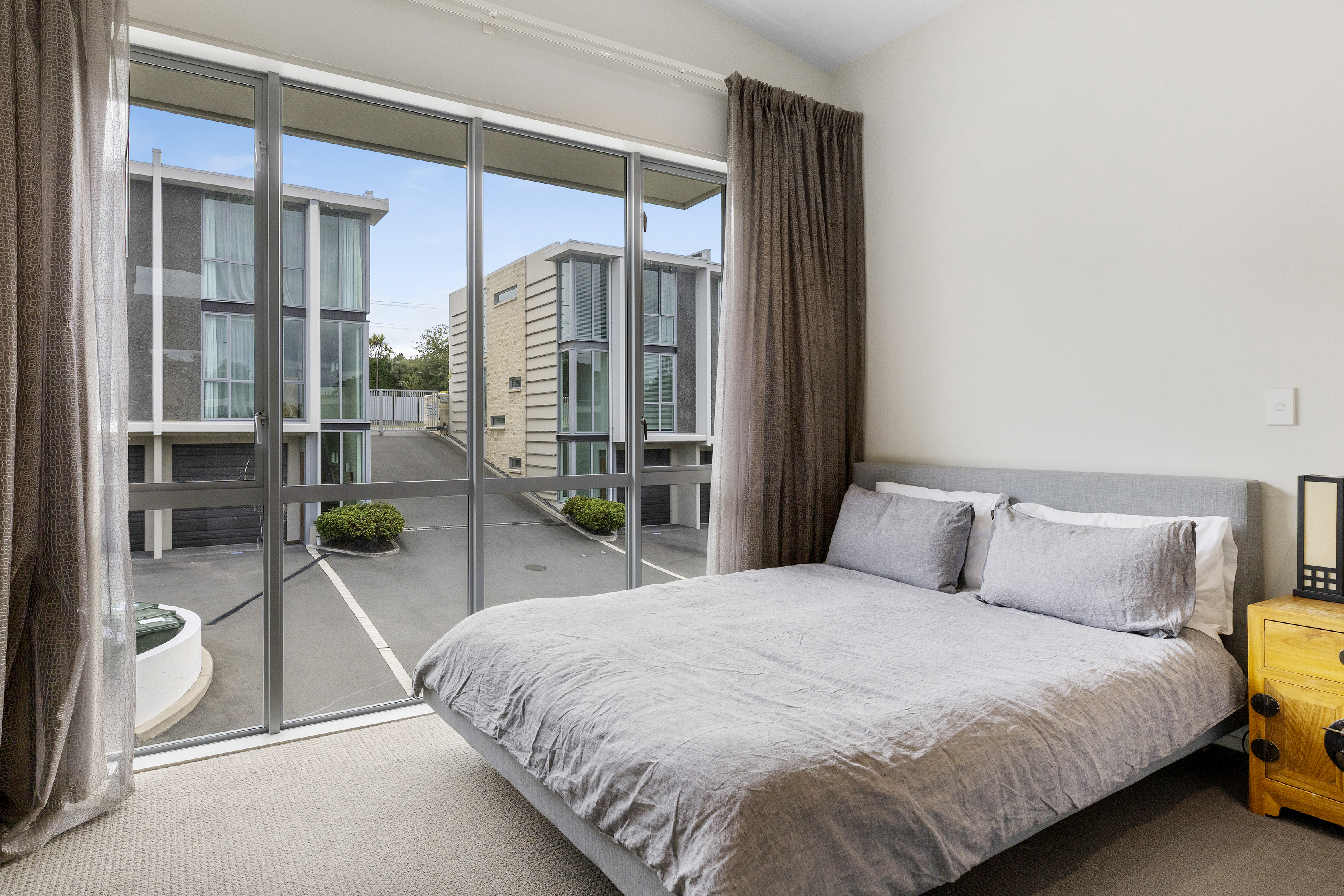 The lower level provides a private retreat, with another bedroom and seamless connection to a sheltered courtyard. This outdoor space creates a quiet extension of the home, making it perfect for relaxed mornings or evening unwinding.