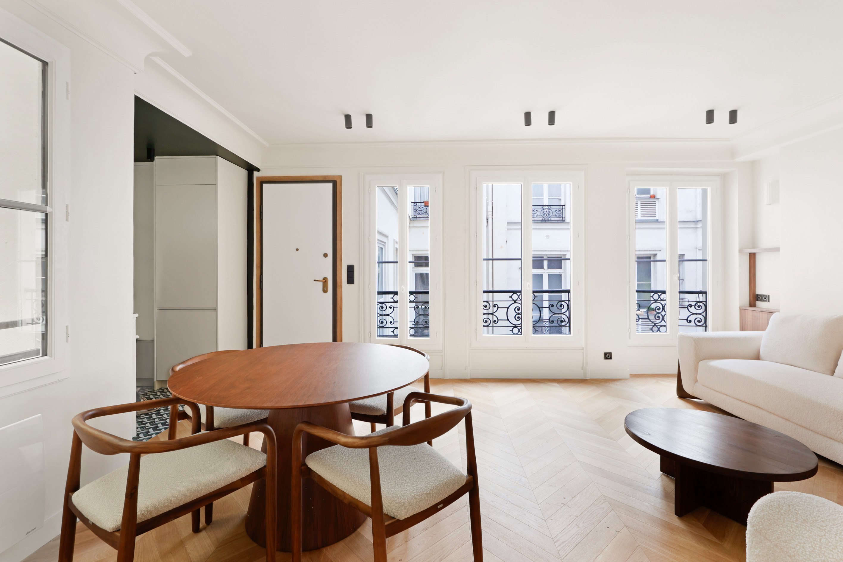 Saint Germain l'Auxerrois - 2 suites - renovated - Paris 1st arrondissement - Ideally located on Rue Saint-Germain-l'Auxerrois, in the heart of historic Paris, this bright apartment is on the 4th floor with elevator of a stone building. Completely renovated by an architect, it offers a living space of approximately 30 m², as well as two suites, each with its own shower room. The complete renovation highlights a perfectly optimized layout, without any loss of space, combining elegance and functionality. Located on a quiet street, the property enjoys a privileged location, close to the banks of the Seine, allowing easy access to Odéon, Saint-Germain-des-Prés, and the Marais. Live-in caretaker.