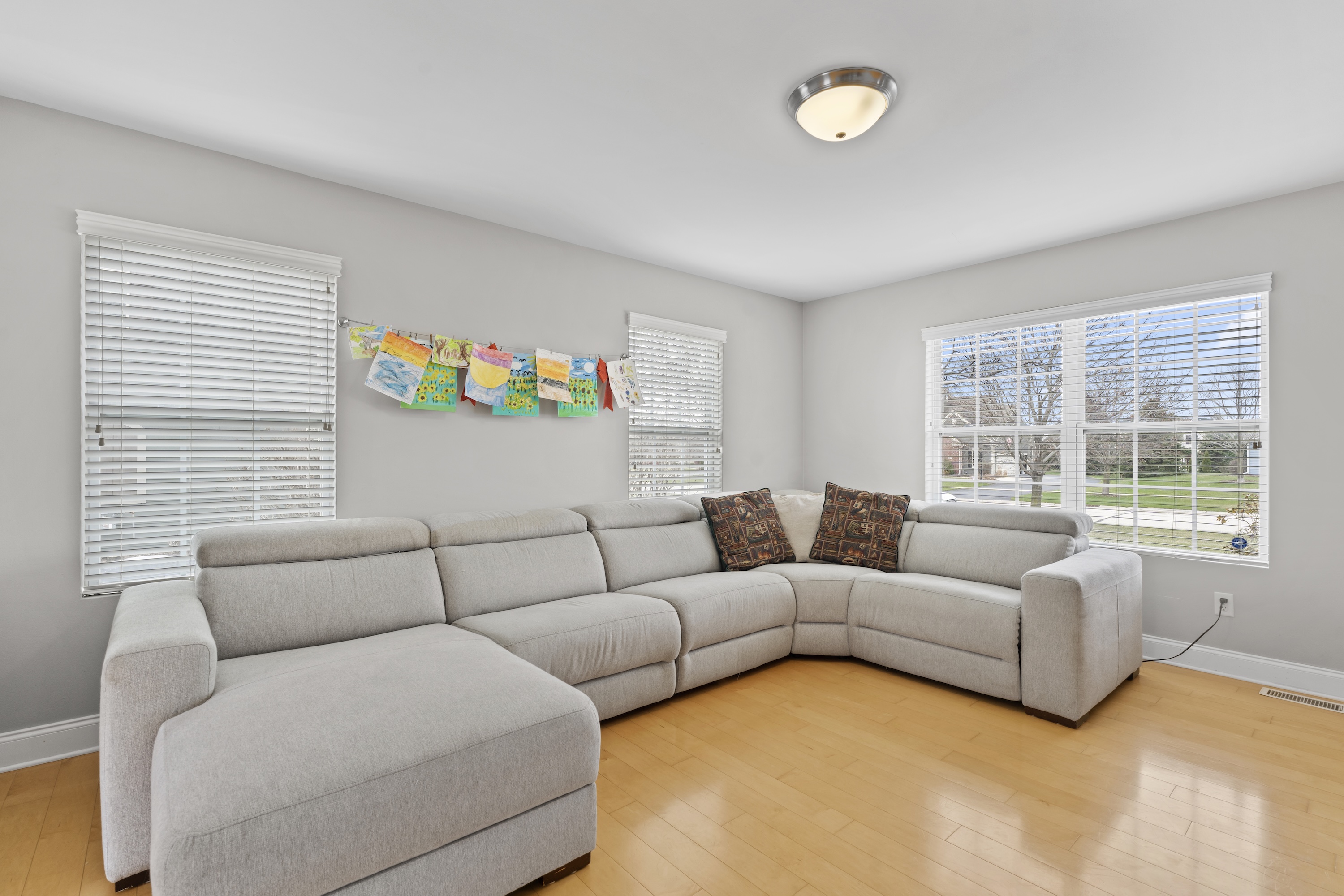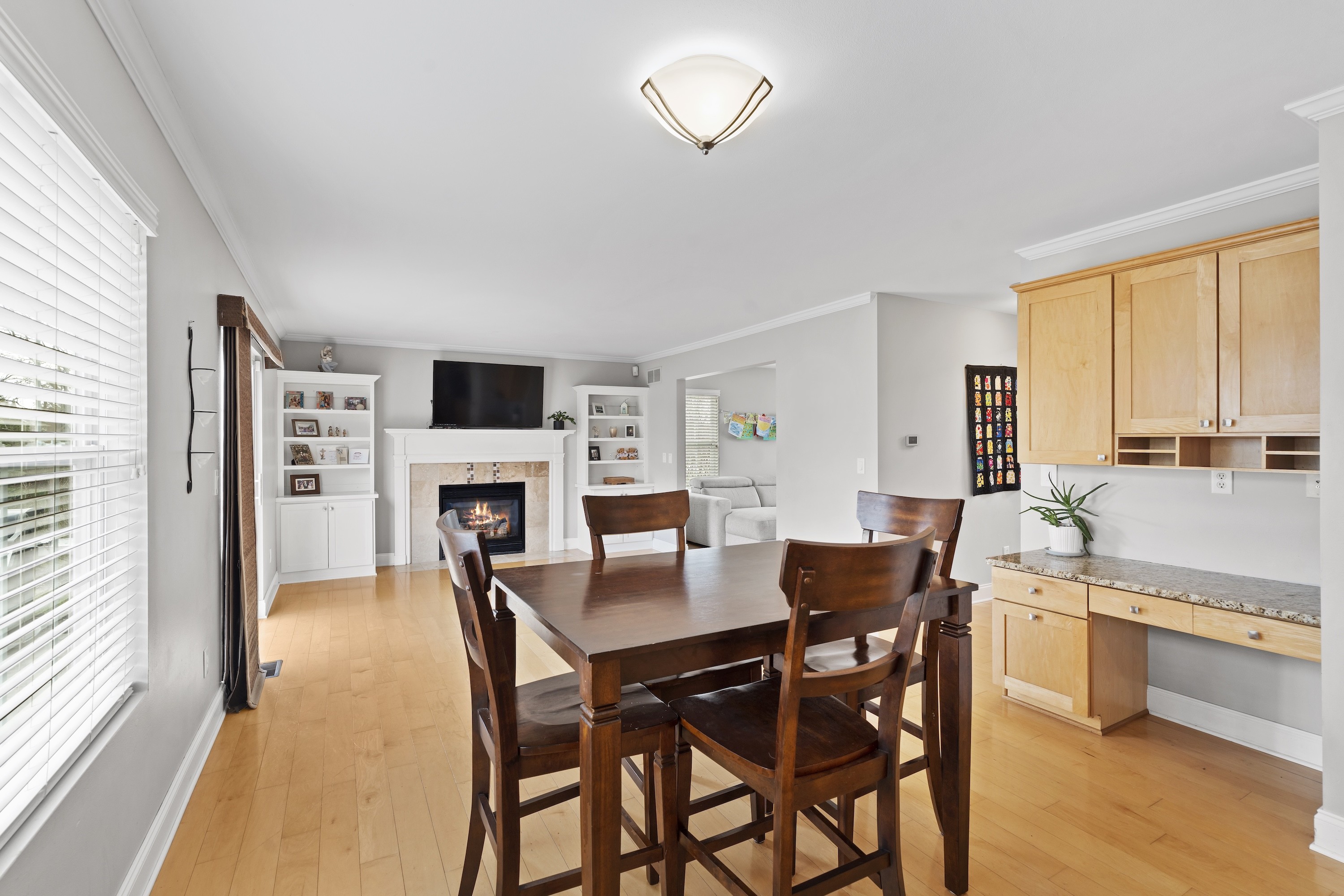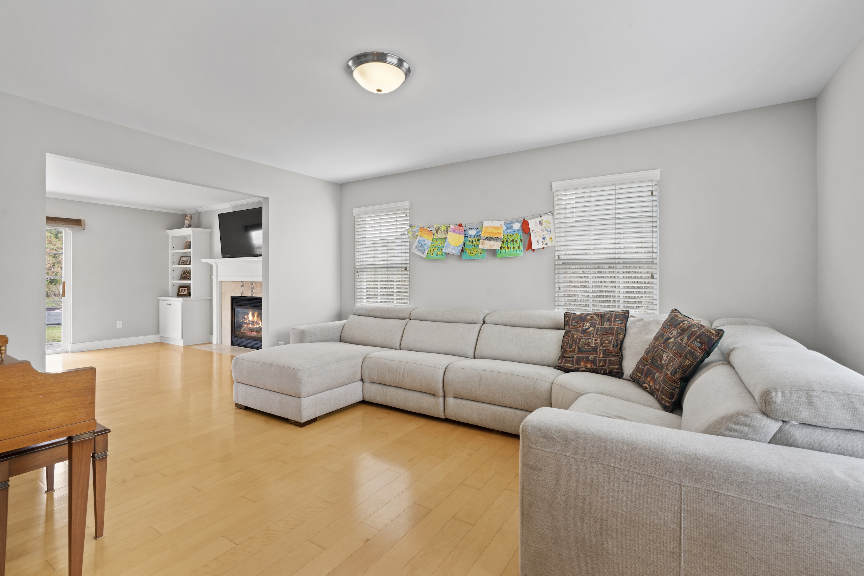 Beautifully maintained home in desirable Pabst Farms! This 4-bedroom, 3.5-bath home offers an exceptional floor plan designed for both grand entertaining and intimate gatherings. The main floor includes formal dining and living rooms, and a casual eat-in kitchen that opens to a family room with gas fireplace. The spacious kitchen offers a center island, a pantry, and abundant storage. The laundry room doubles as the perfect drop zone with built-in lockers. Upstairs features four generous bedrooms and two full baths, plus a rare bonus room elevating the floor plan above the rest. The lower-level is finished adding a rec room and a full bath, ideal for a playroom, office, or for guests. Situated on a premier corner lot, enjoy a large side yard and a quiet backyard with a beautiful stamped concrete patio ready for summer entertaining! Newer furnace (2025) and roof (2023).