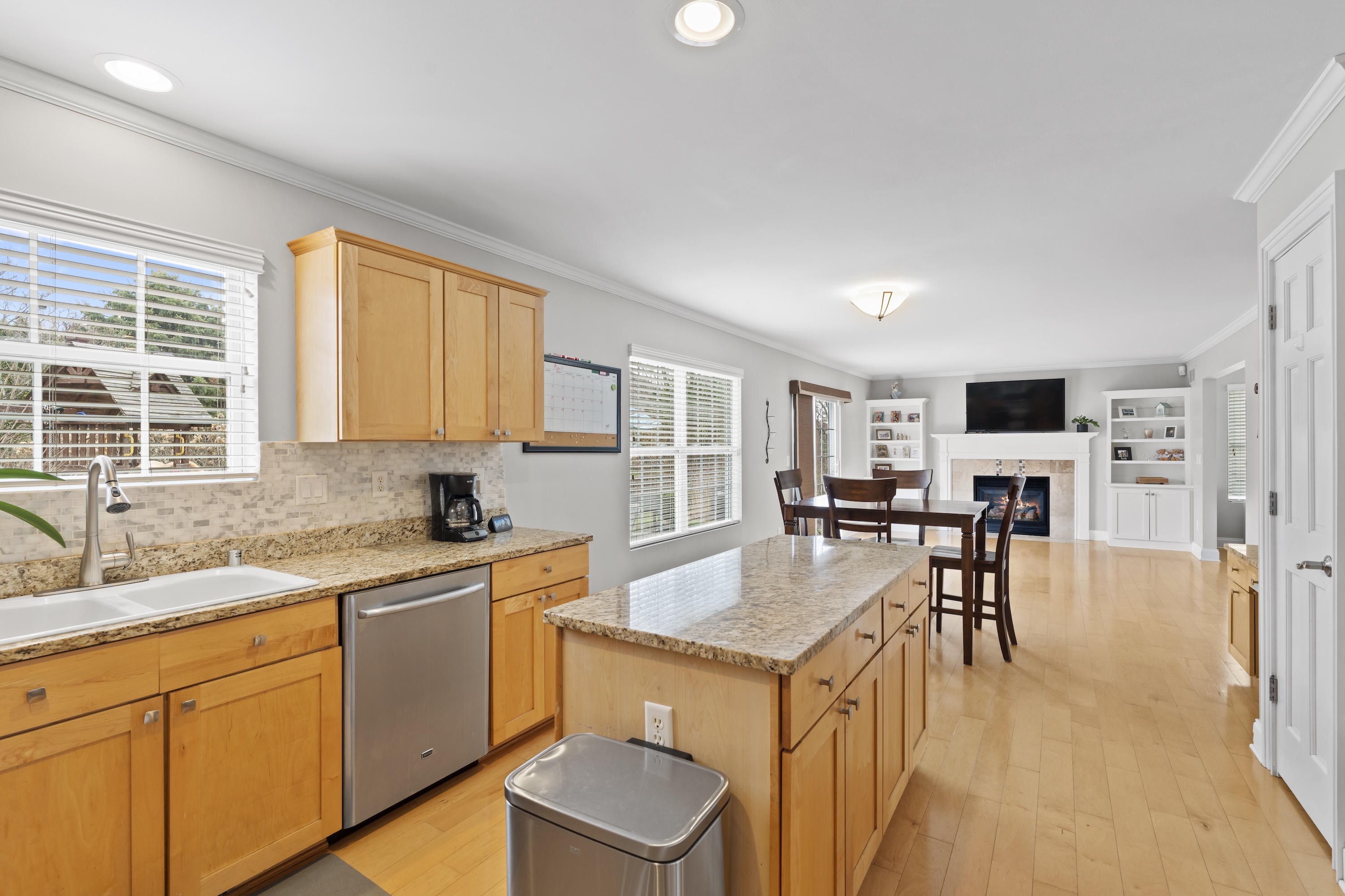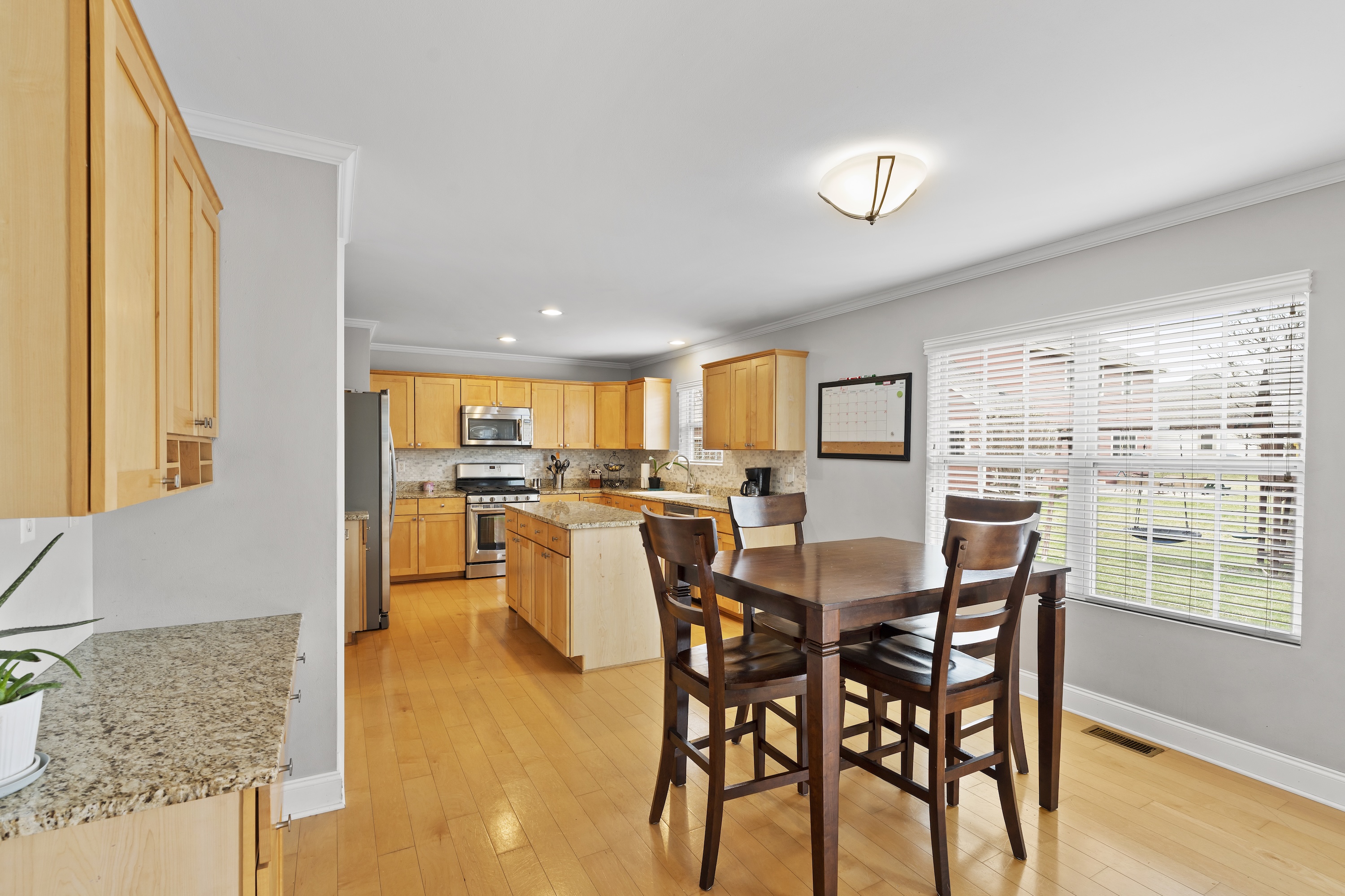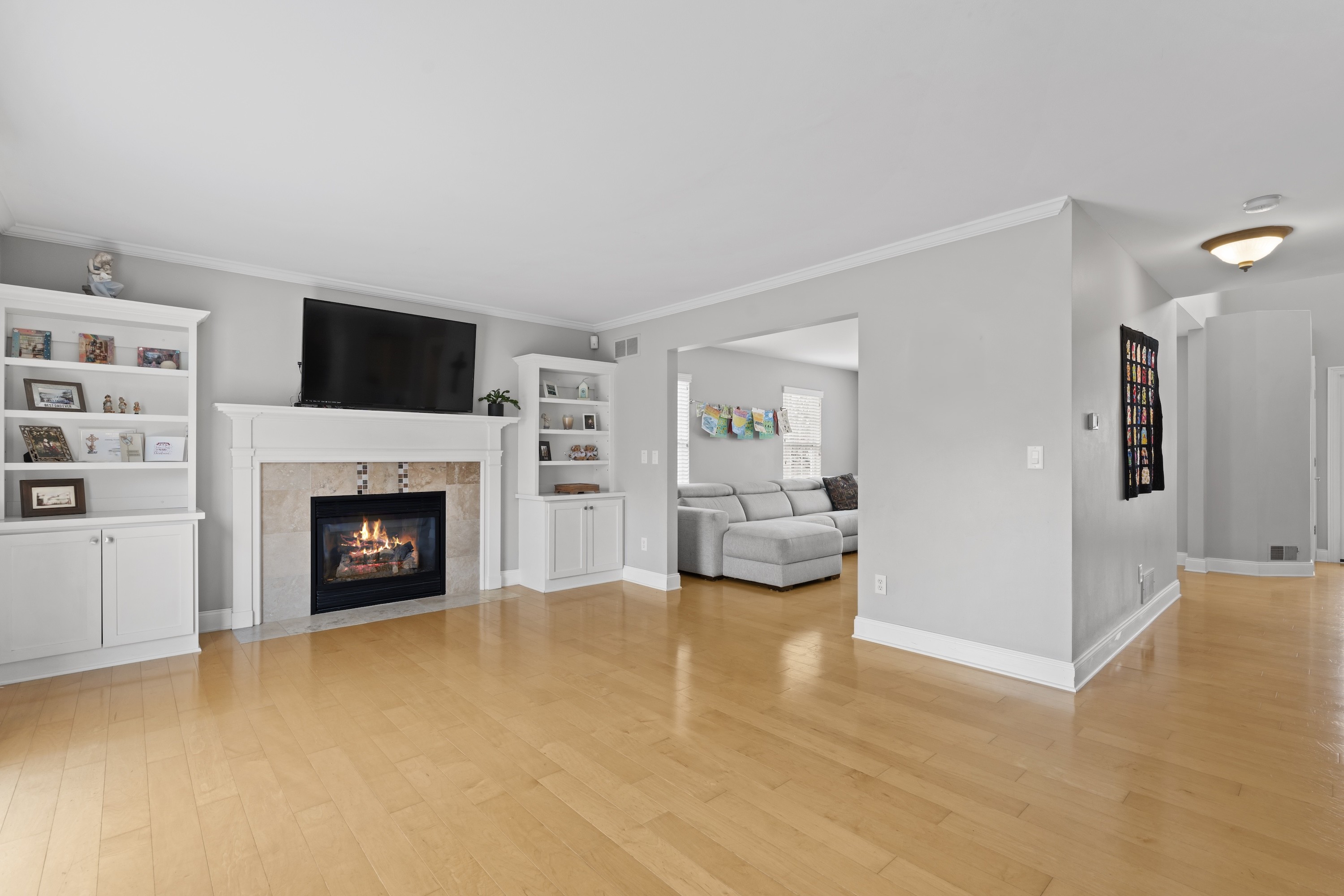 Beautifully maintained home in desirable Pabst Farms! This 4-bedroom, 3.5-bath home offers an exceptional floor plan designed for both grand entertaining and intimate gatherings. The main floor includes formal dining and living rooms, and a casual eat-in kitchen that opens to a family room with gas fireplace. The spacious kitchen offers a center island, a pantry, and abundant storage. The laundry room doubles as the perfect drop zone with built-in lockers. Upstairs features four generous bedrooms and two full baths, plus a rare bonus room elevating the floor plan above the rest. The lower-level is finished adding a rec room and a full bath, ideal for a playroom, office, or for guests. Situated on a premier corner lot, enjoy a large side yard and a quiet backyard with a beautiful stamped concrete patio ready for summer entertaining! Newer furnace (2025) and roof (2023).