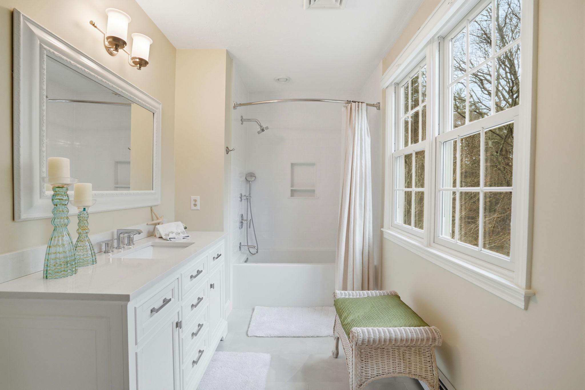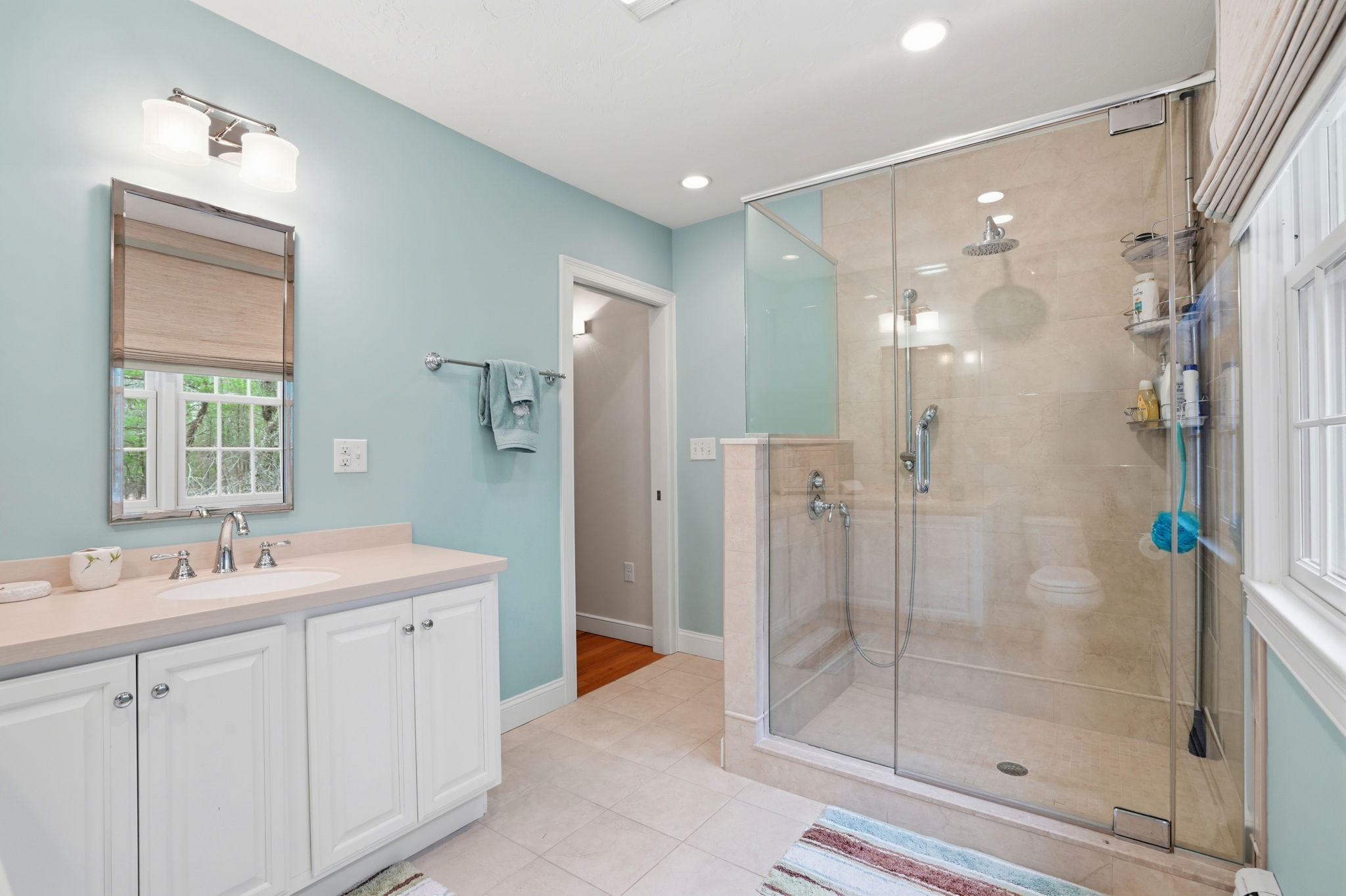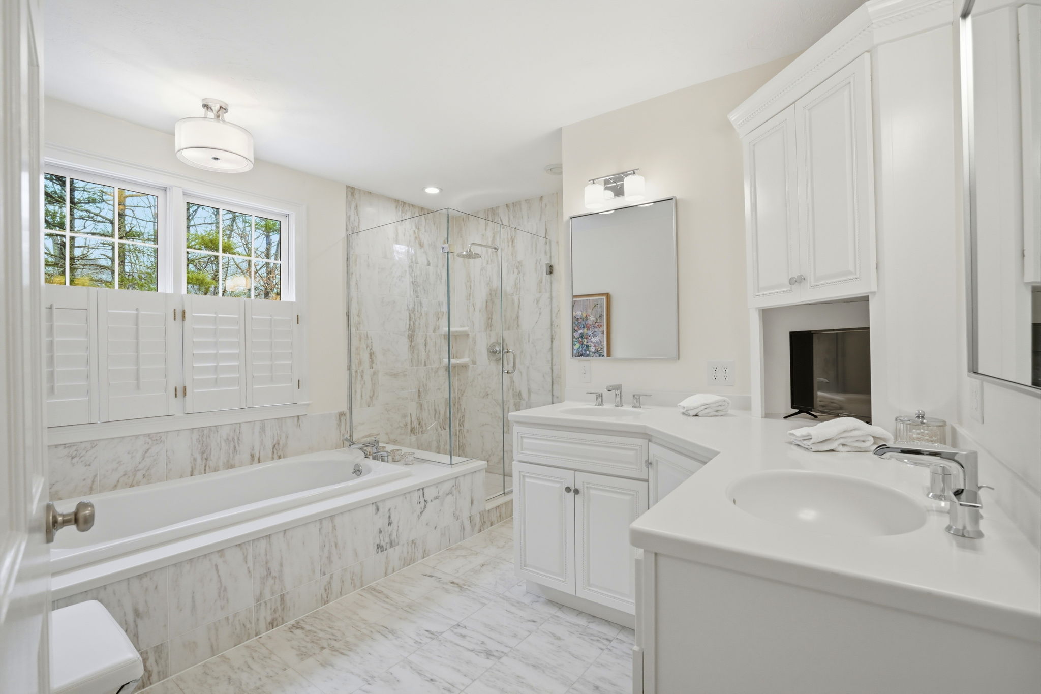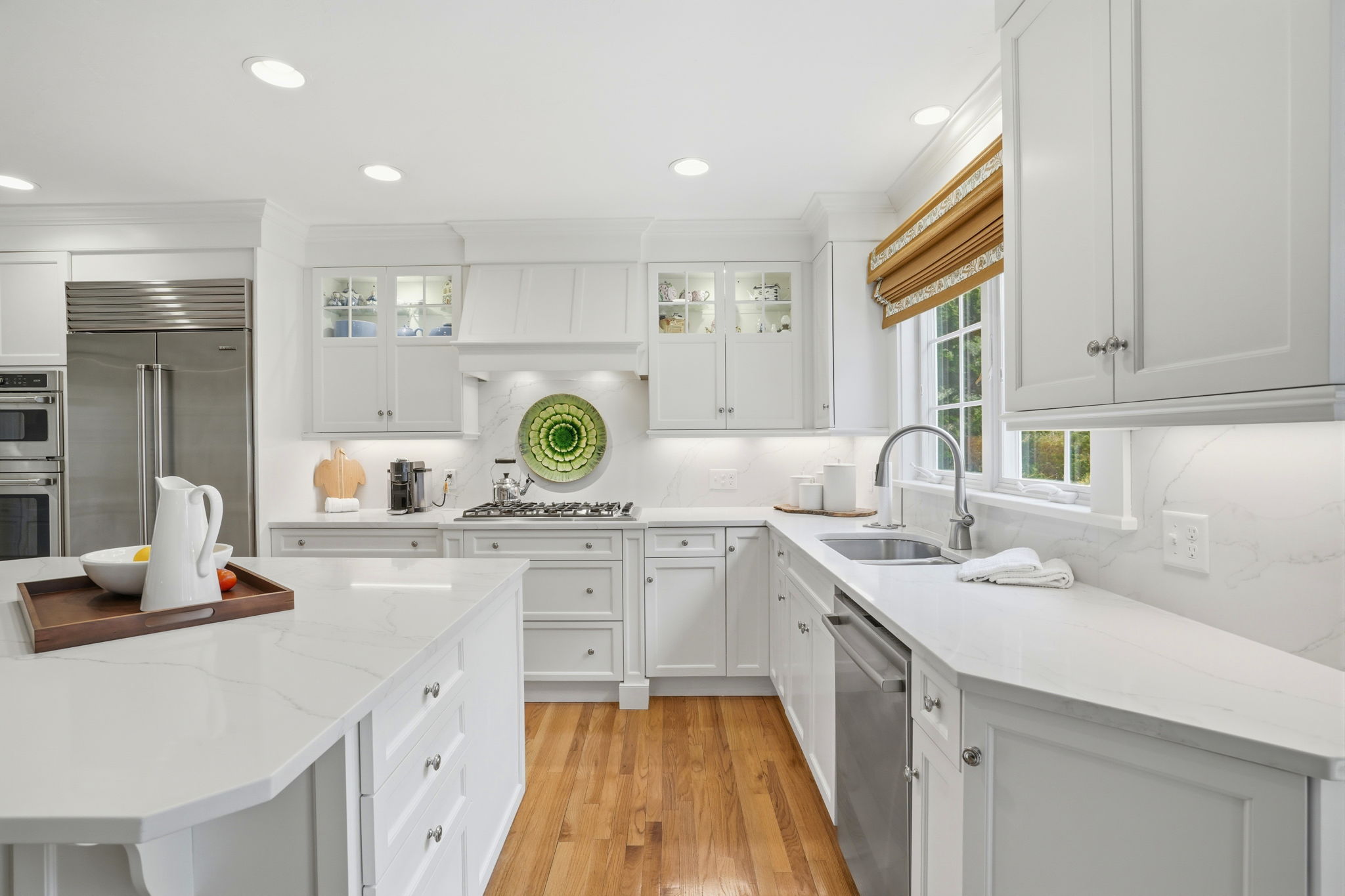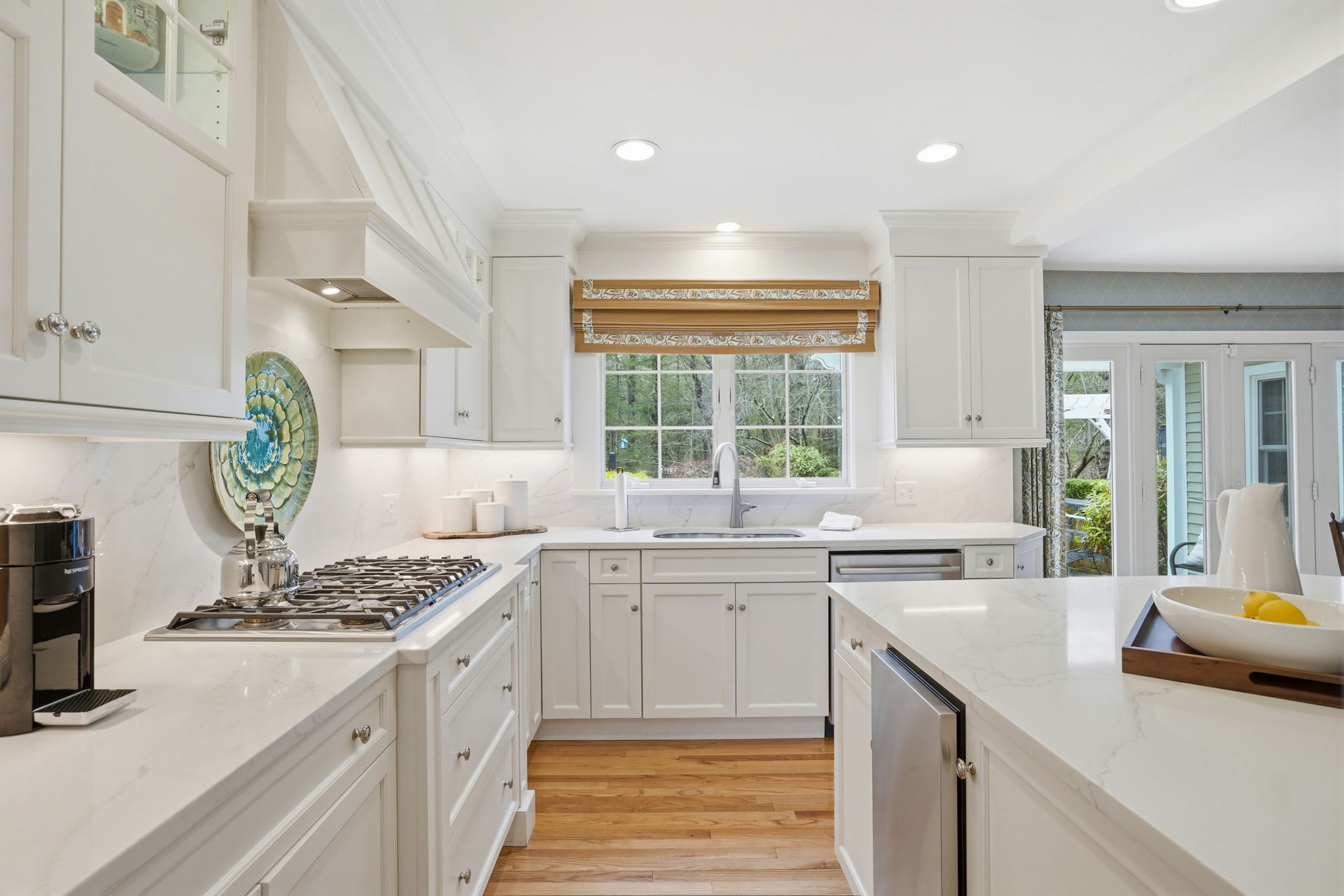 A private outdoor oasis sets the tone for this exceptional home, where custom stonework, a pergola, fire pit, and outdoor kitchen create a stunning setting for effortless entertaining. Inside, a dramatic sunken living room with soaring two-story vaulted ceilings serves as a striking architectural centerpiece. The kitchen by Timeless Design features newly installed quartzite Mont Blanc countertops and high-end appliances, thoughtfully designed for both everyday living and hosting. Two primary suites—one on the first floor and one on the second—offer rare flexibility for a variety of living arrangements. The finished walkout lower level includes a full bath, gym, and versatile living space ideal for a game room, guest retreat, or post-beach hangout. Sidewalk access nearby connects to Millbrook Village, schools, and local amenities.