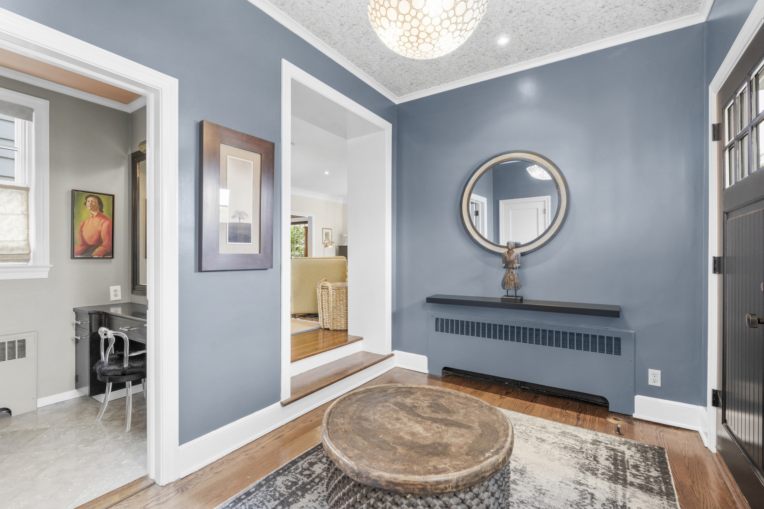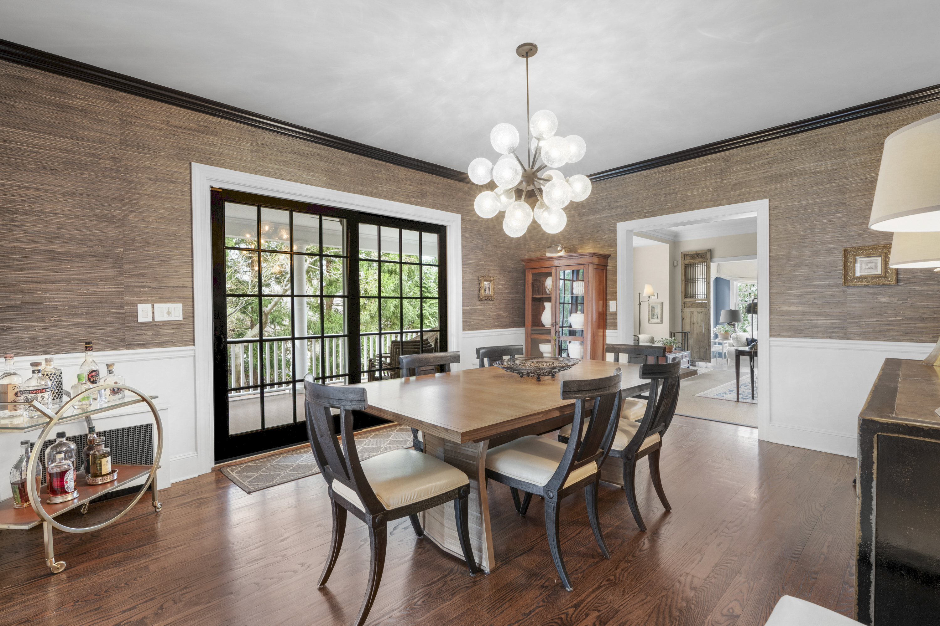 gorgeous dining room, creating a sophisticated environment for hosting. Tucked nearby