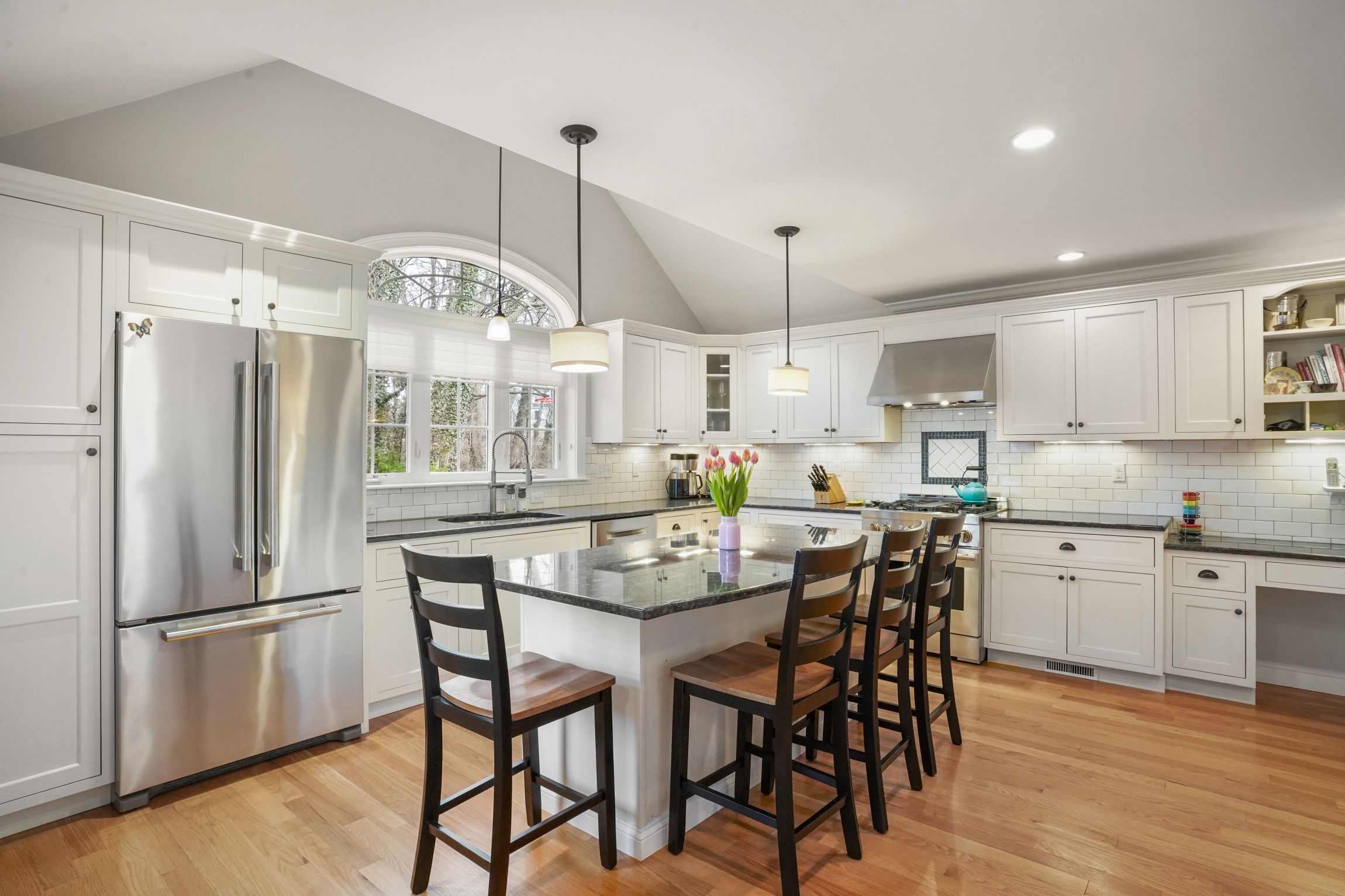 Rare, fully renovated Colonial in ideal Marblehead location! Front porch entry to your spacious living level with eat-in Chef's kitchen - center island, upgraded Jenn-Air and Bosch SS appliances, ample storage & granite counter tops, French doors to rear deck, patio, flat lawn & outdoor shower, perfect for entertaining; adjacent mudroom nook and garage access. Formal dining and over-sized family/living room w gas fireplace, den/office and powder room complete the living level. Second floor features an enviable primary suite with cathedral ceiling, gas fireplace, generous walk-in closet and Carrara marble bath w walk-in shower, double vanity & soaking tub. Three additional, equal sized bedrooms flanked by an additional bath w double vanity, tub/shower & linen closet. Side by side washer/dryer. Lower level with media/play room and gym nook. Hardwood floors throughout, custom plantation blinds and window treatments, A/C and attached 2 car garage. Mins to Brown Elementary!